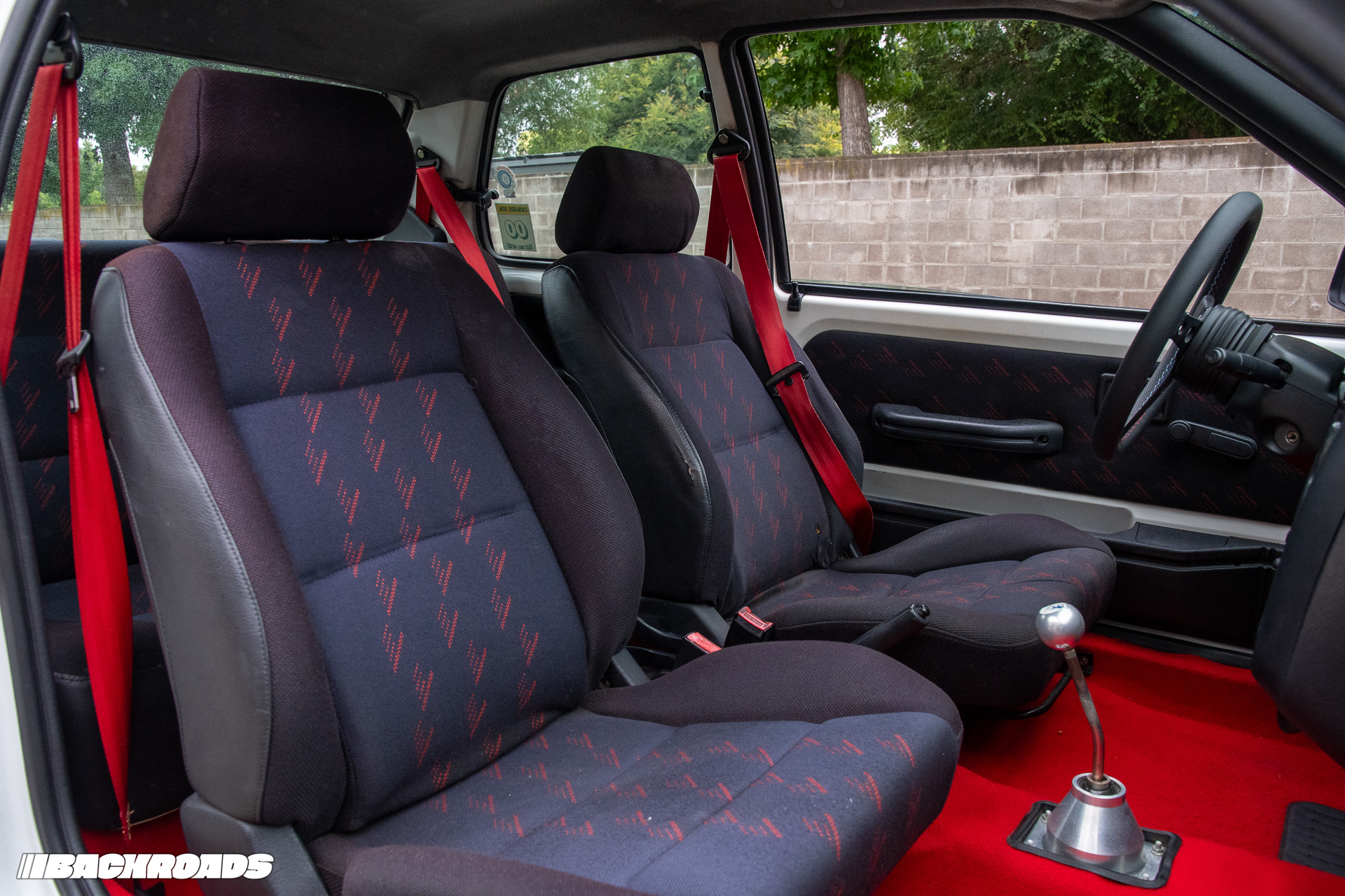 Step inside and you’re greeted by flamboyantly red carpet, honest black plastic and a floor-mounted shifter that sits perfectly within reach. No heated seats, no touchscreens – just you and the machinery. That unassisted steering telegraphs every pebble through the Rallye’s skinny front tires.