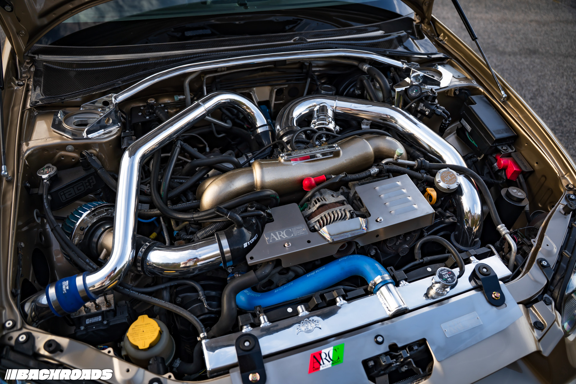 Of course, power is nothing without control, and Kevin also has that aspect covered with Endless ZEAL Function X Hard Type inverted coilovers, Cusco sway bars, and Whiteline rear arms.