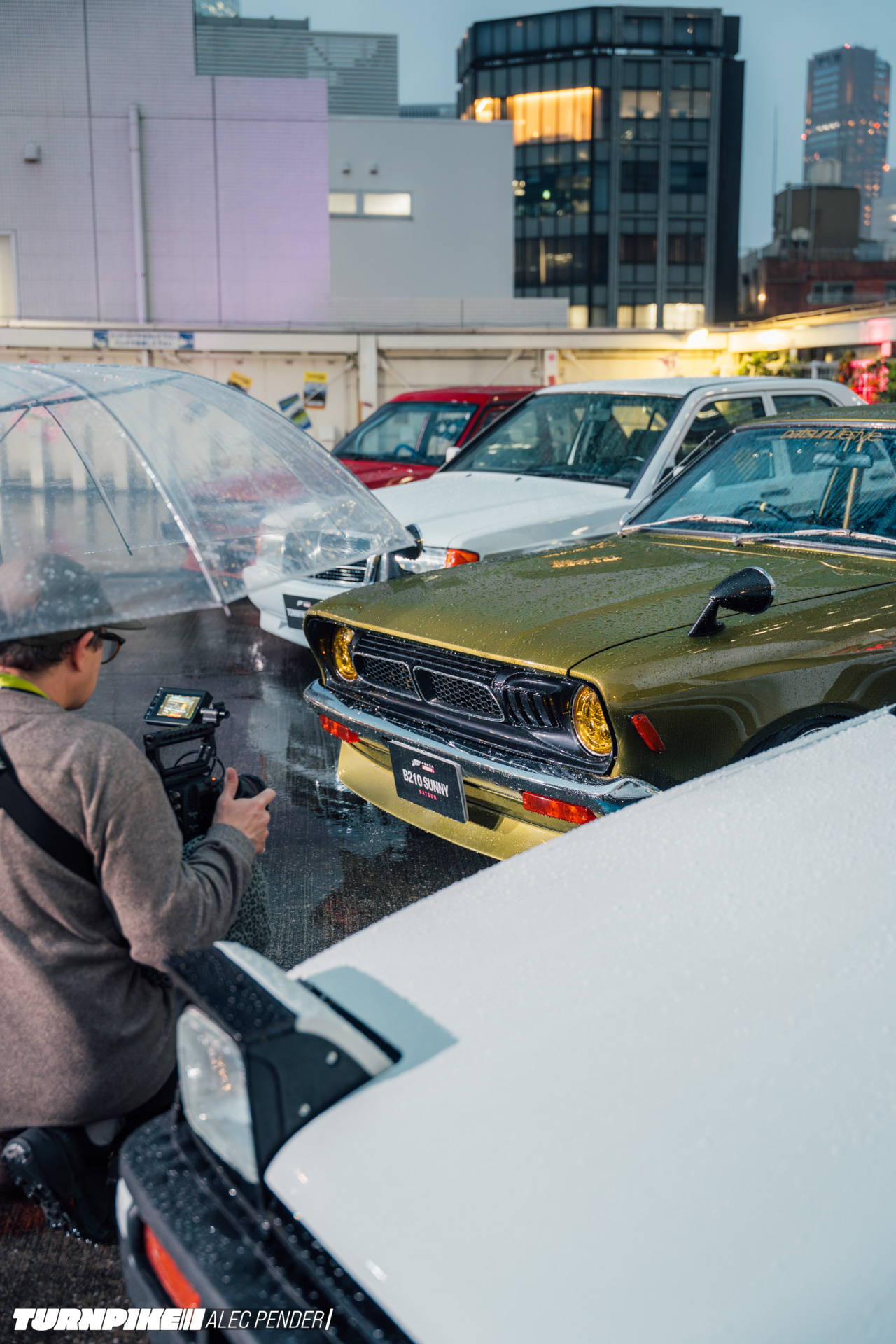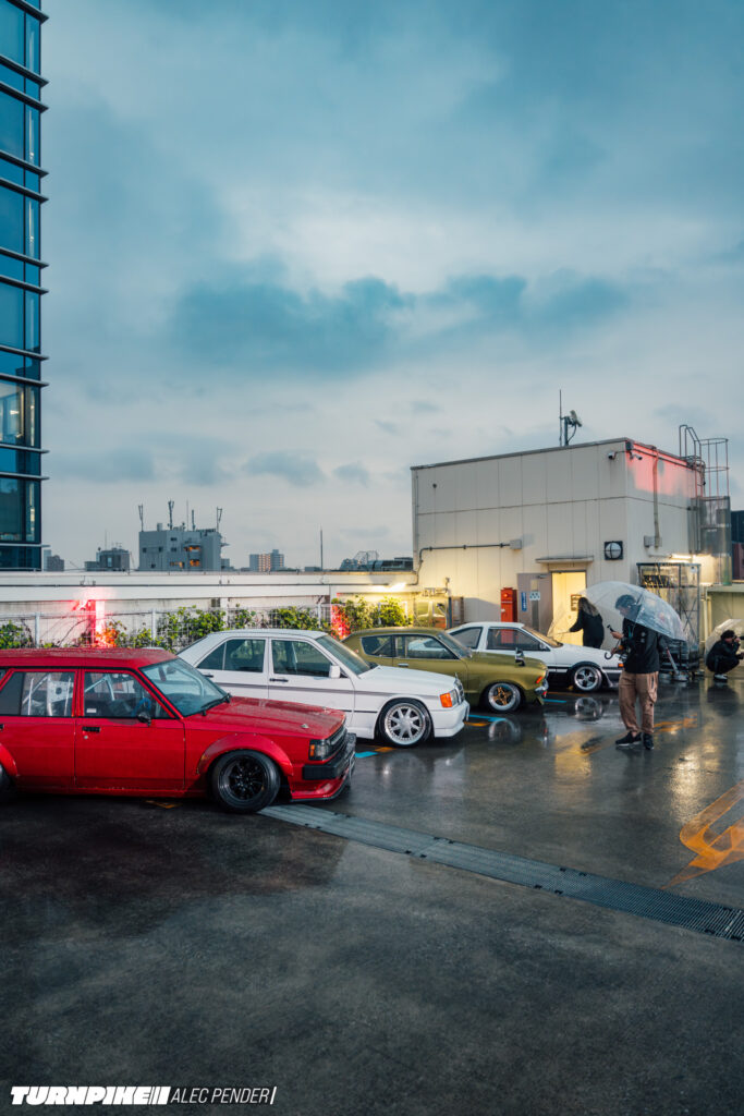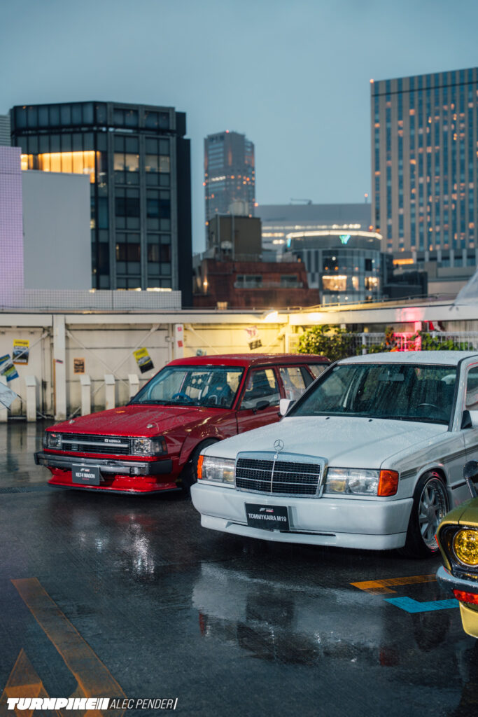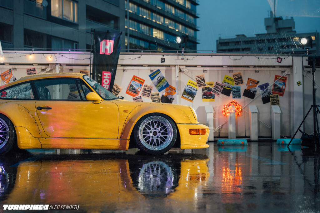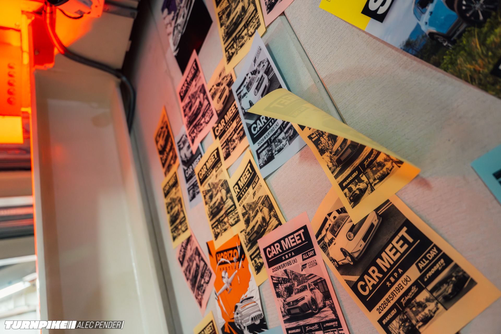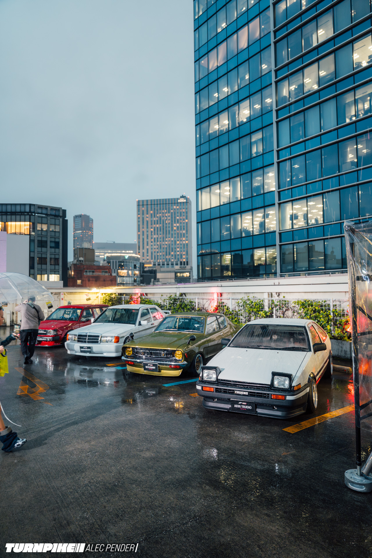 The party was also a great way for the Forza team to introduce the game to key people in both the car and gaming worlds. Alec and I added to that by stepping up to select nine cars to represent Japanese car culture, alongside my RWB Porsche 964. The lineup ranged from wide-body RX-7s and an over-fendered Honda NSX on air, to classics like an AE86 Trueno, a drift-spec Corolla wagon, and a Datsun 210 previously featured on Turnpike. Tying it all together was a rare Tommykaira M19, a complete car that the Kyoto-based builder created in the late ‘80s before it got busy building its Nissan based line up.