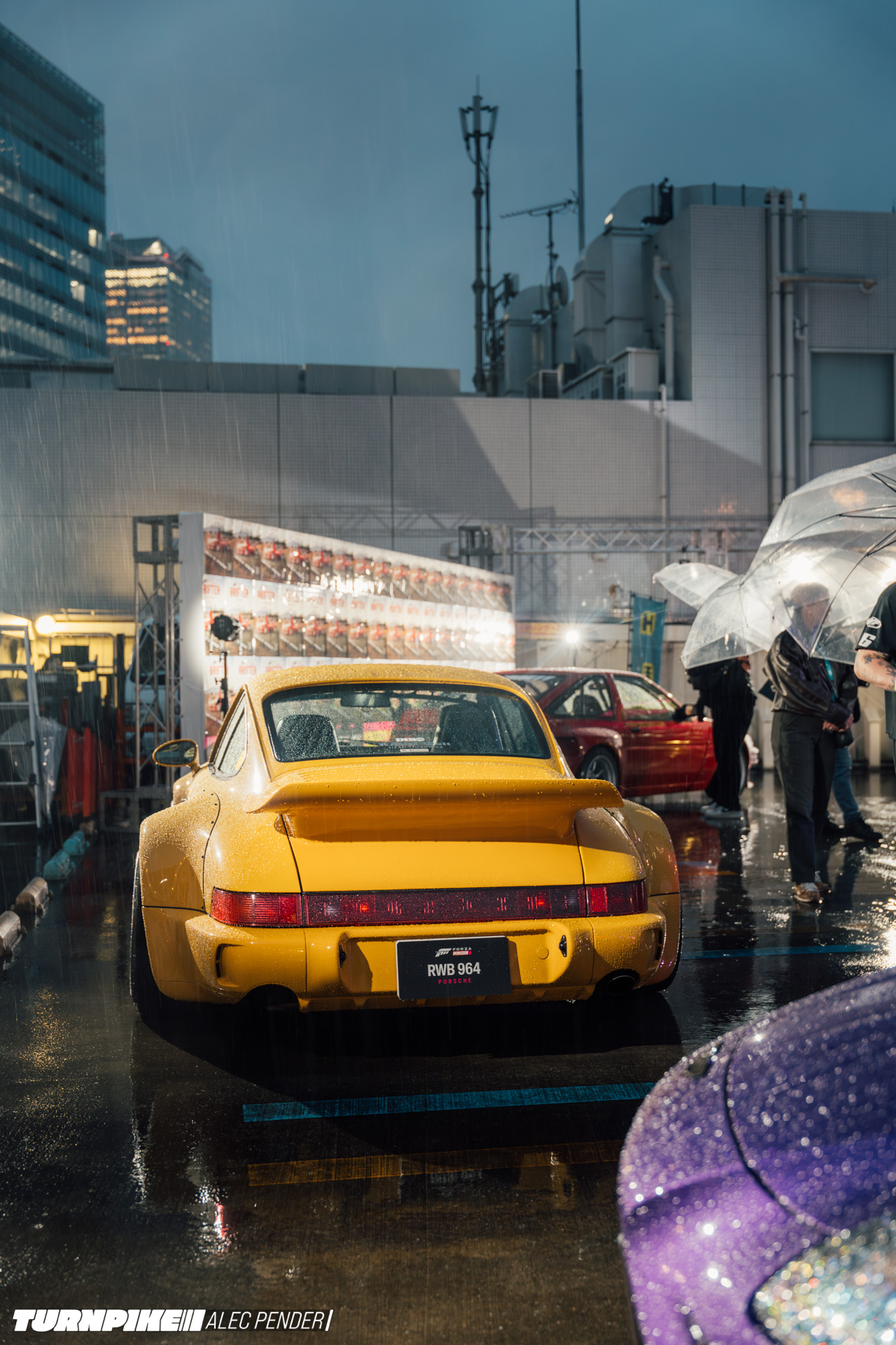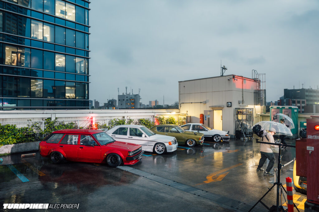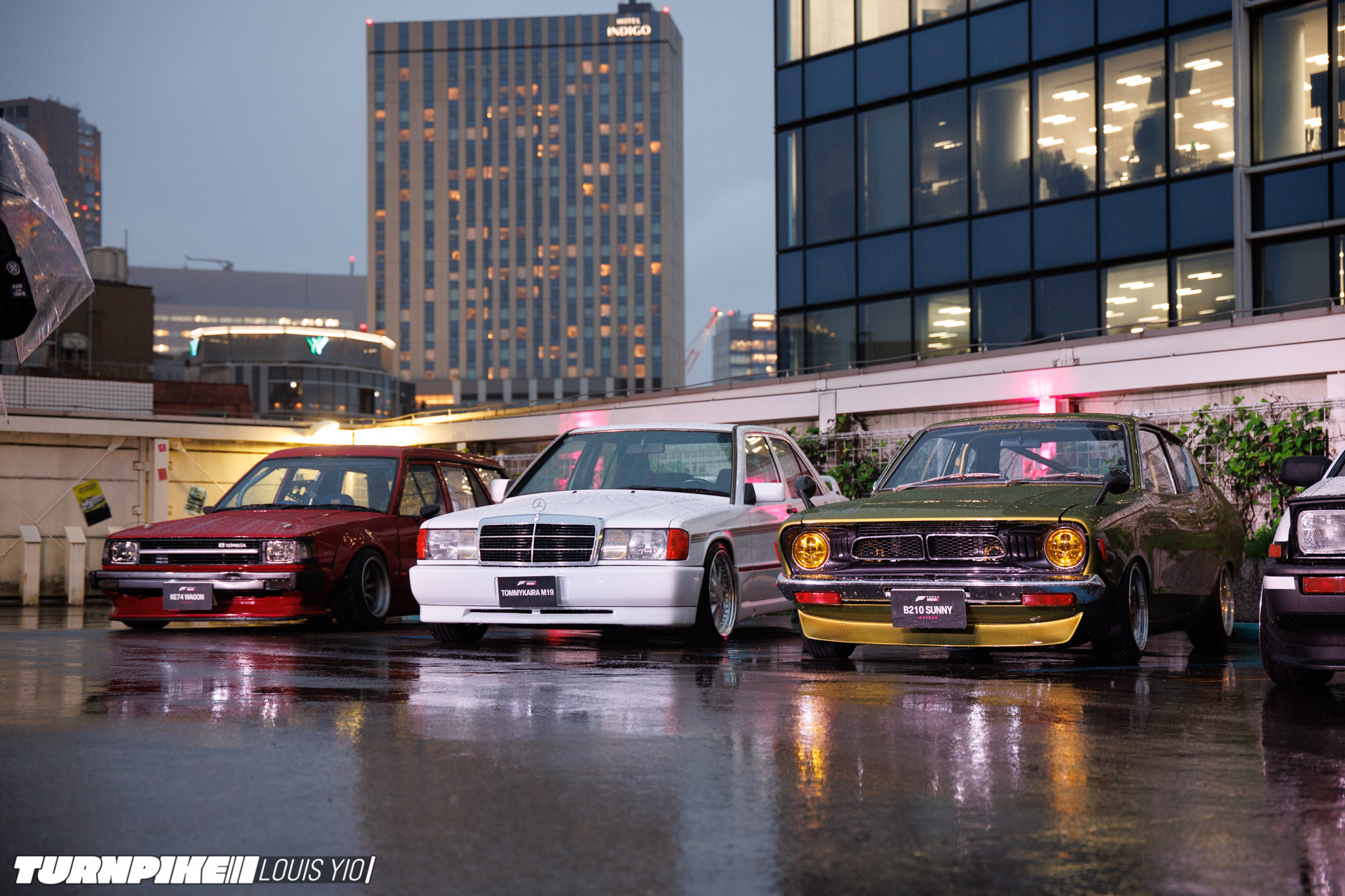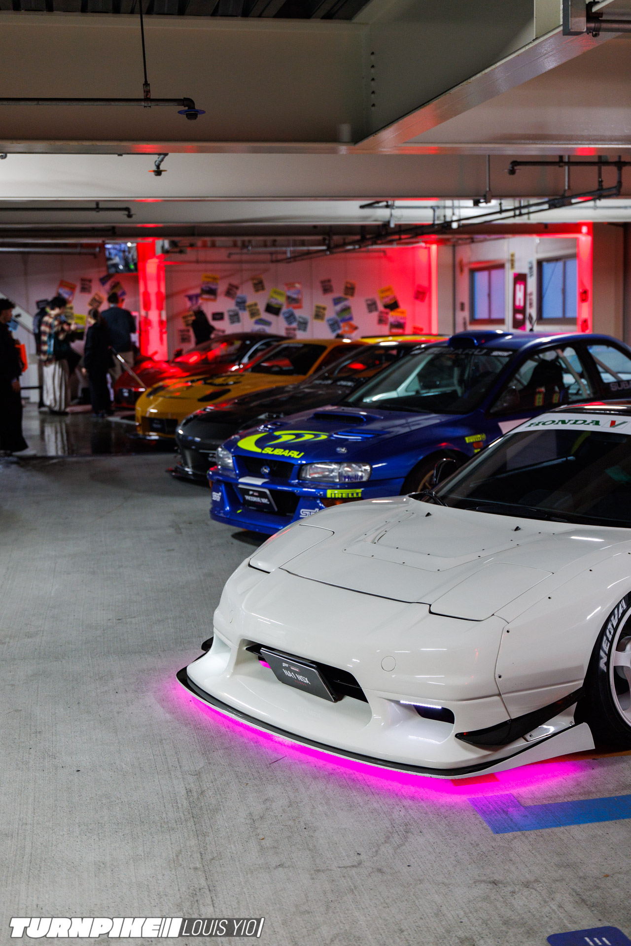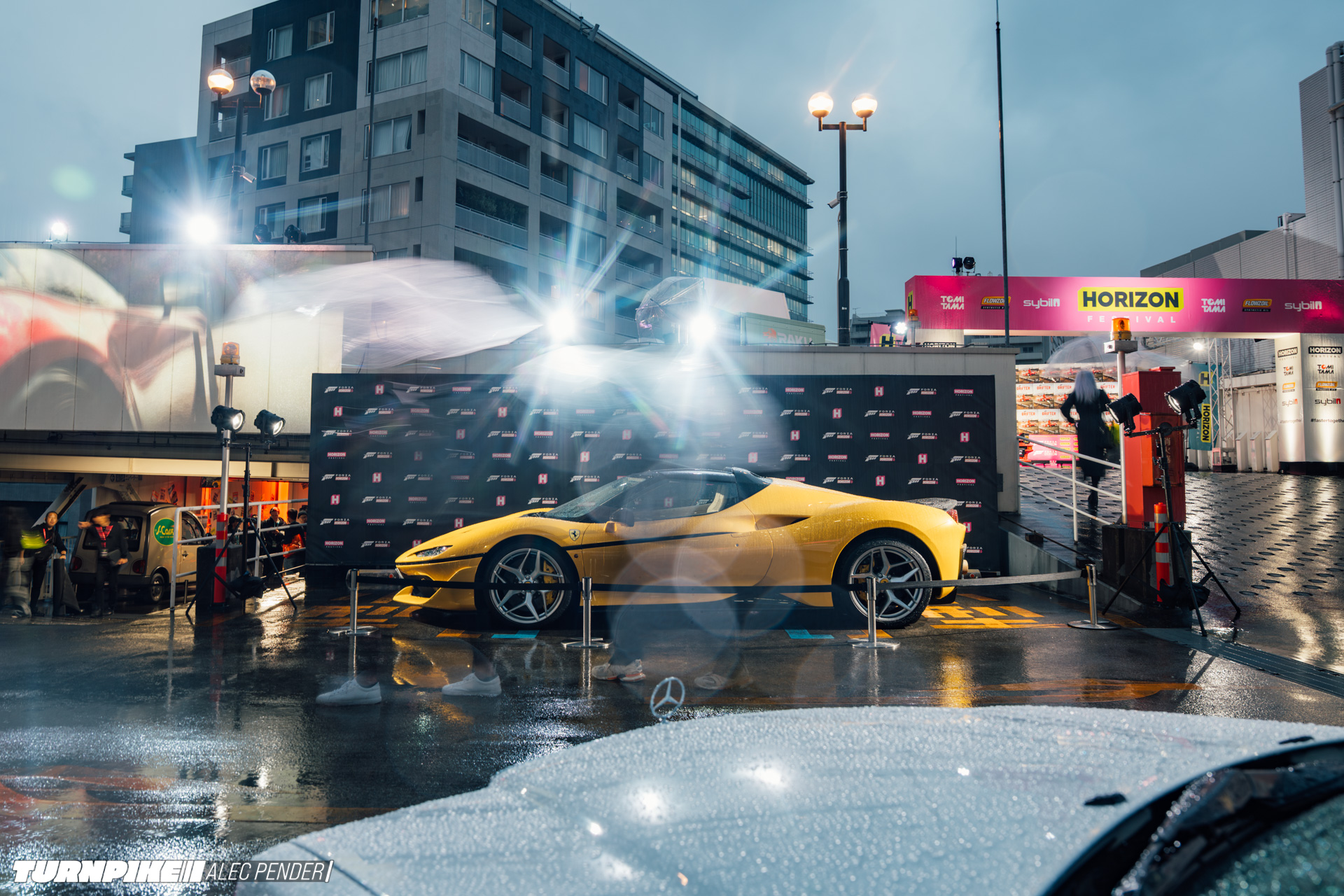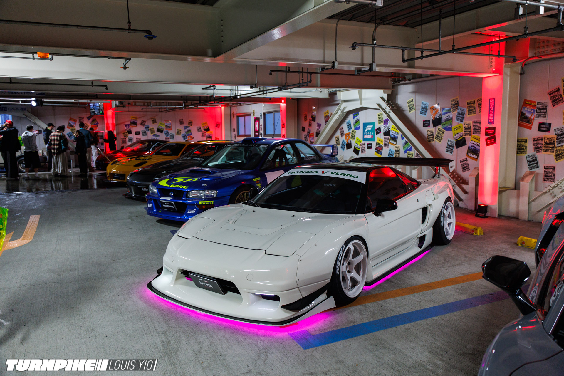 The party was also a great way for the Forza team to introduce the game to key people in both the car and gaming worlds. Alec and I added to that by stepping up to select nine cars to represent Japanese car culture, alongside my RWB Porsche 964. The lineup ranged from wide-body RX-7s and an over-fendered Honda NSX on air, to classics like an AE86 Trueno, a drift-spec Corolla wagon, and a Datsun 210 previously featured on Turnpike. Tying it all together was a rare Tommykaira M19, a complete car that the Kyoto-based builder created in the late ‘80s before it got busy building its Nissan based line up.