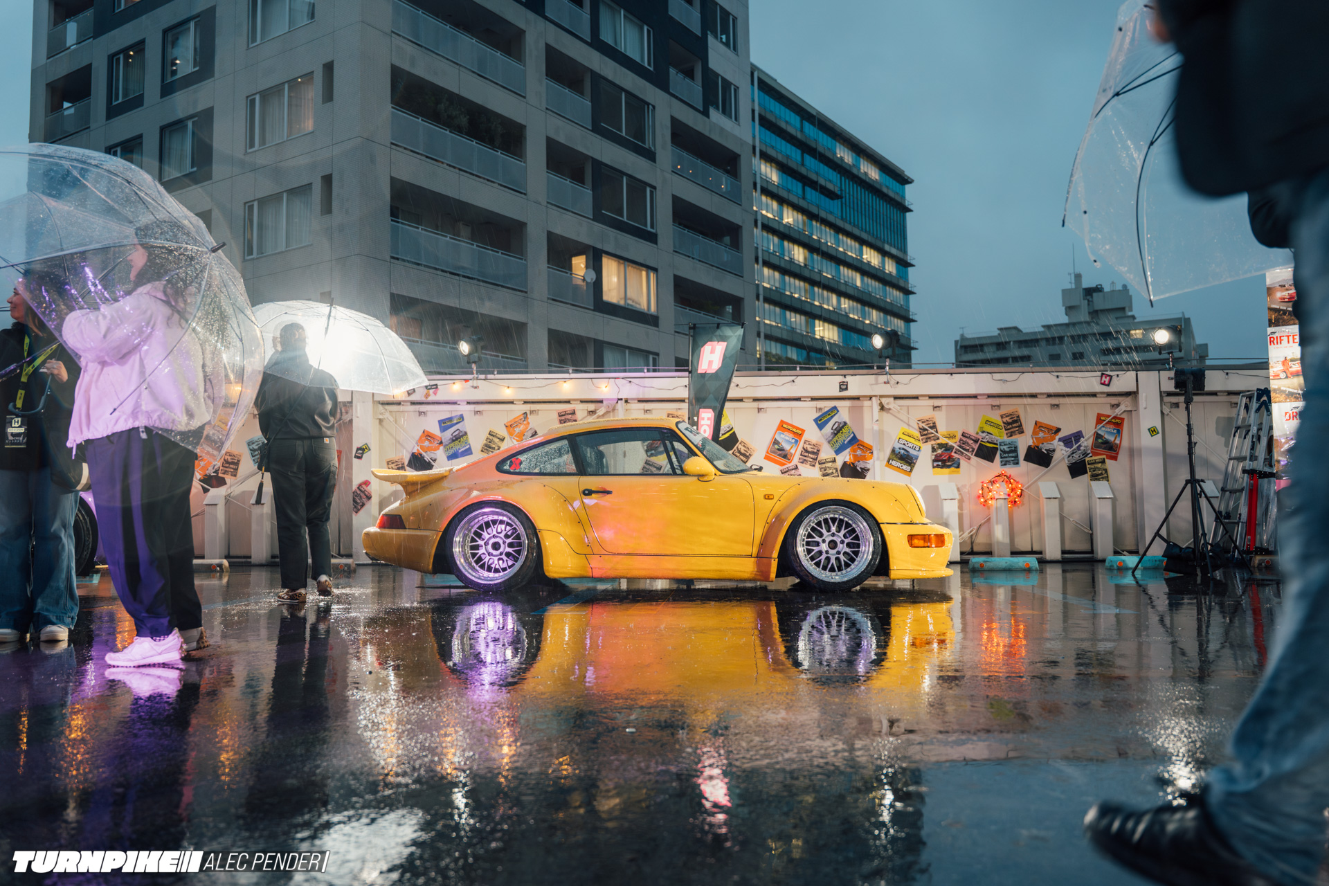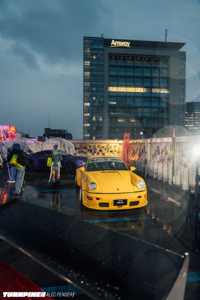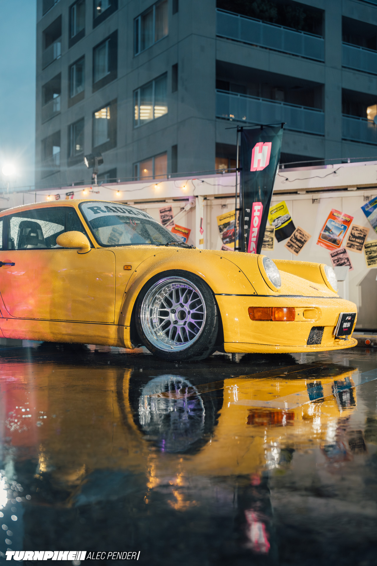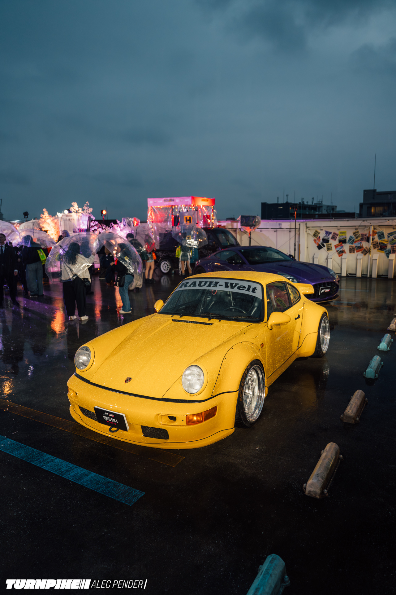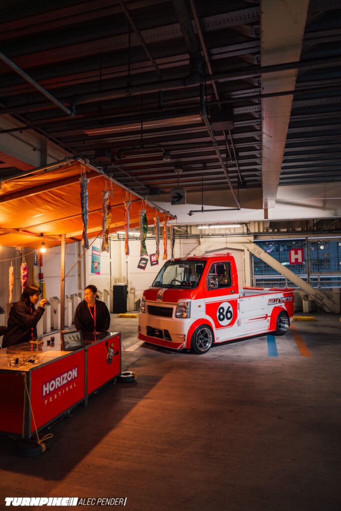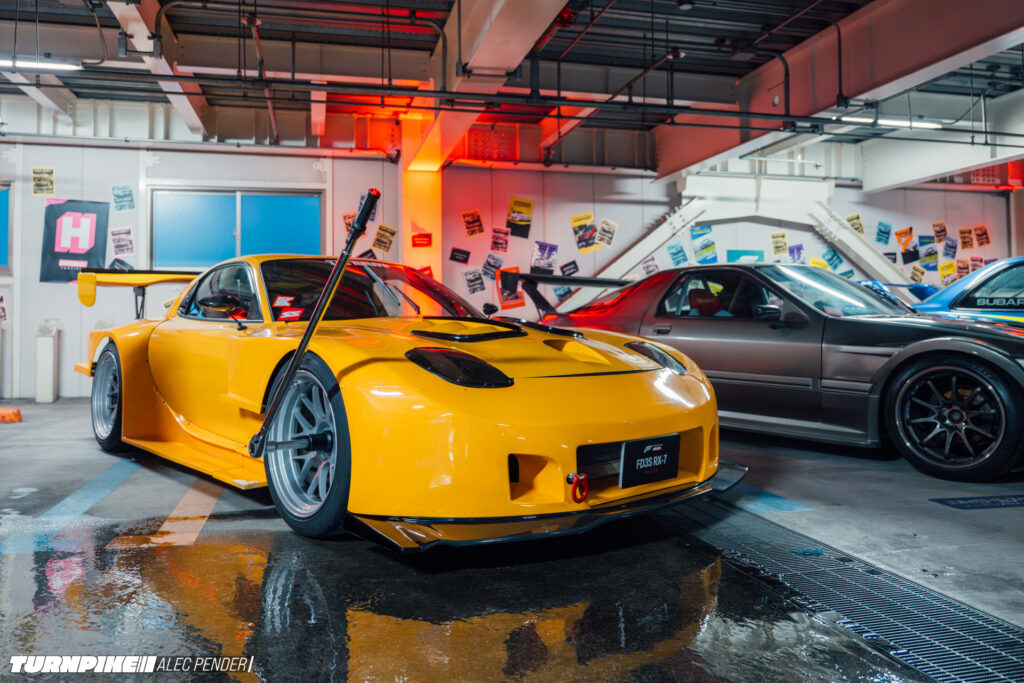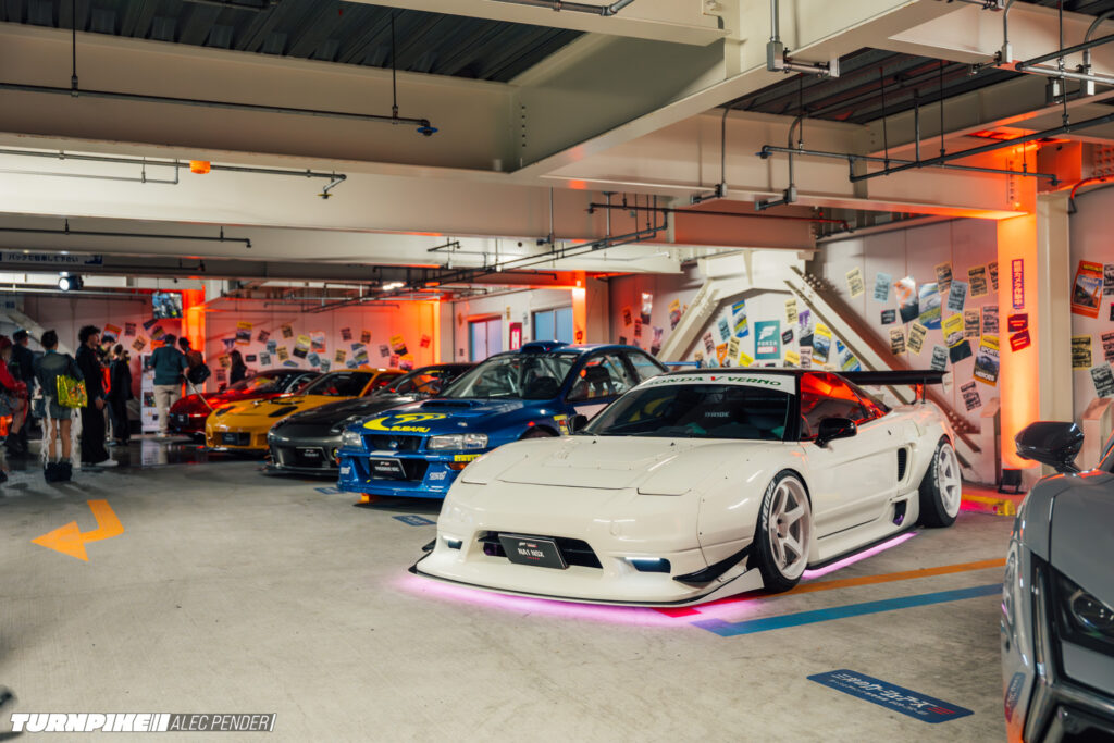 The party was also a great way for the Forza team to introduce the game to key people in both the car and gaming worlds. Alec and I added to that by stepping up to select nine cars to represent Japanese car culture, alongside my RWB Porsche 964. The lineup ranged from wide-body RX-7s and an over-fendered Honda NSX on air, to classics like an AE86 Trueno, a drift-spec Corolla wagon, and a Datsun 210 previously featured on Turnpike. Tying it all together was a rare Tommykaira M19, a complete car that the Kyoto-based builder created in the late ‘80s before it got busy building its Nissan based line up.
