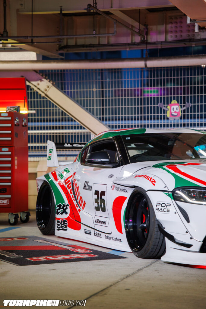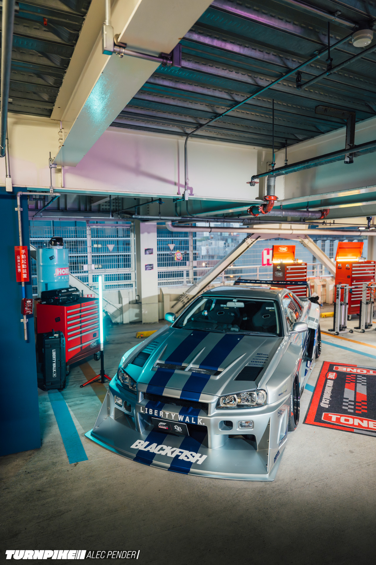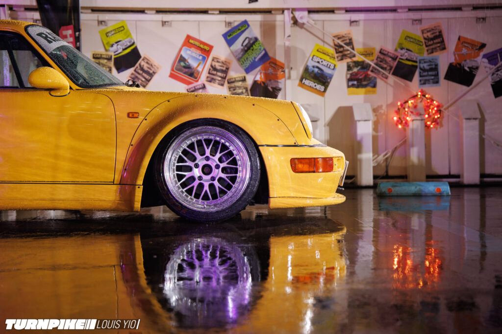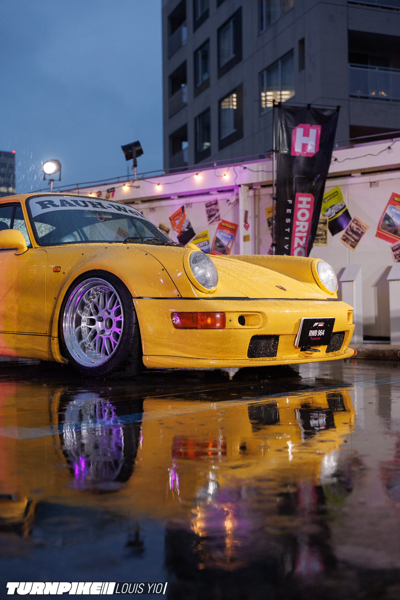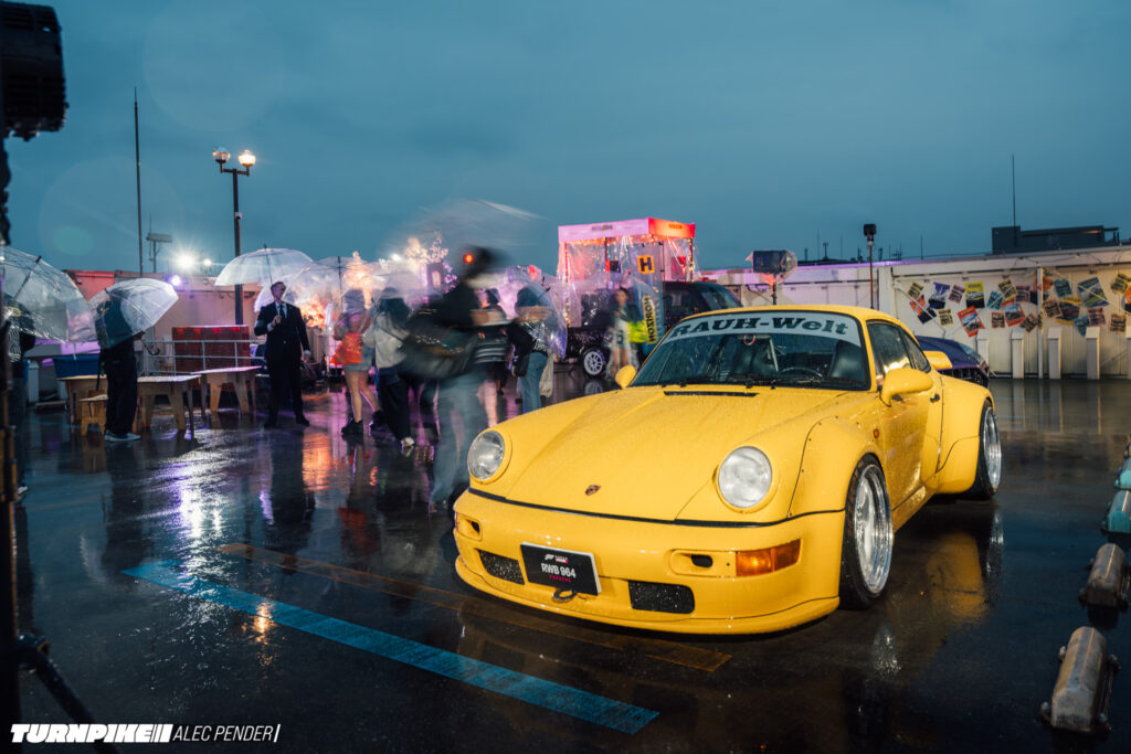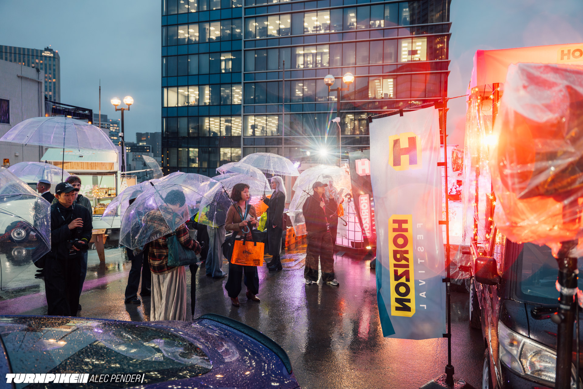 The party was also a great way for the Forza team to introduce the game to key people in both the car and gaming worlds. Alec and I added to that by stepping up to select nine cars to represent Japanese car culture, alongside my RWB Porsche 964. The lineup ranged from wide-body RX-7s and an over-fendered Honda NSX on air, to classics like an AE86 Trueno, a drift-spec Corolla wagon, and a Datsun 210 previously featured on Turnpike. Tying it all together was a rare Tommykaira M19, a complete car that the Kyoto-based builder created in the late ‘80s before it got busy building its Nissan based line up.
