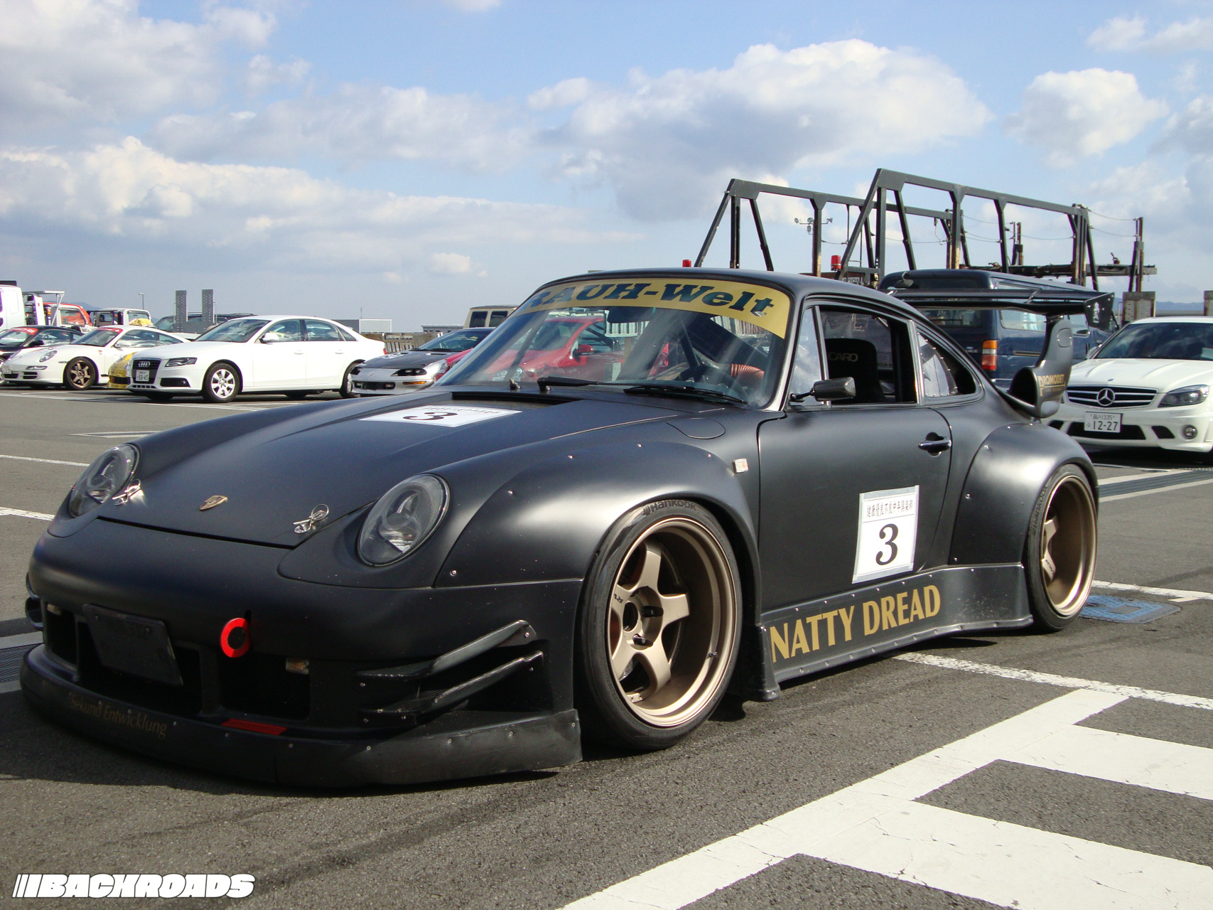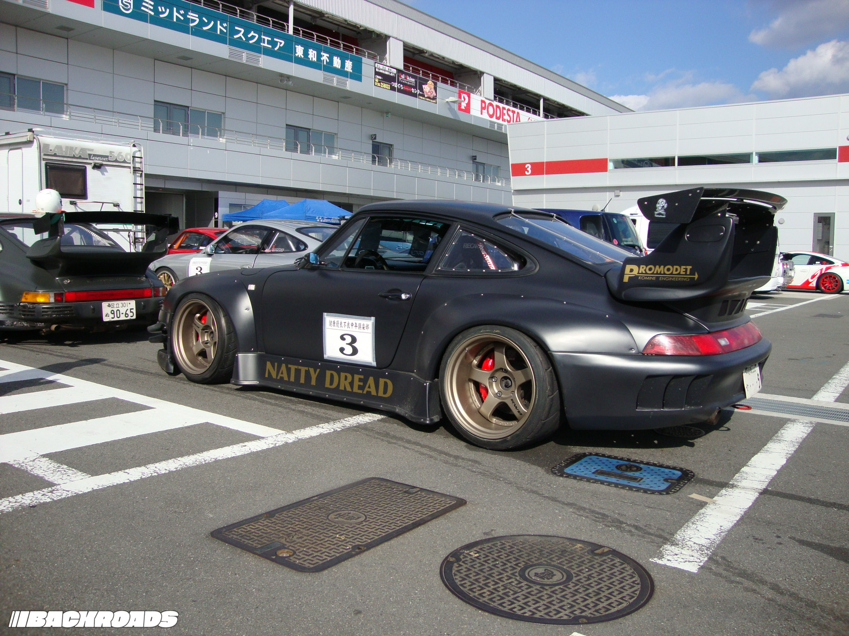 Our visit to Fuji Speedway included a drift car ride on the then-new Gymkhana Course, but the highlight for me was seeing a black Porsche 993 on gold wheels, which was there for a track day. From a distance, it looked like a car I had only heard about – Akira Nakai’s iconic RWB 930, AKA Stella Artois – but up close and personal, it identified itself as a 993 called Natty Dread. At age 34, I had seen every car I ever needed to see.