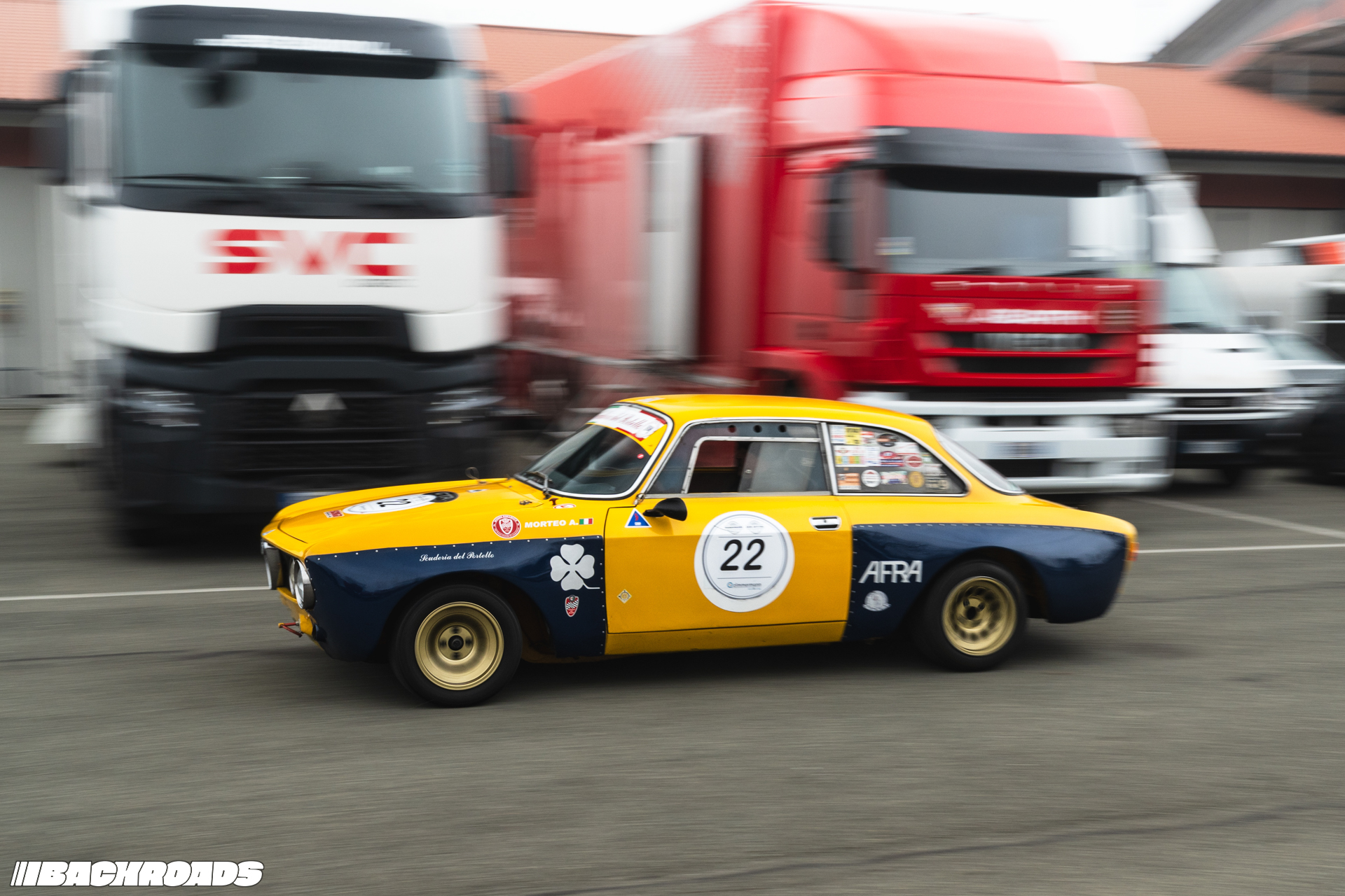 It was a typical day in Northern Italy – very dull and a bit foggy. So, it was nice to arrive at the circuit after two hours of grey highway driving and see all the colorful – and definitely not boring – youngtimer and classic cars.