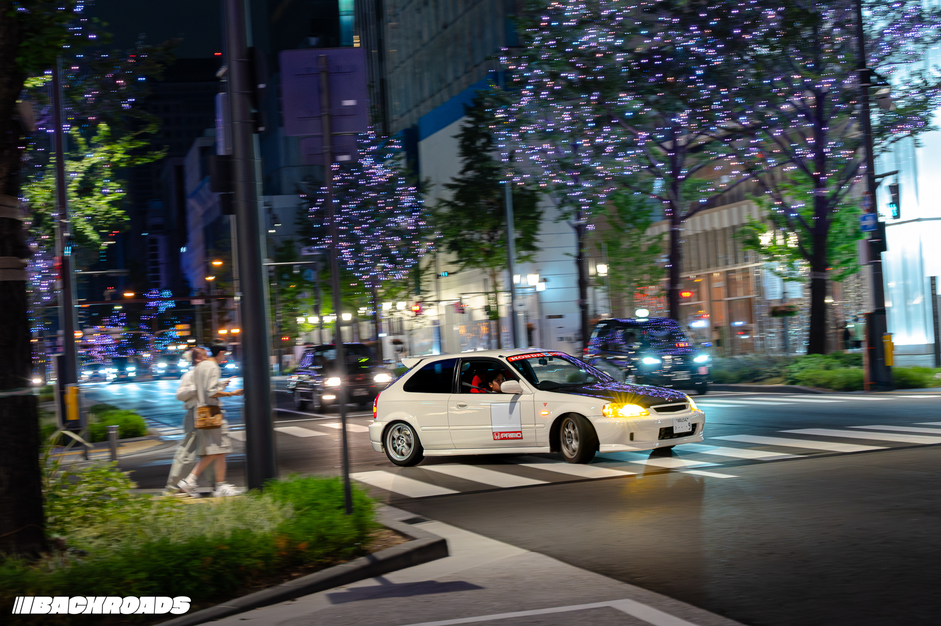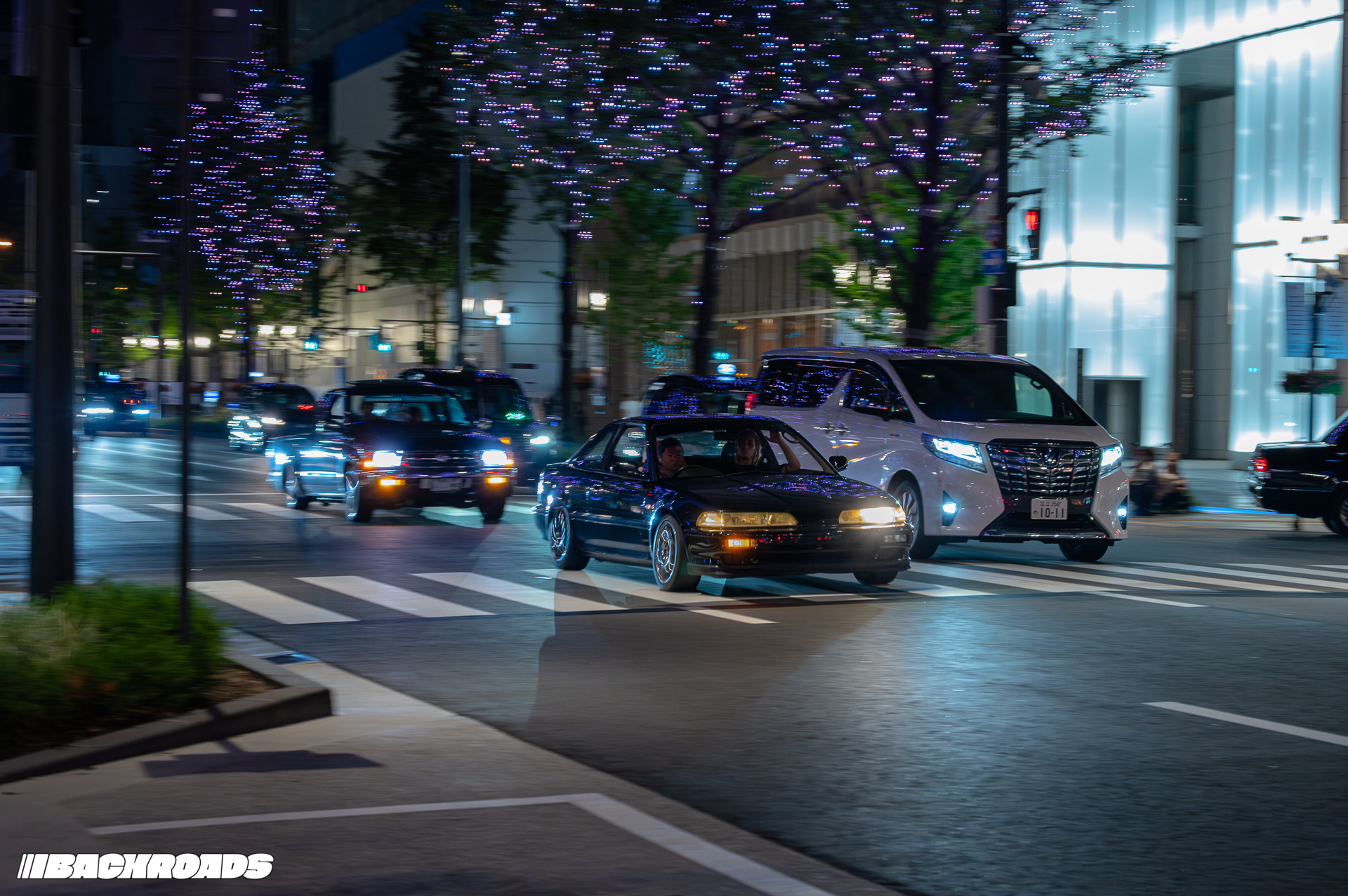 It was only a 25-minute walk from my hotel, so I quickly grabbed my camera gear and headed down to the area. What I saw made me so sad that it was my last night in Japan. Hondas ranging from Preludes to the Osaka staple Civics, two R32 Nissan Skyline GT-Rs and stanced Toyota Crowns.