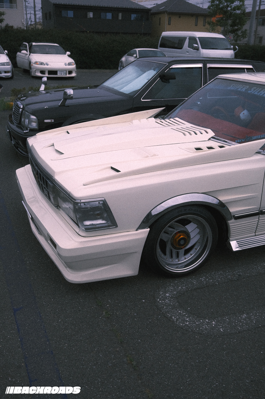 Haiso builds typically use luxury sedans such as the Toyota Crown, Nissan Cedric, or Nissan Gloria as their foundation. Unlike their flamboyant Chibaragi counterparts, Haiso cars favor understated elegance, with looser wheel fitment and restrained two-tone paint schemes in white, silver, or gold.