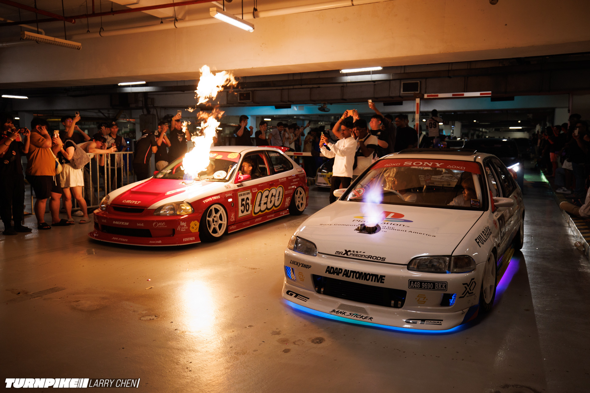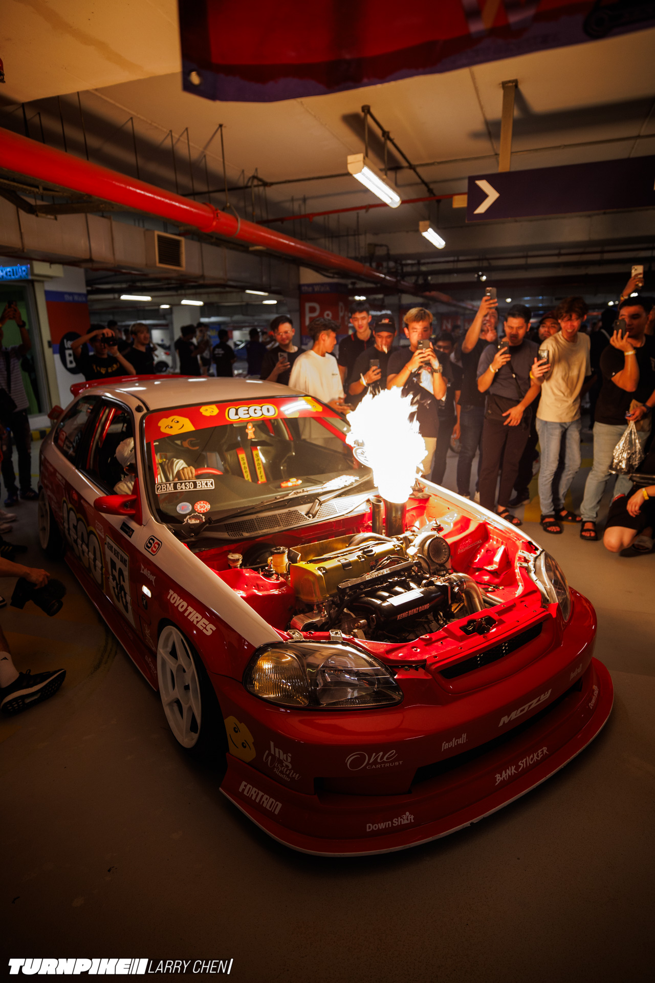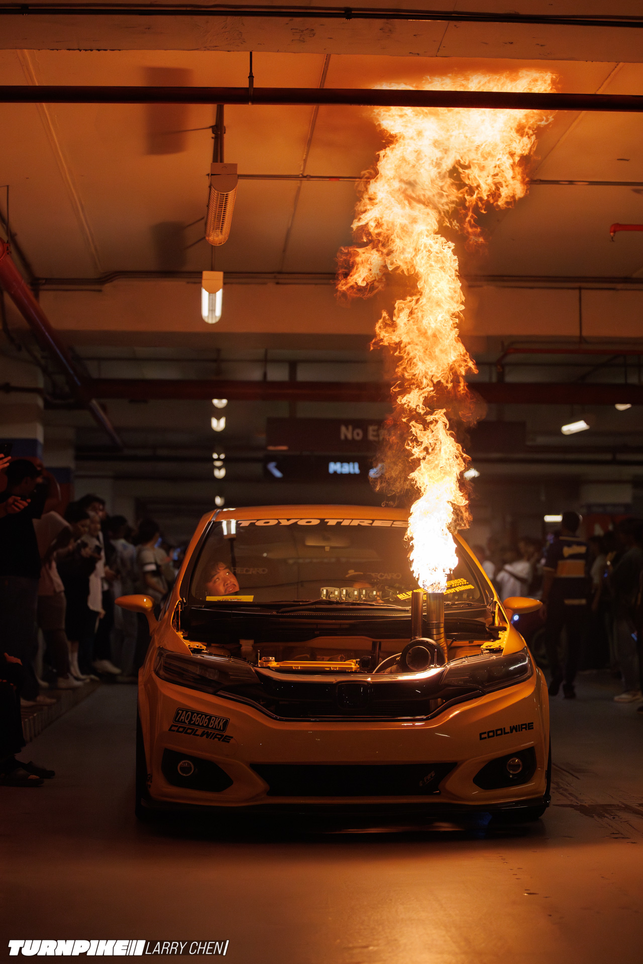 There were a few moments in 2024 when I was certain the fire sprinklers would be triggered by the massive flames emitting from open hoods, most of which were Hondas brought over from Thailand for the show. In 2025, it did rain indoors, which created an absolutely unforgettable scene. Honestly, it was a welcome relief from the heat and humidity, which was only exacerbated by the exhaust flames. Let me tell you, it made for some incredible photographs.
