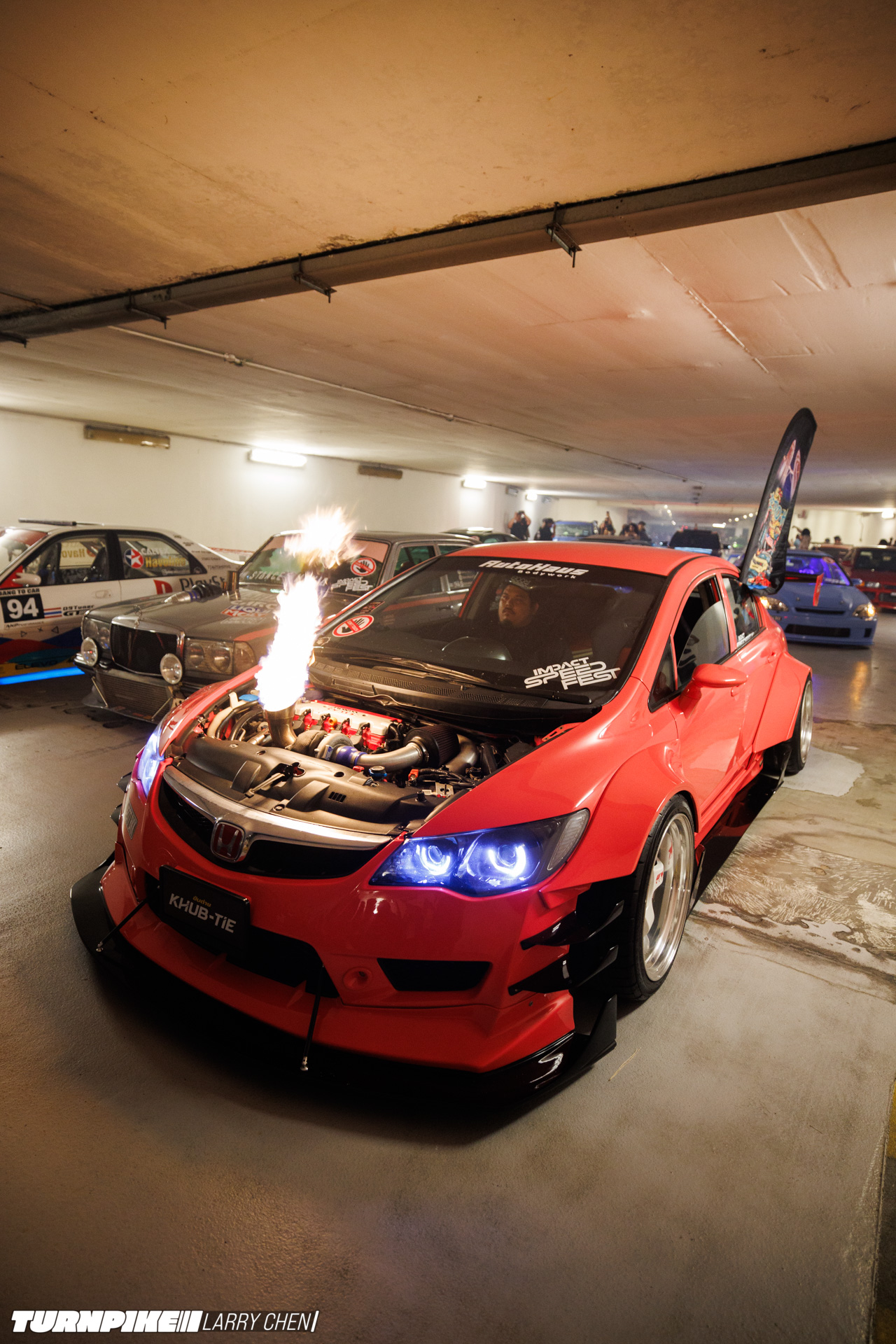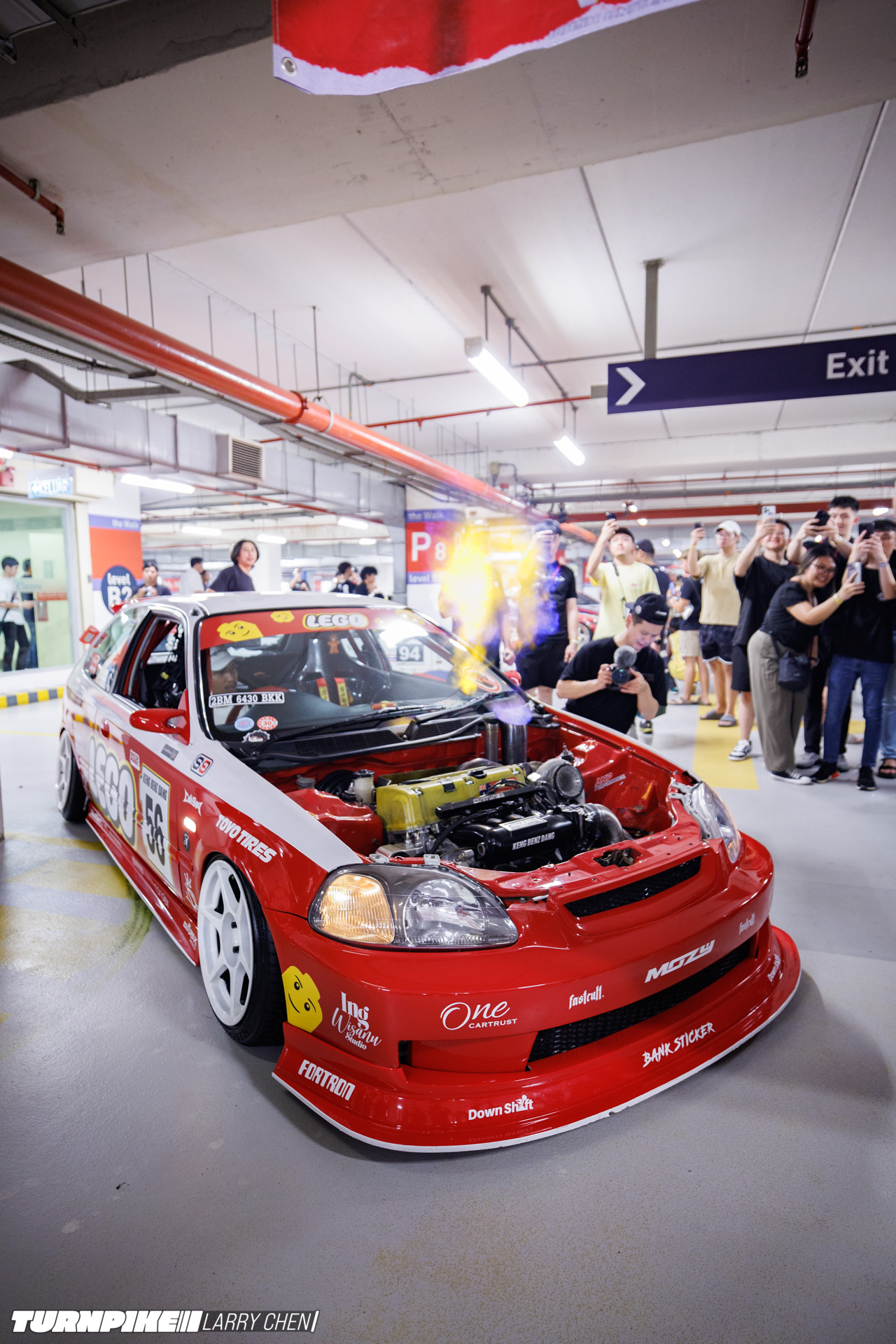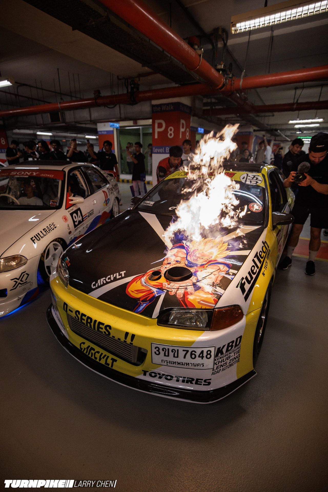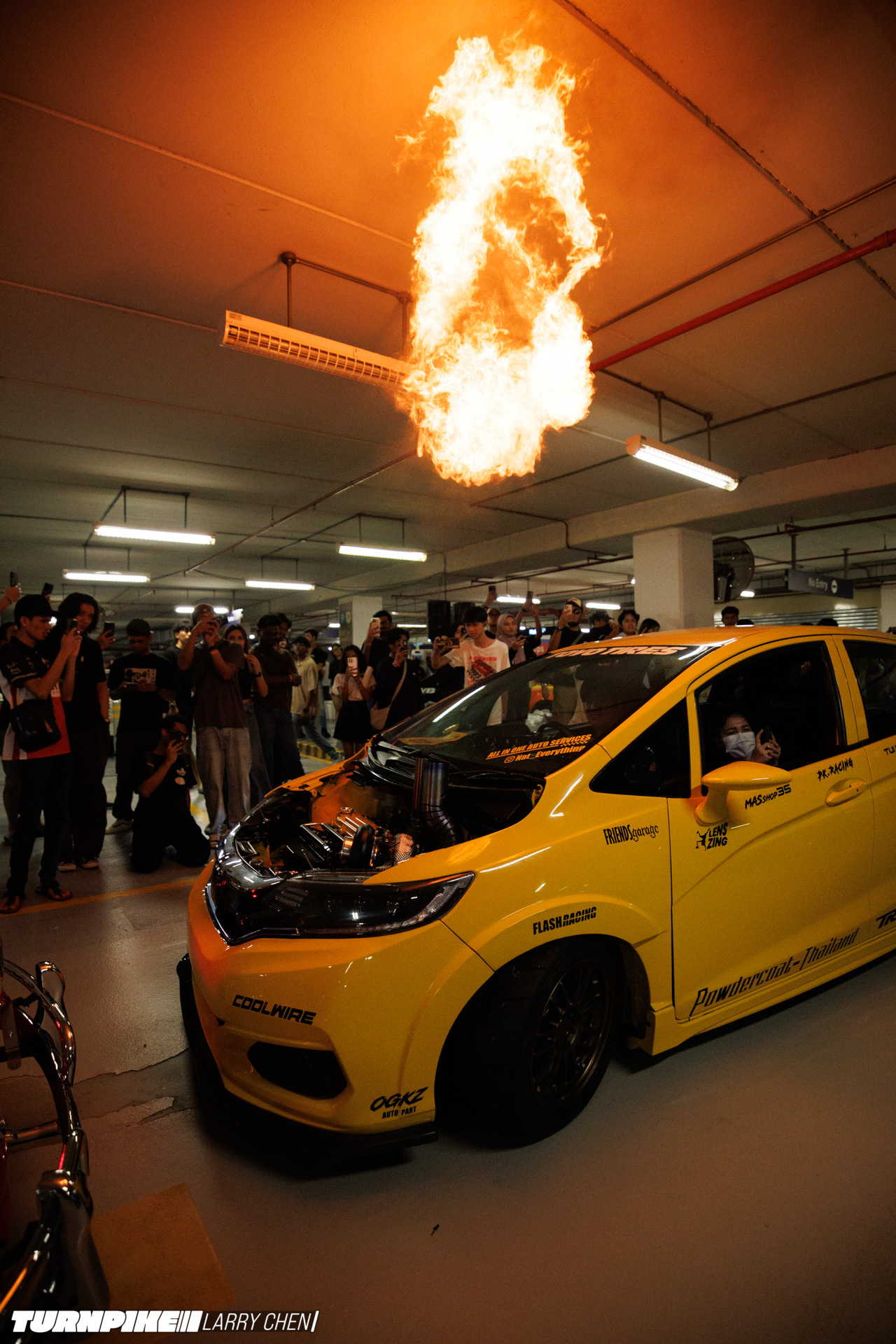 There were a few moments in 2024 when I was certain the fire sprinklers would be triggered by the massive flames emitting from open hoods, most of which were Hondas brought over from Thailand for the show. In 2025, it did rain indoors, which created an absolutely unforgettable scene. Honestly, it was a welcome relief from the heat and humidity, which was only exacerbated by the exhaust flames. Let me tell you, it made for some incredible photographs.