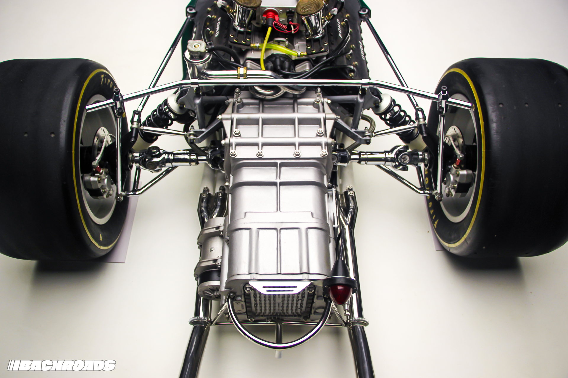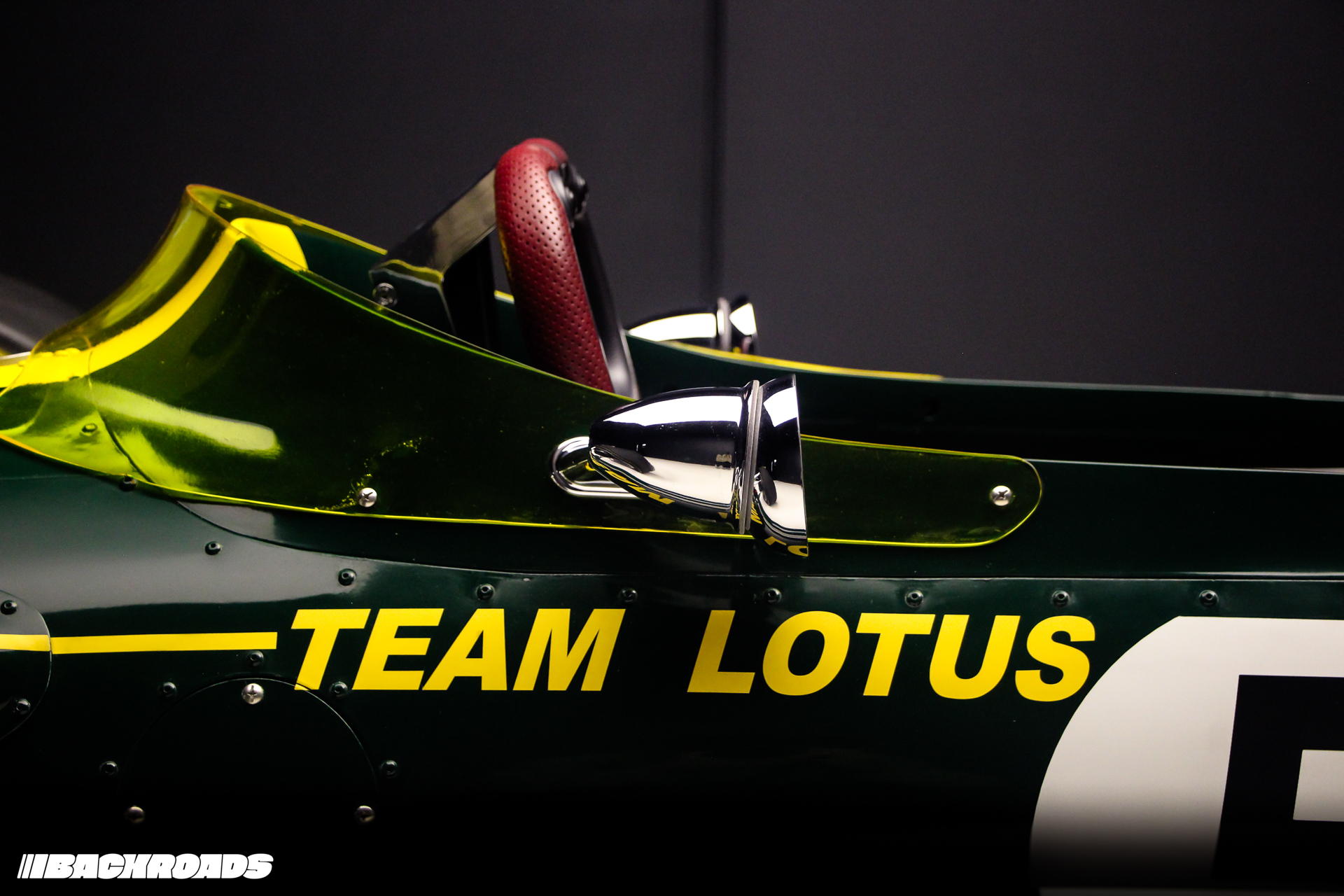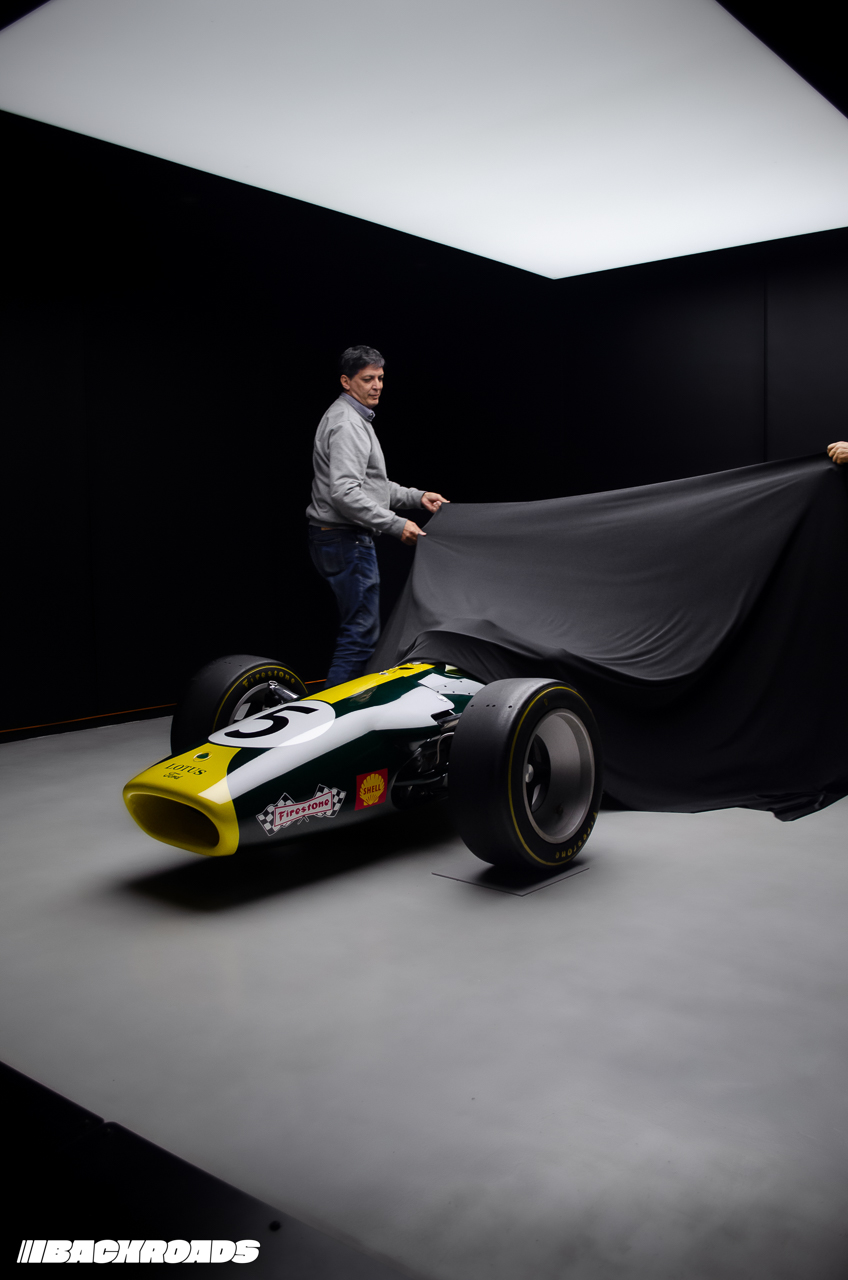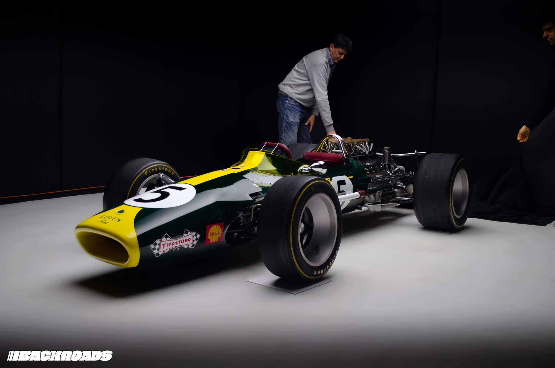 The whole showroom felt like something straight out of The Incredibles, but instead of the Incredibile, I was looking at a 1967 Lotus Formula 1 car – just a bit smaller.