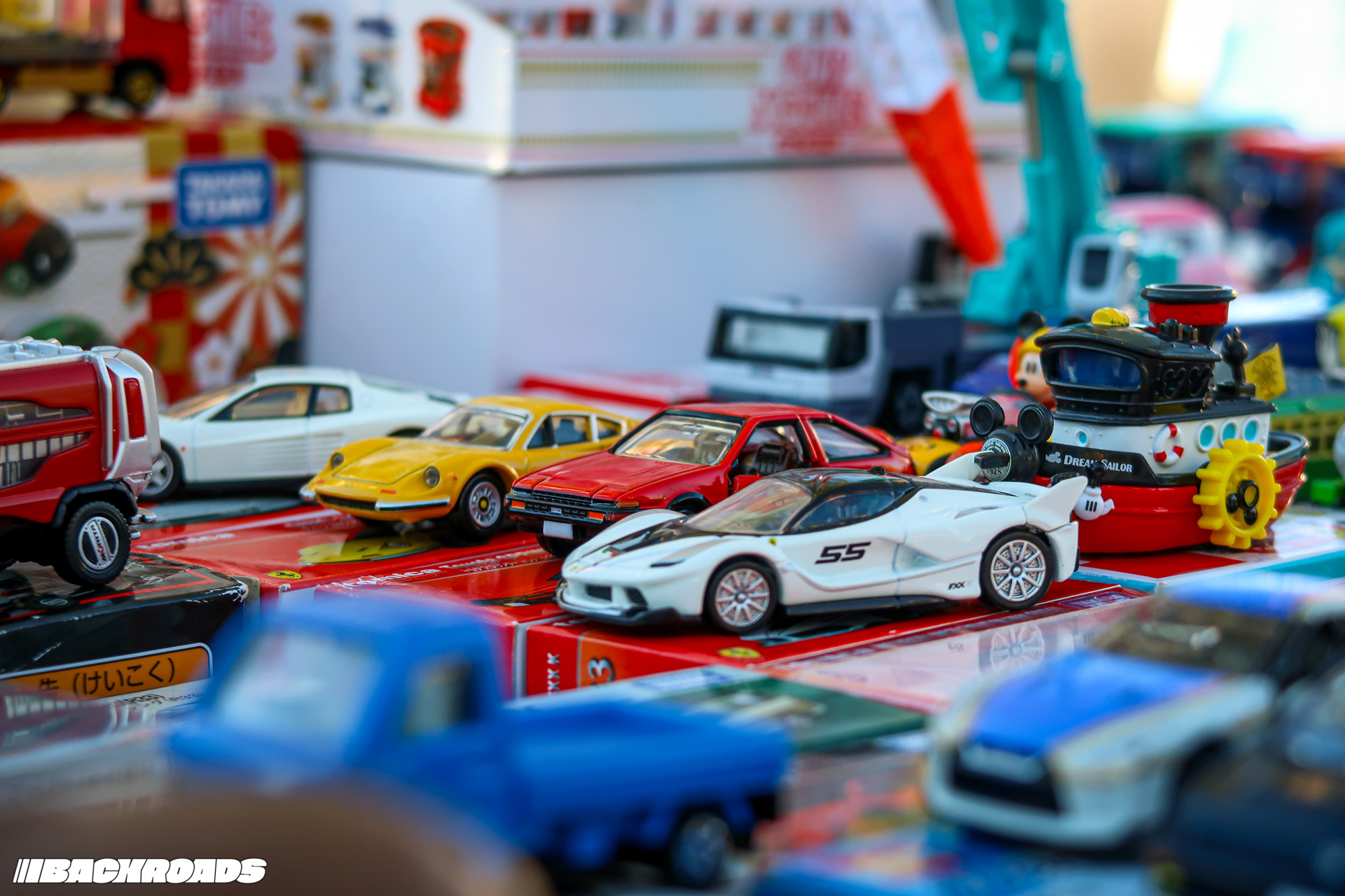 Peep the Honda N600 and Japanese lowrider hearse (yes, really) parked a stone’s throw from a Superformance Ford GT40 MKI replica, R34 Nissan Skyline GT-R V-Spec, and a Ferrari Testarossa. There’s even a market for collectible Hot Wheels and Tomicas, popular with families looking to indoctrinate their little ones. I bought two Tomica Premiums.