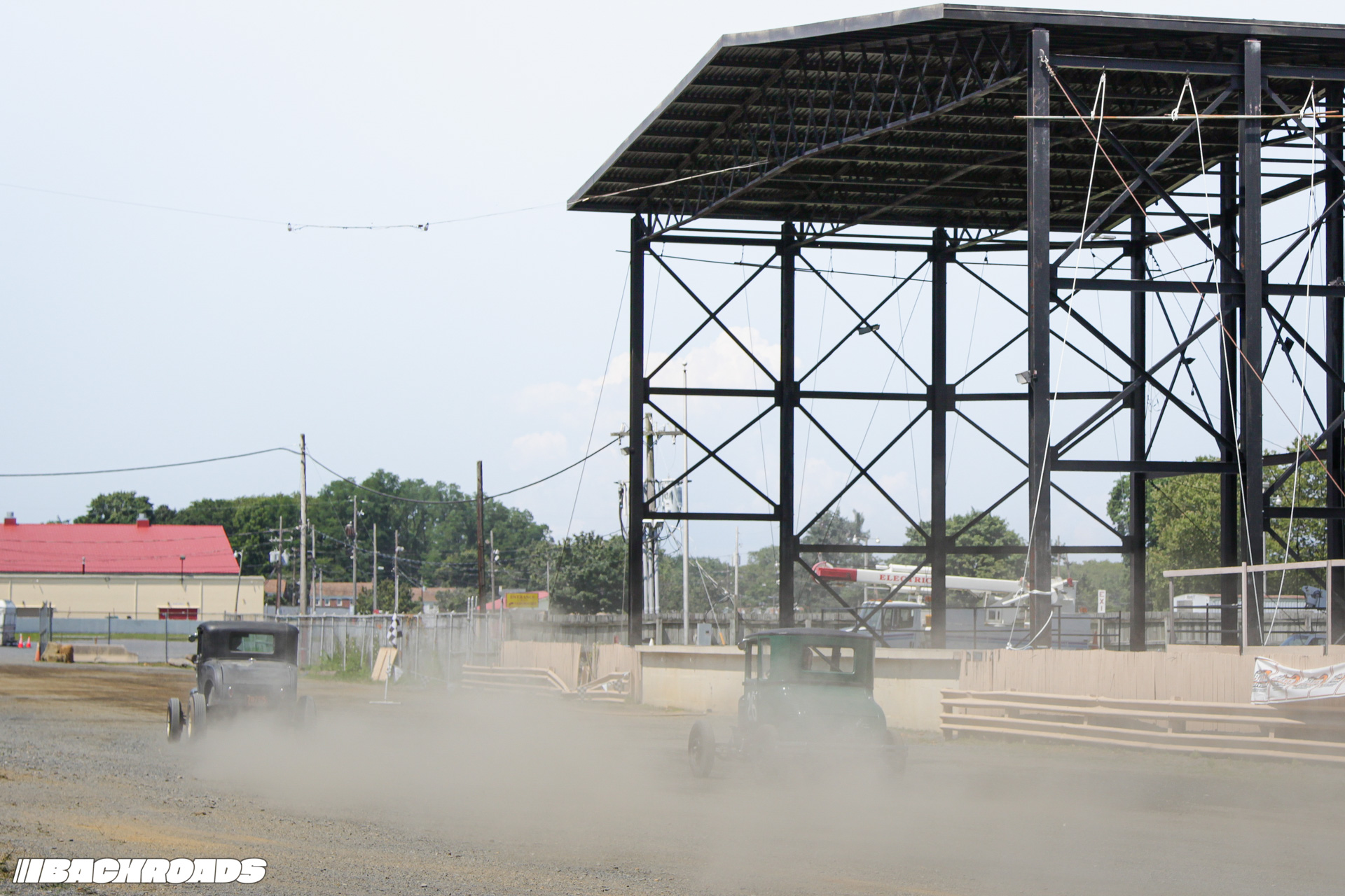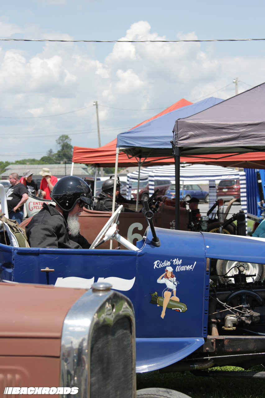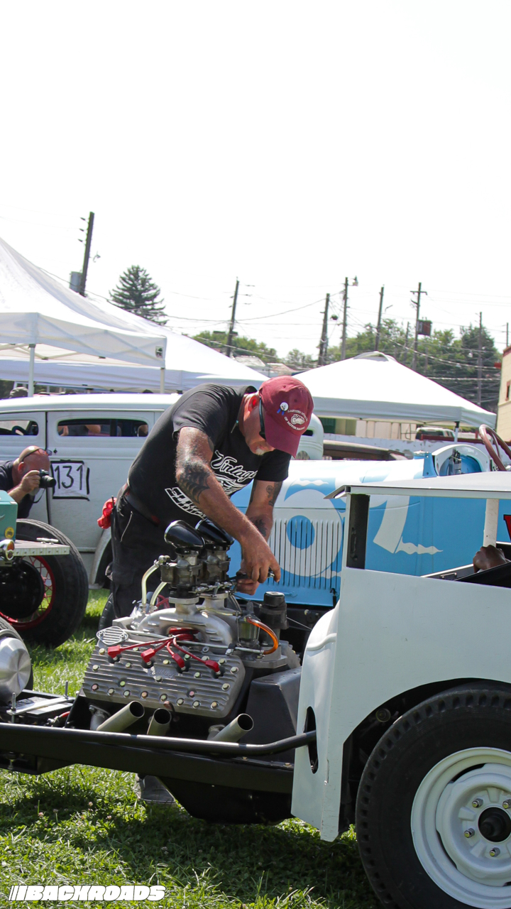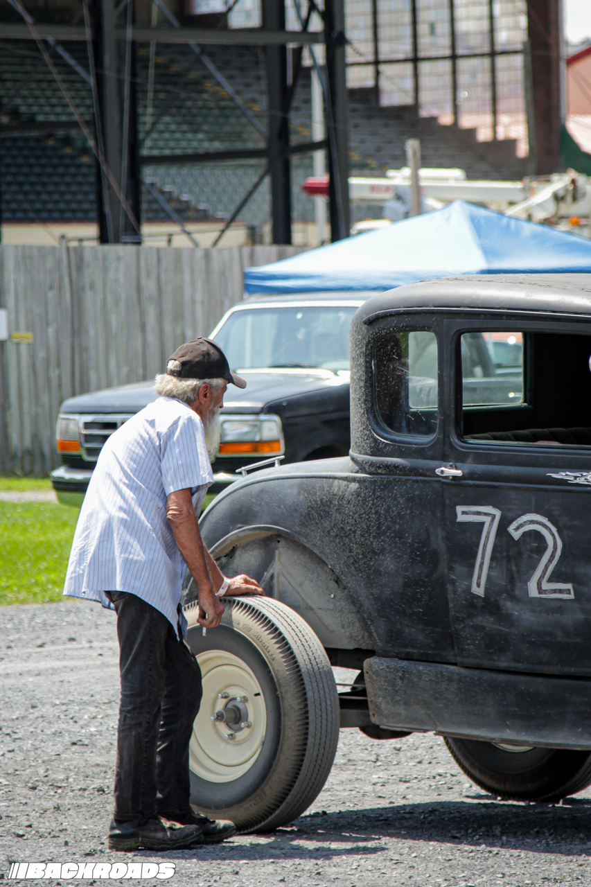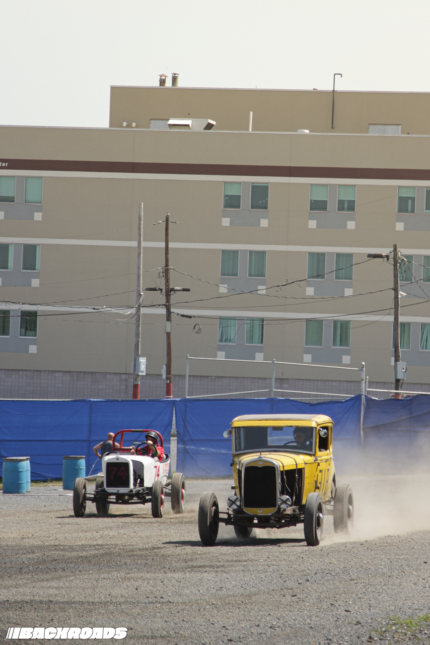 Track preparation was limited to a garden hose water-down and a few passes from a tractor pulling tires to groom the gravel surface, which was the perfect recipe for action-packed racing. Drivers wrestled against a lack of grip, spinning and sputtering off the line and leaving dust clouds in their wake. Slow has never looked so cool.