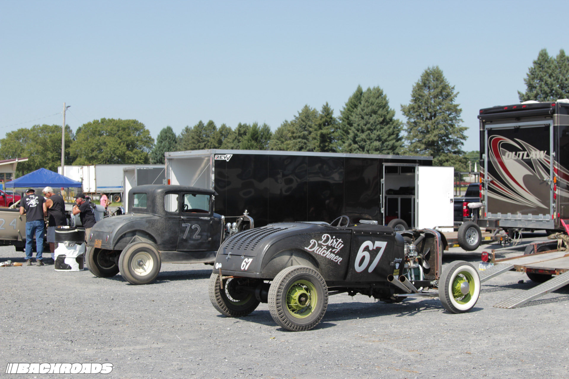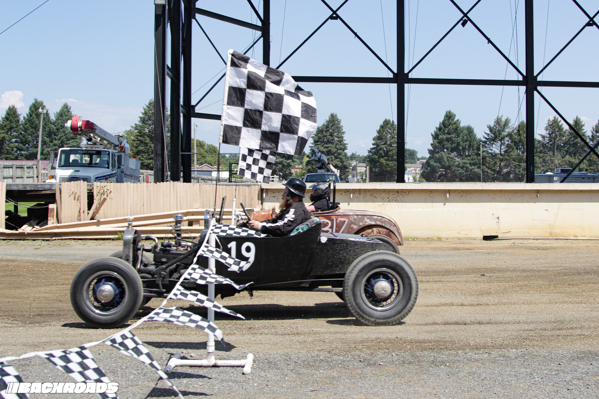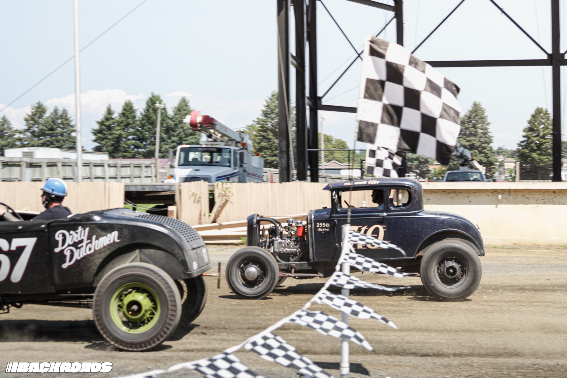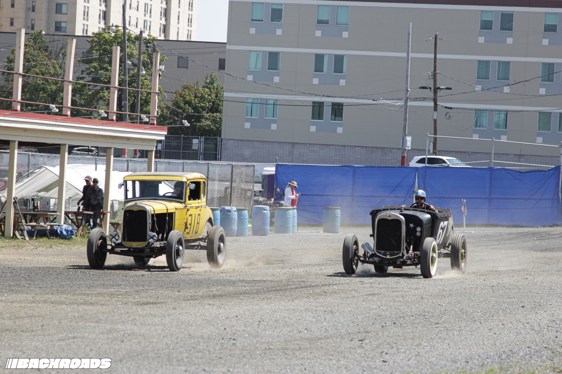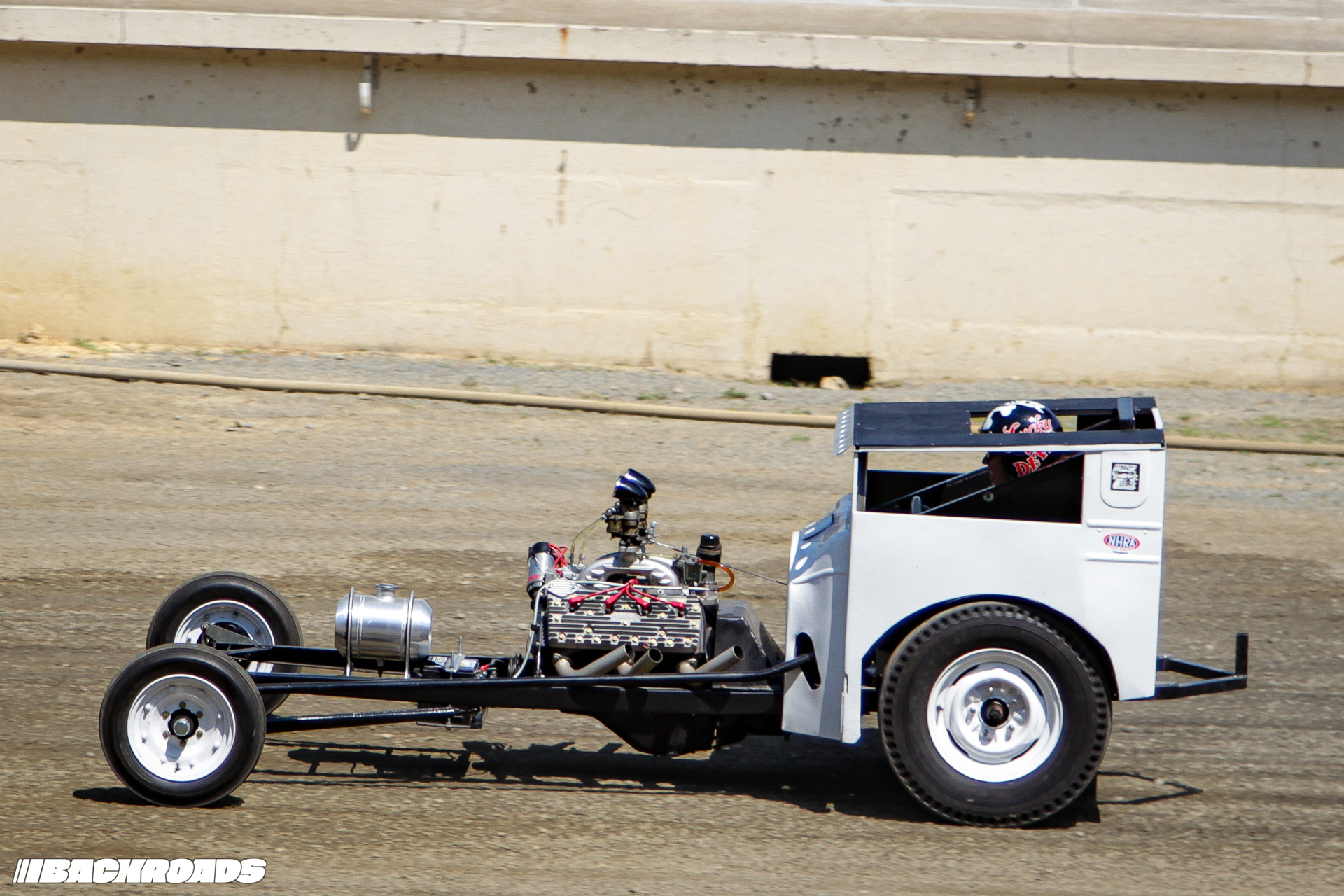 Track preparation was limited to a garden hose water-down and a few passes from a tractor pulling tires to groom the gravel surface, which was the perfect recipe for action-packed racing. Drivers wrestled against a lack of grip, spinning and sputtering off the line and leaving dust clouds in their wake. Slow has never looked so cool.