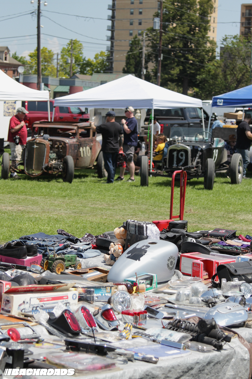 In the infield, friends and family could be seen wrenching on their machines, squeezing out every last bit of speed. The bustle of the pit area was accompanied by a car show featuring kustoms and classics, along with an expansive swap meet full of vintage parts and memorabilia.