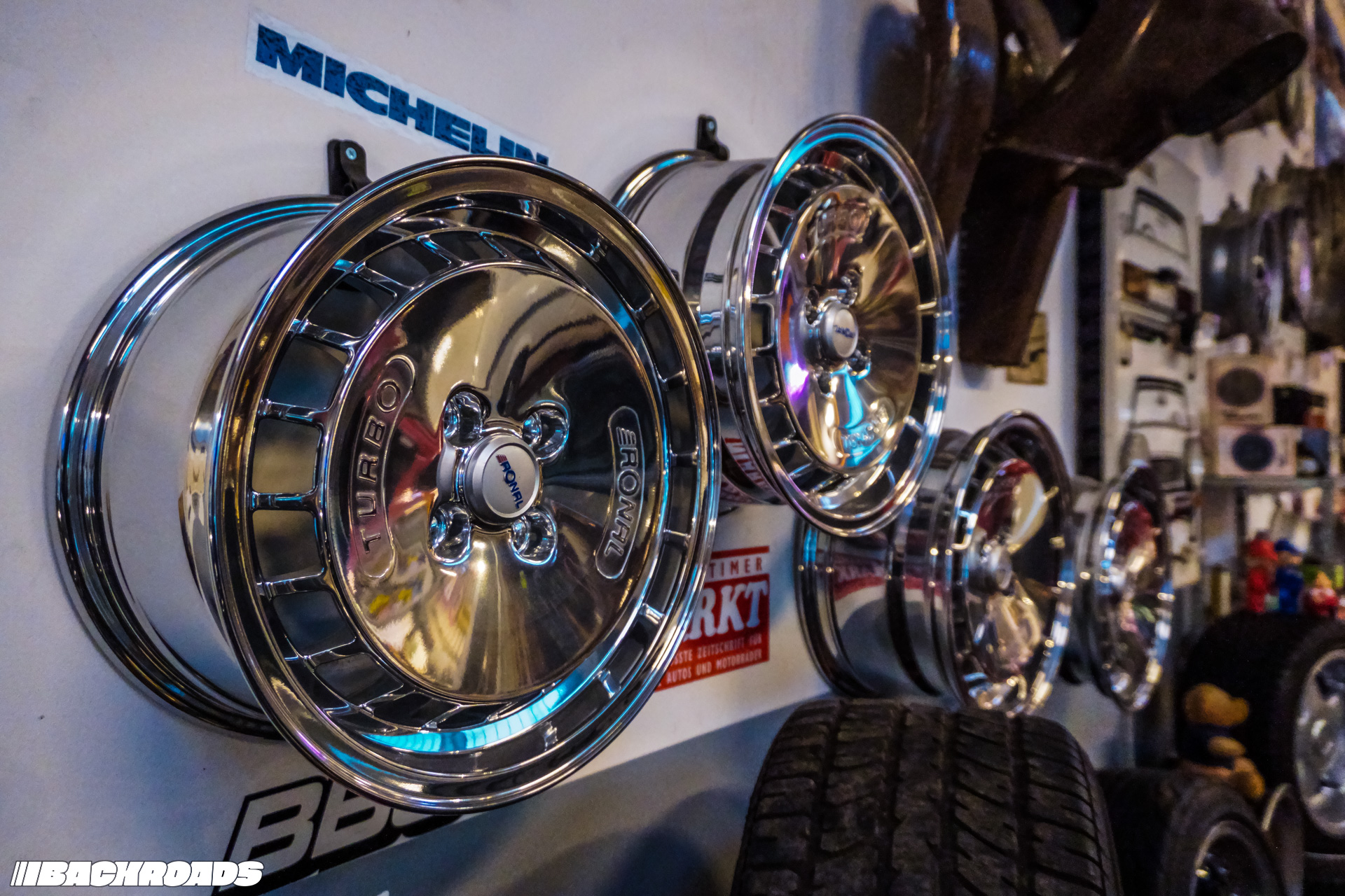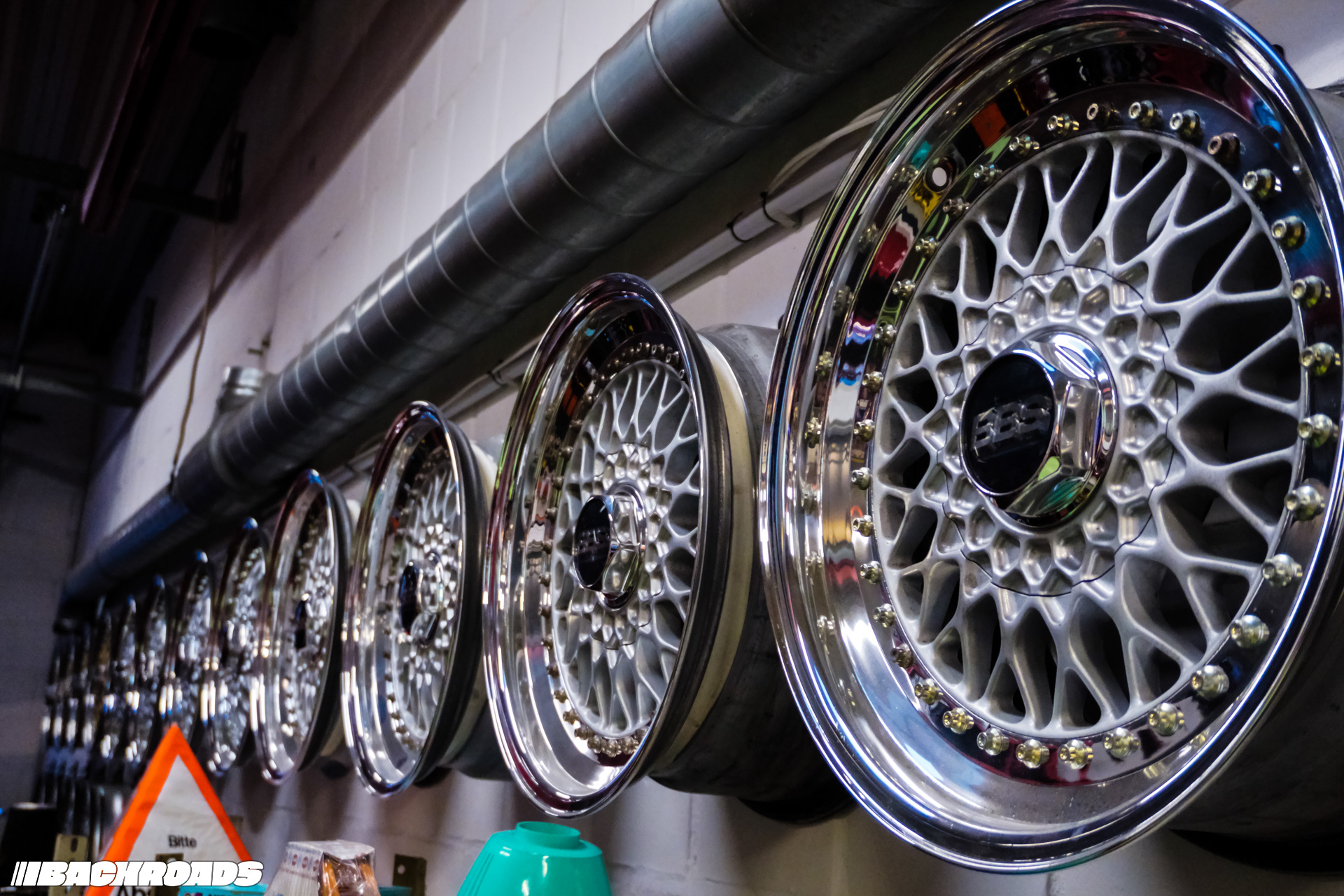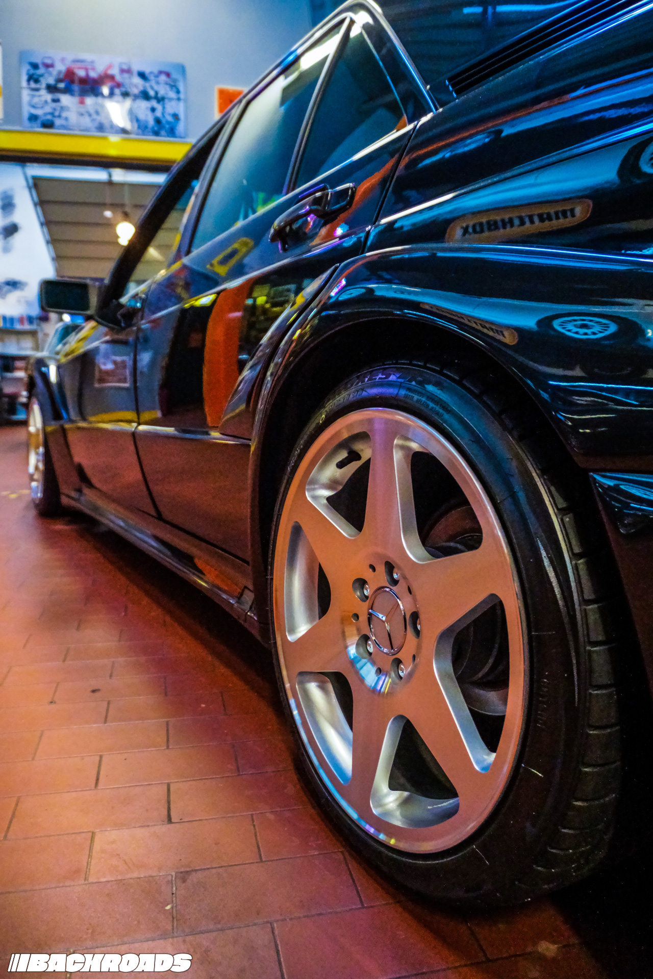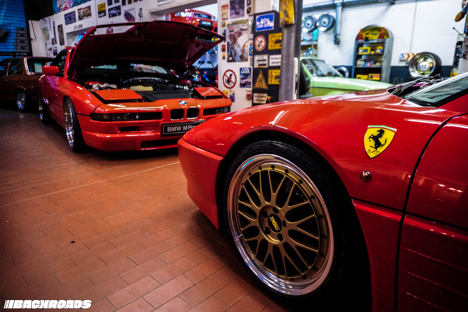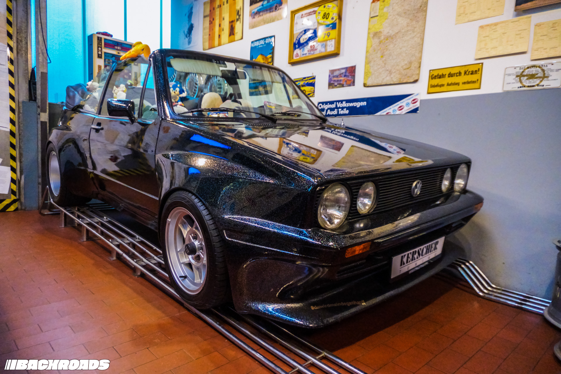 After paying the €9 (approximately US$10) entrance fee, visitors step into a space that feels frozen in time. Every detail is period-correct, from engines and wheels to tools, posters, and diagnostic equipment. Highlights for me included an Audi Quattro, a Lotus Carlton, a Ferrari F355, a drag-prepared Opel Ascona, and a replica Mercedes-Benz 190E EVO II. From a window, it is even possible to watch cars being tested on the dyno when it’s in use.