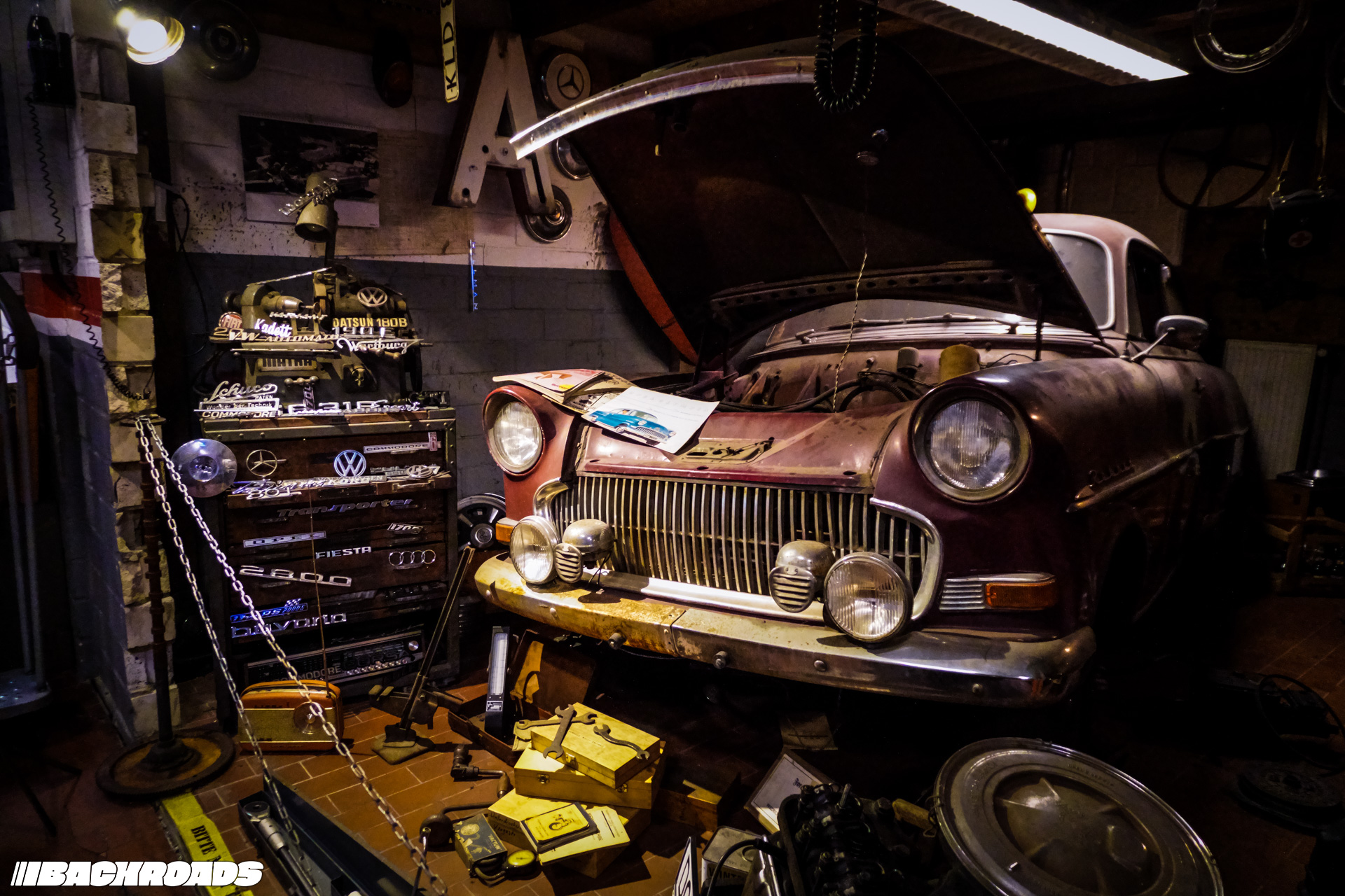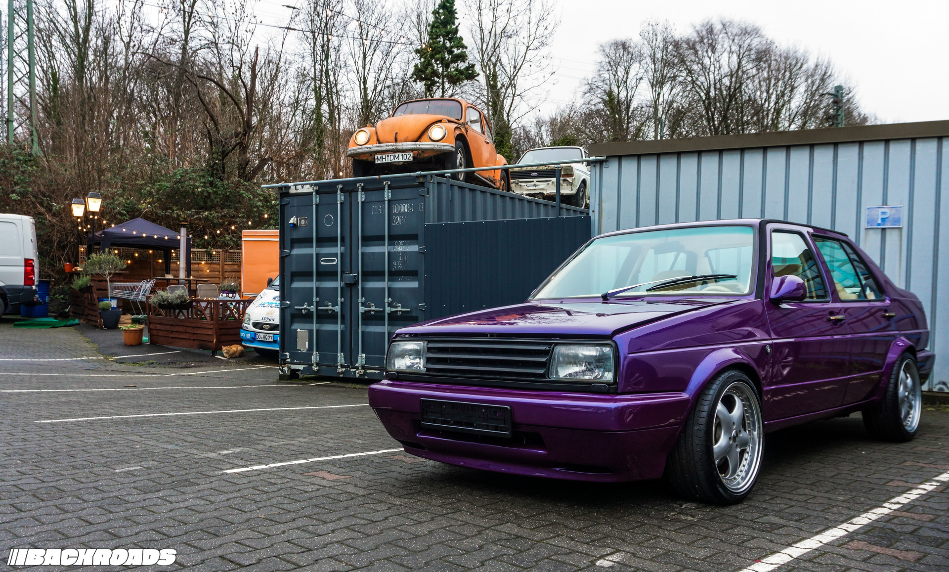 Arriving, visitors are greeted by a Mk2 Volkswagen Golf with a twist: two front ends instead of a front and a back. This sets the tone for the eclectic mix of vehicles you’ll find onsite on any given day. On the day I visited, the parking area hosted an E38 BMW 7 Series, an EK4 Honda Civic, a Volkswagen Passat B2, and an Opel Ascona C.