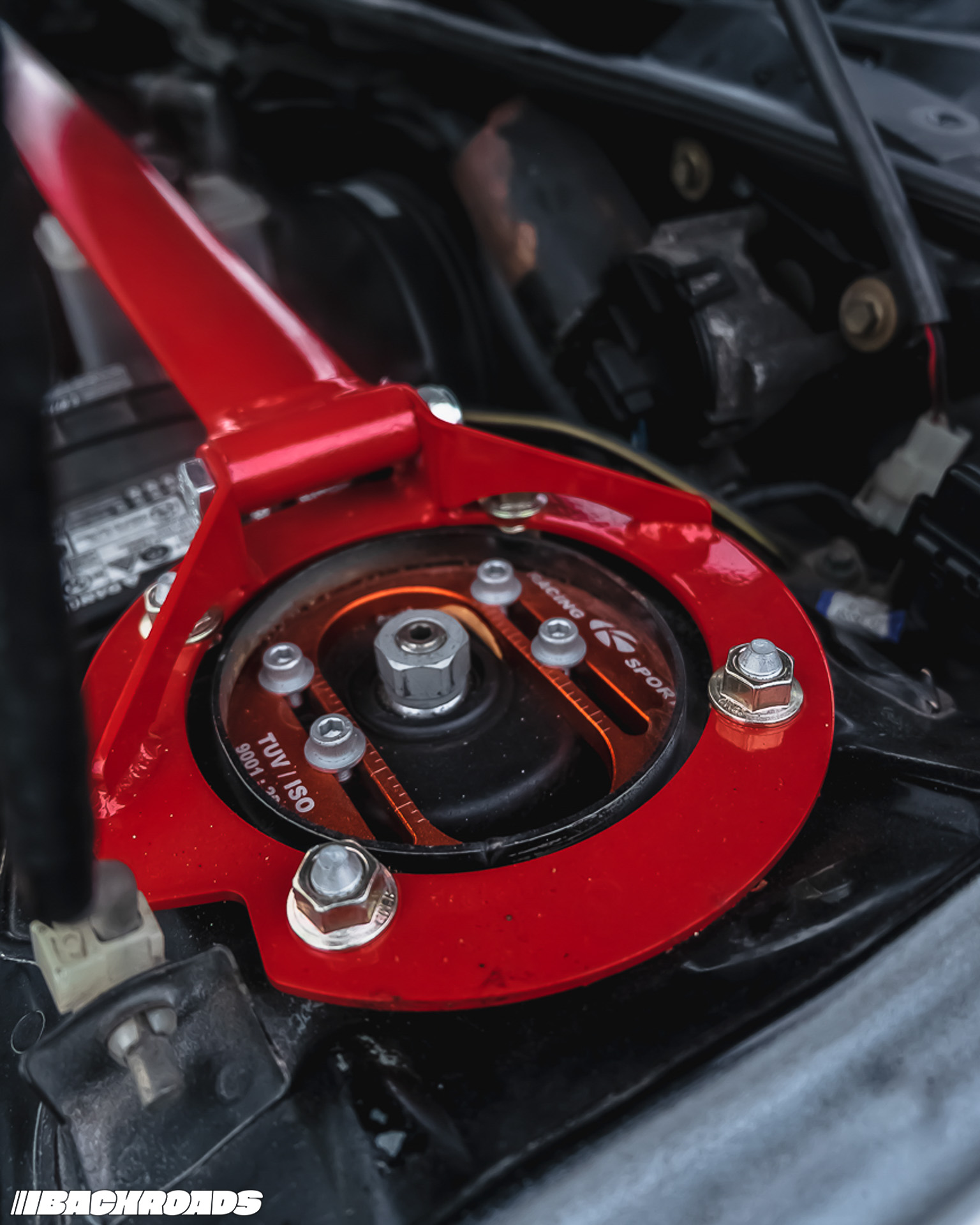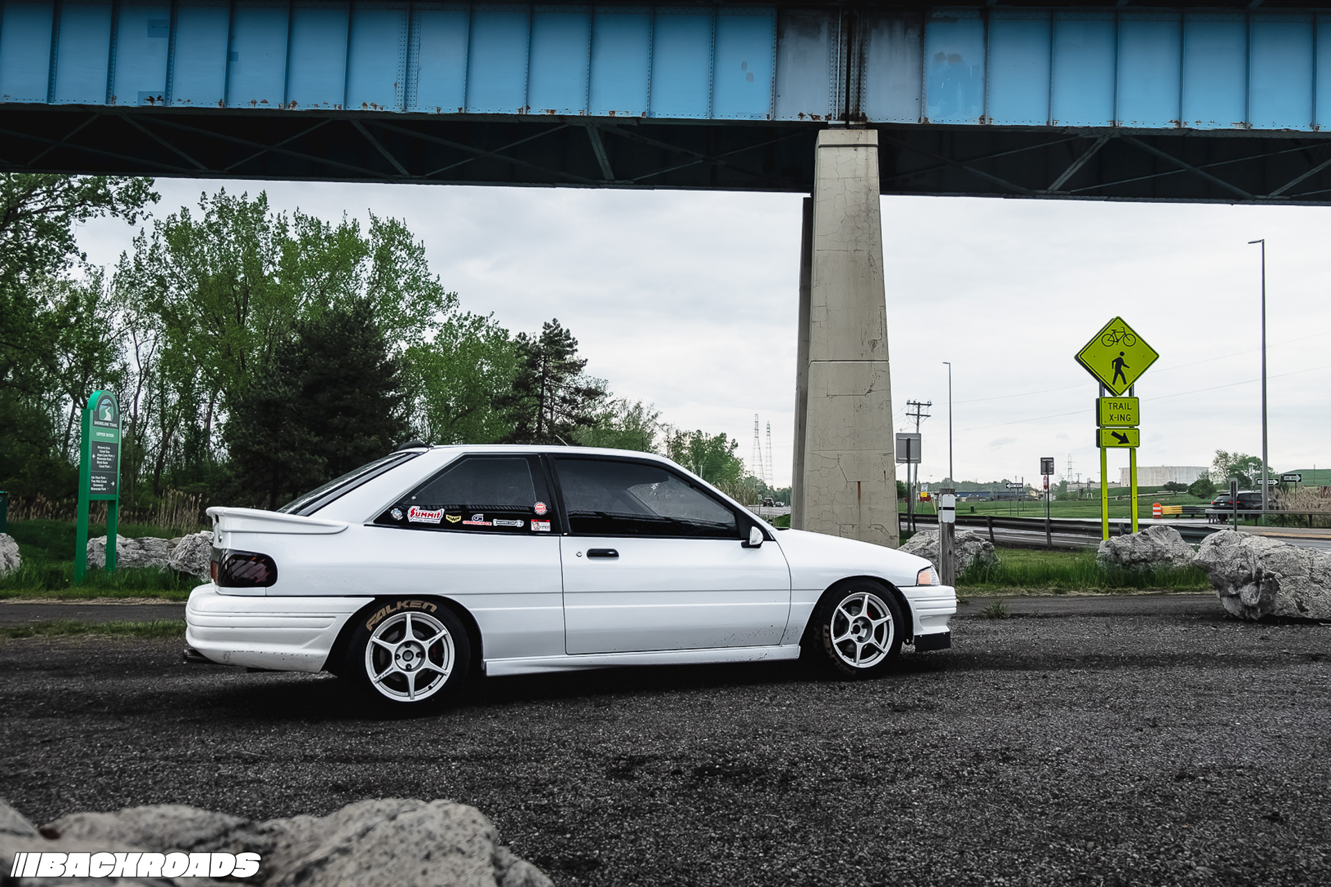 The Escort’s stance is just right. It sits on 15×7-inch Kosei K1 Racing wheels wrapped in Falken Azenis RT615k tires, with Ksport coilovers at all four corners. There’s a host of upgraded underbody components, including Energy Suspension bushings, AWR chromoly trailing arms, Pierce Motorsports RCAs, and a full KAi rear bar setup. A manualized steering rack enhances feel. With Powerstop calipers and pads, Raysbestos front rotors, EBC rear rotors, and Goodridge stainless steel brake lines throughout, stopping power is solid, too.