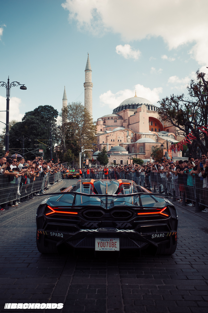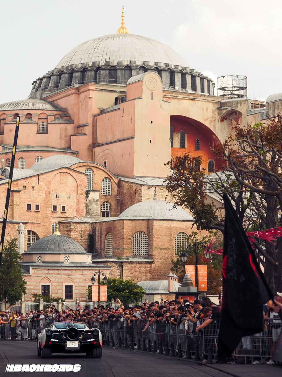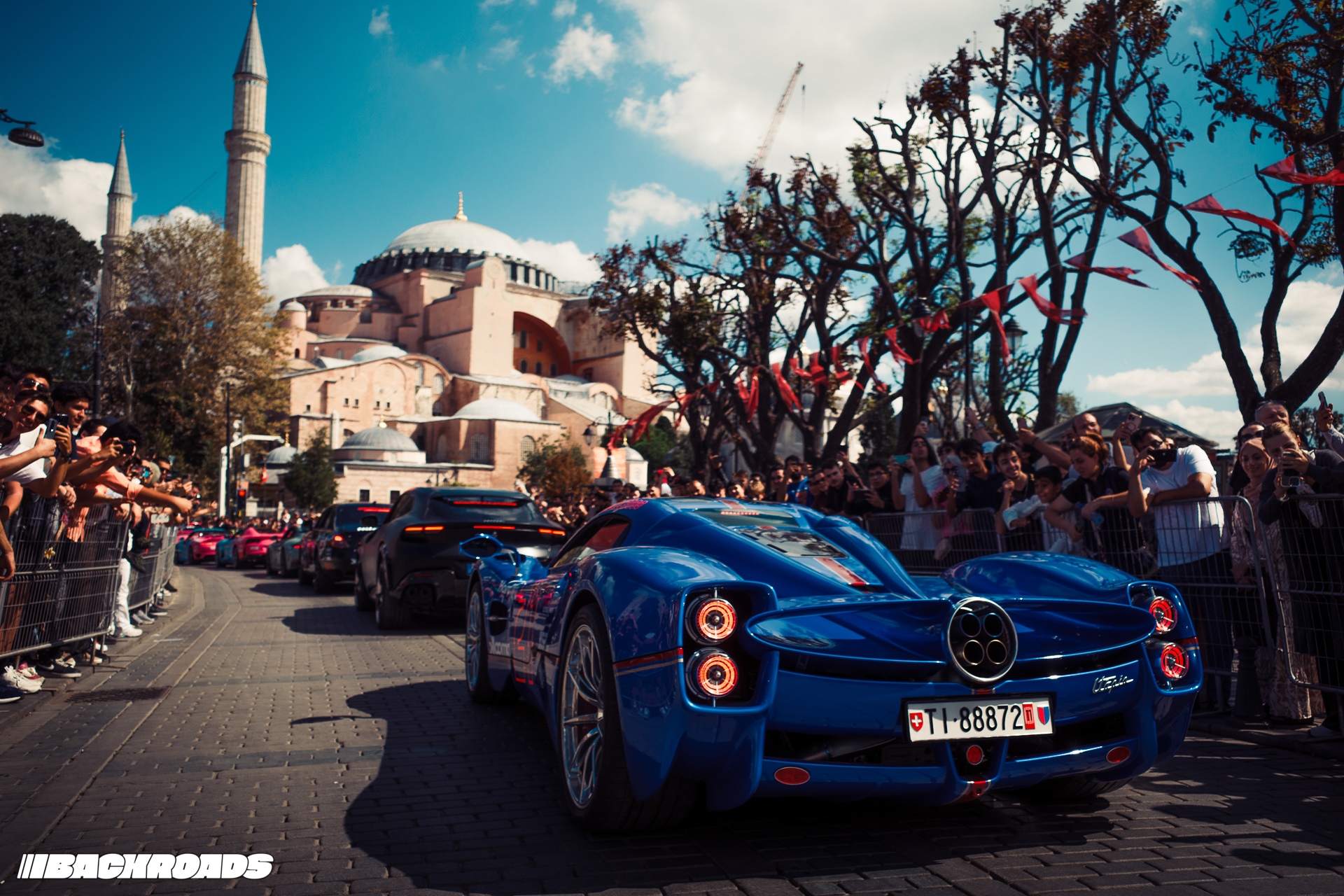 Atmeydanı is formed in a U-shape, and both the chariot racers in the Byzantine times and the drivers of the rally followed the same path to enter and leave the square, passing by the obelisks and the Serpent Column. The contrast between the Pagani Utopias, GMA T.50s, Lamborghini STOs and Porsche 911 GT3 RSs against the mesmerizing city of Istanbul, and the magnificent Hagia Sophia, provided something much more than just a supercar rally coming to a city.