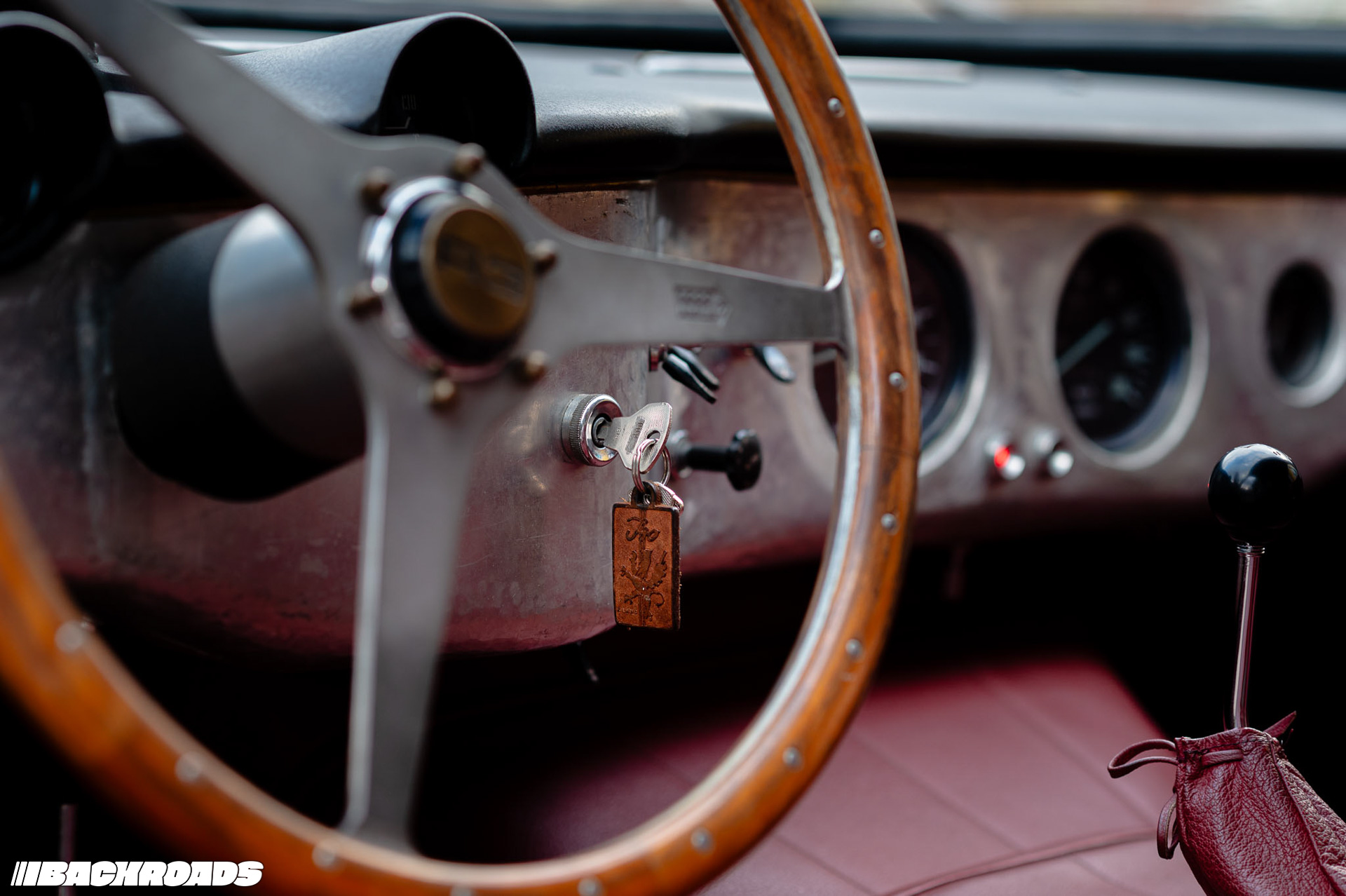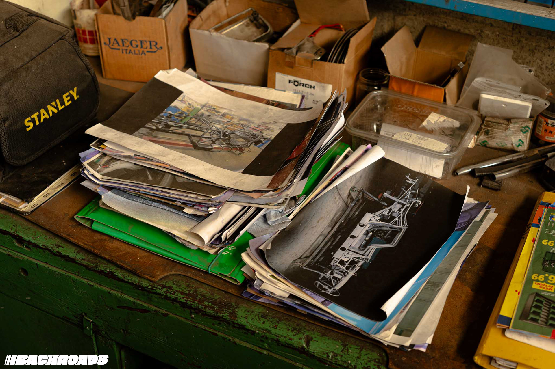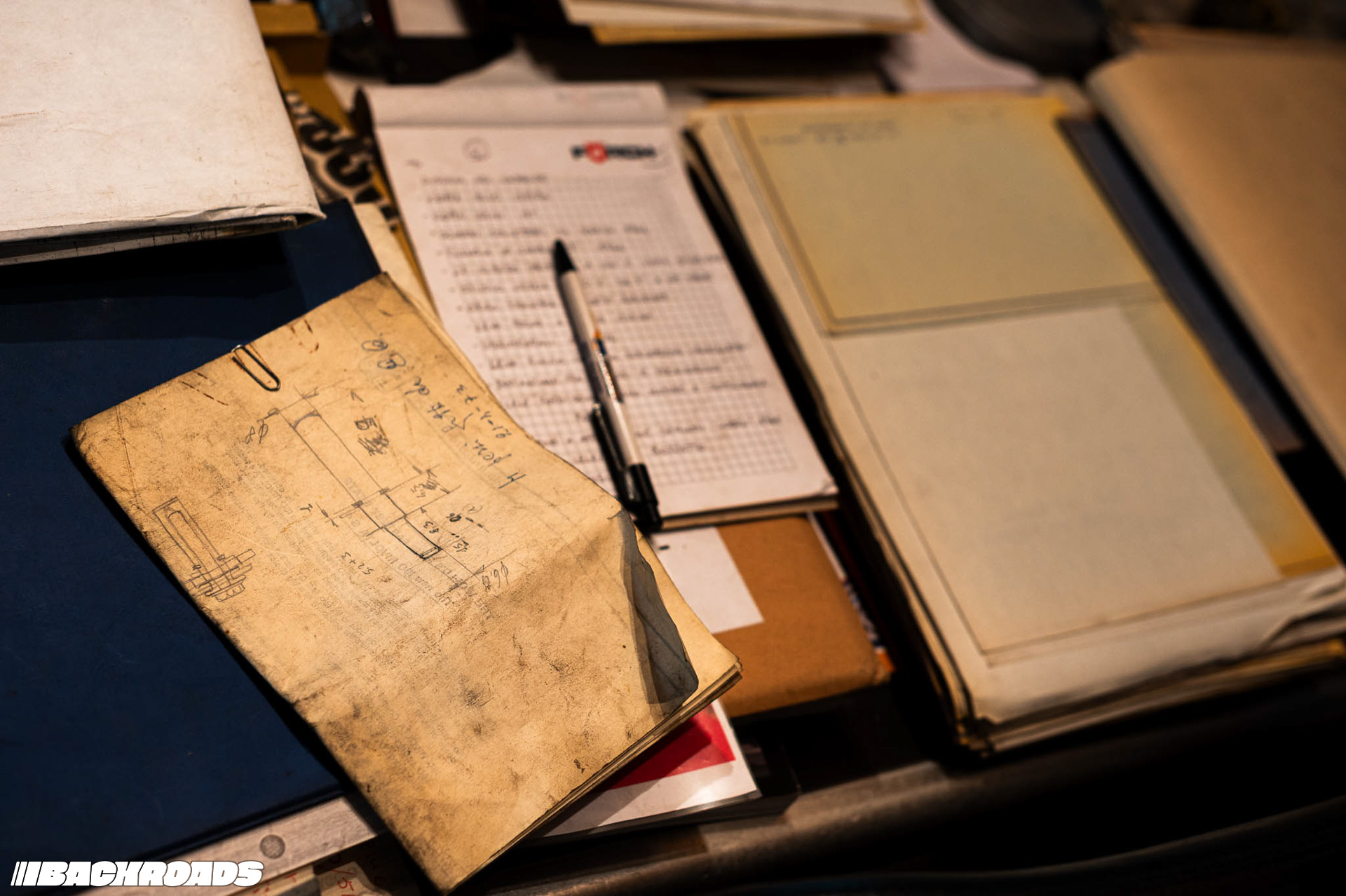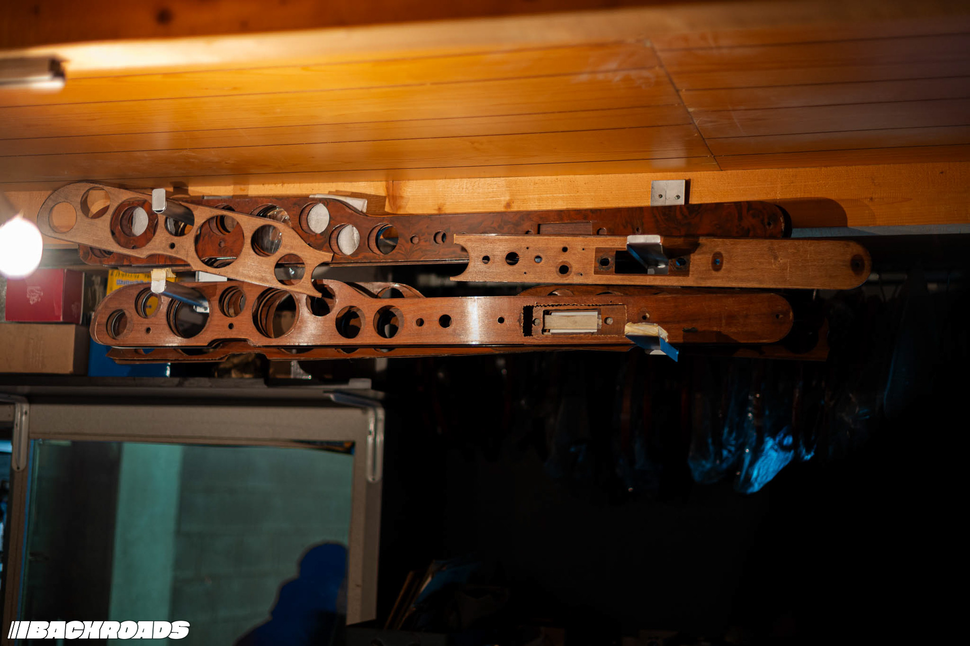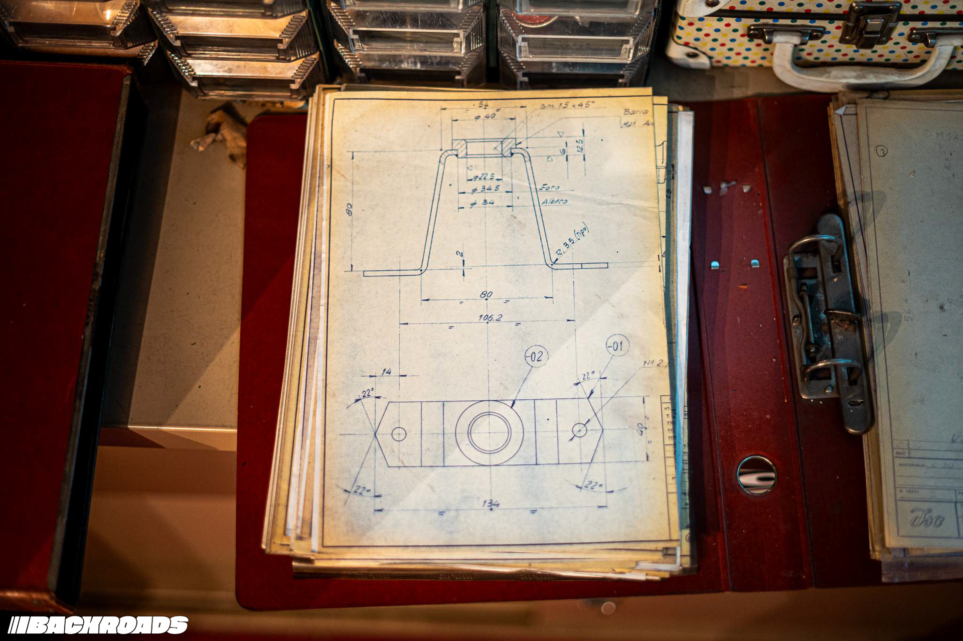Climbing stairs up to a small office, Federico showed me shelves lined with ISO’s original documents. On a central table lay an open technical drawing displaying precise measurements. The office also doubled as storage for wooden trims for gauge clusters, steering wheels, and rolls of fabric.