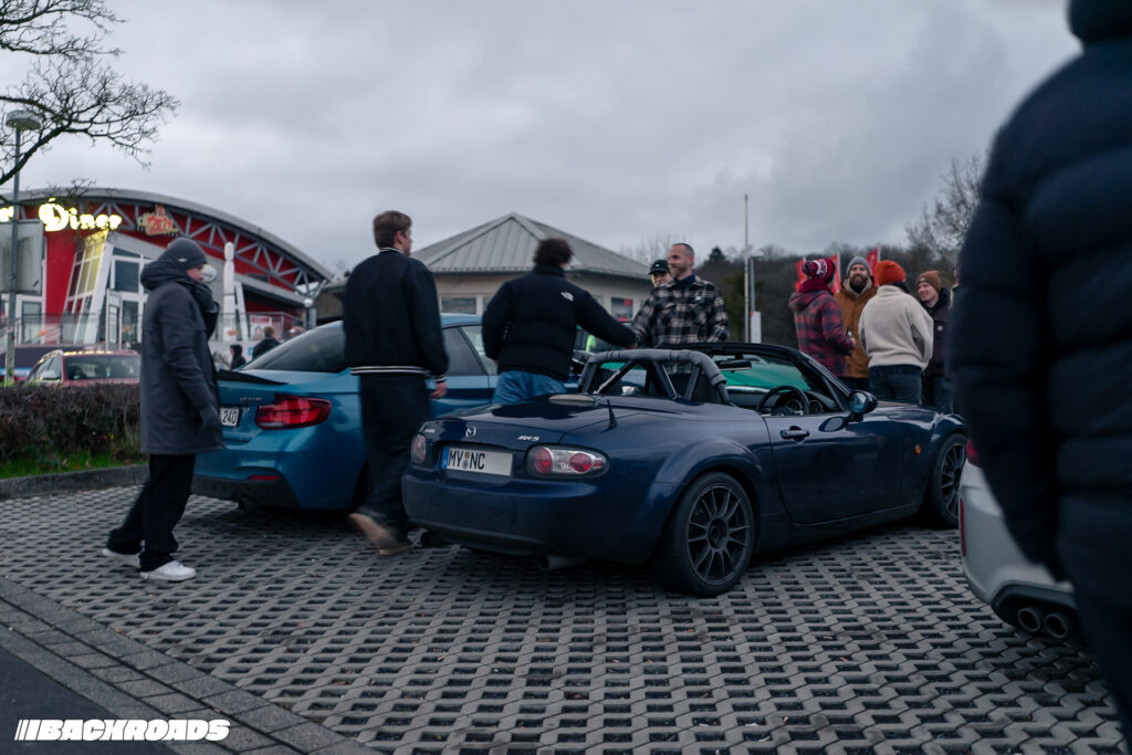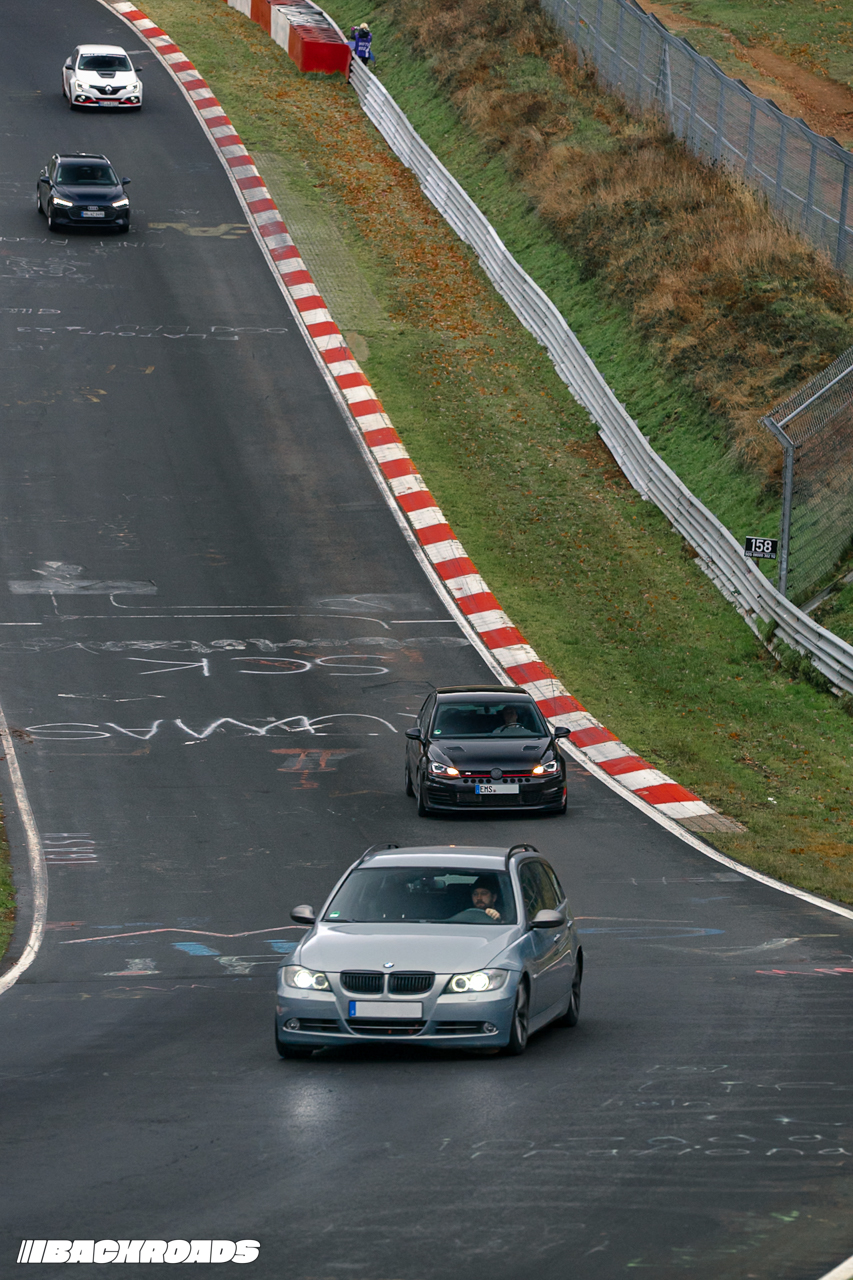 There’s a constant flow of vehicles coming and going, and on this particular morning, I saw everything from the expected Porsche 911 GT3 RSs to a group of modified Mazda MX-5s on a mission to form a train on track. Unlike in summer, when the Nürburgring is heaving, and everybody is driving like they’re on a sub-seven-minute record run, this time of year sees more locals and regular visitors celebrating one last session for the season. There’s definitely a relaxed vibe.