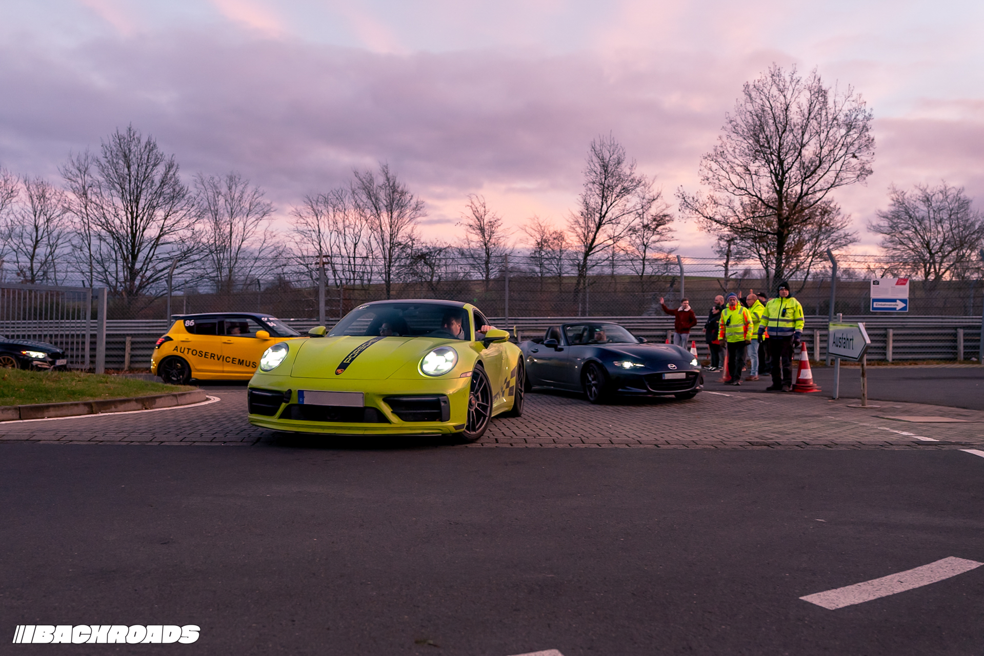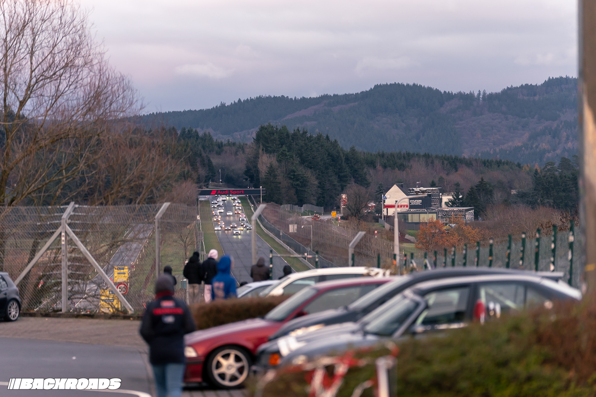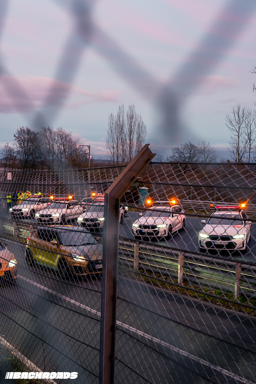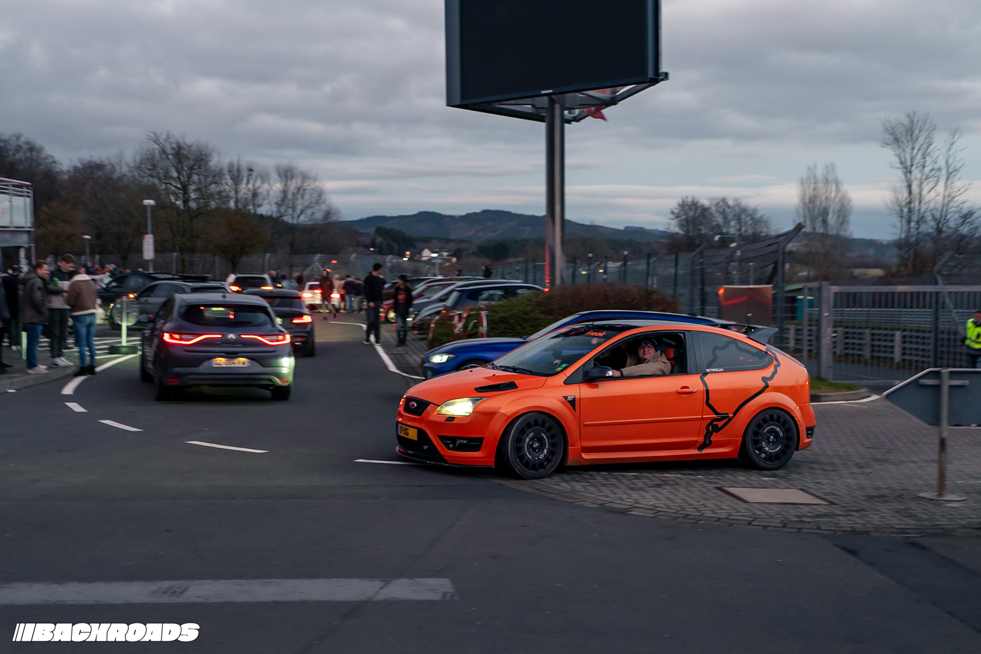 After a brief period of serenity at the entrance, a sea of headlights appeared from the Audi gantry. The first car to arrive back and exit the track was a yellow NA Mazda MX-5. With everyone’s lights flashing and horns honking, the atmosphere was electric. As the final car came off the track – a Mk2 Ford Focus ST – the clouds closed in again. It was rather poetic; a brief spell of sunshine followed by overcast skies, symbolizing the end of another adrenaline-filled year on the world’s most exciting 20.8km stretch of asphalt.