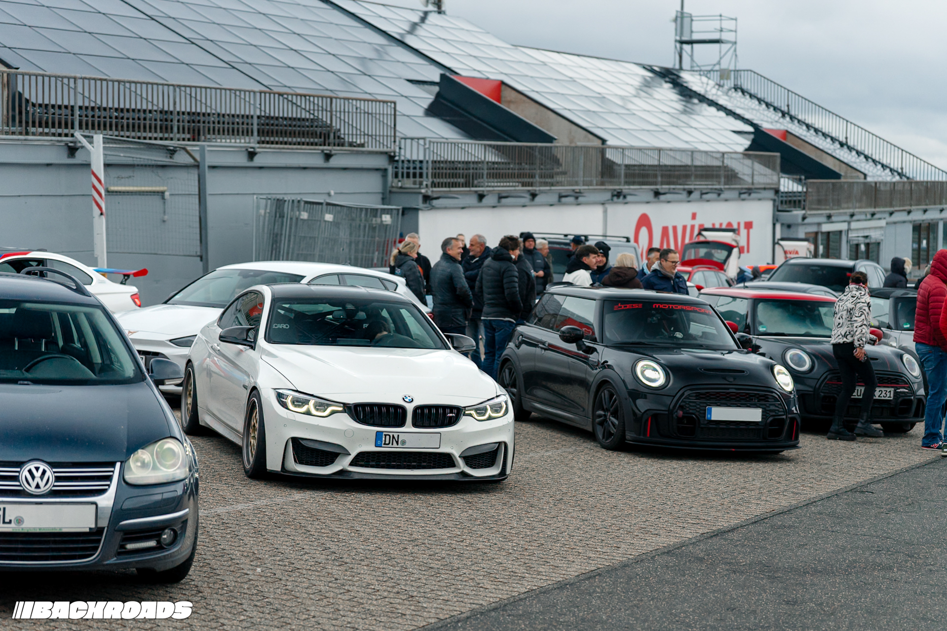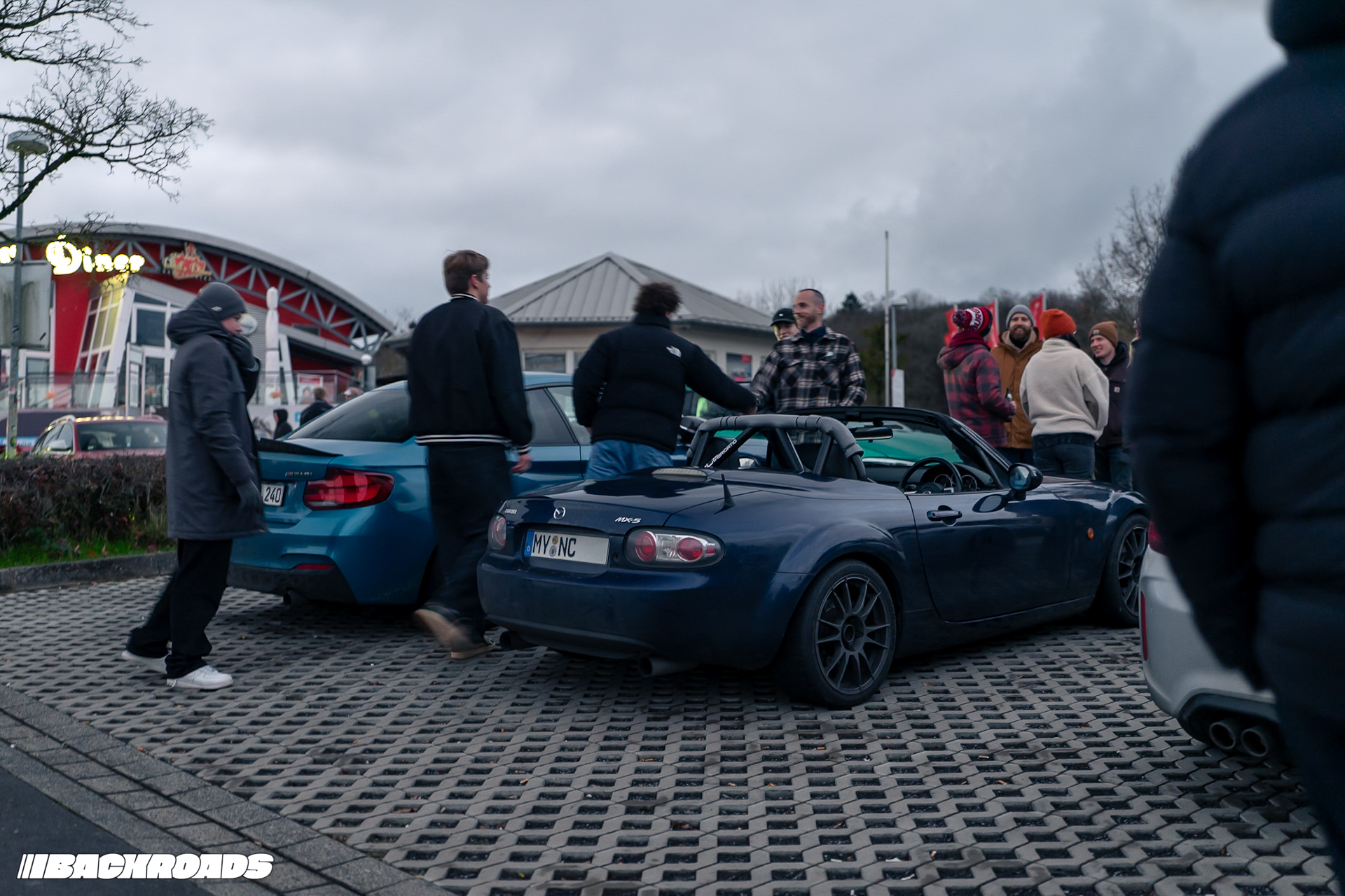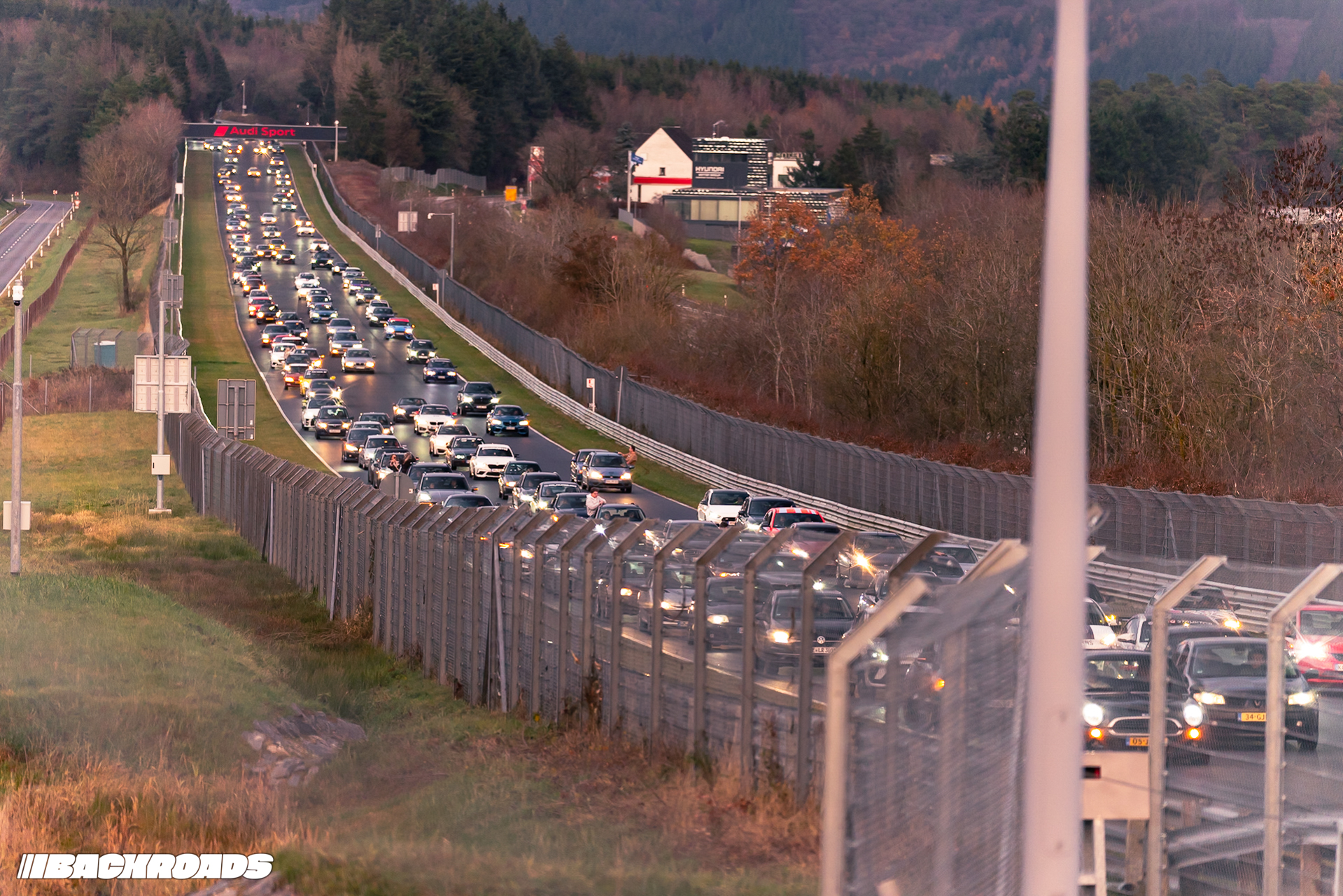 After a brief period of serenity at the entrance, a sea of headlights appeared from the Audi gantry. The first car to arrive back and exit the track was a yellow NA Mazda MX-5. With everyone’s lights flashing and horns honking, the atmosphere was electric. As the final car came off the track – a Mk2 Ford Focus ST – the clouds closed in again. It was rather poetic; a brief spell of sunshine followed by overcast skies, symbolizing the end of another adrenaline-filled year on the world’s most exciting 20.8km stretch of asphalt.