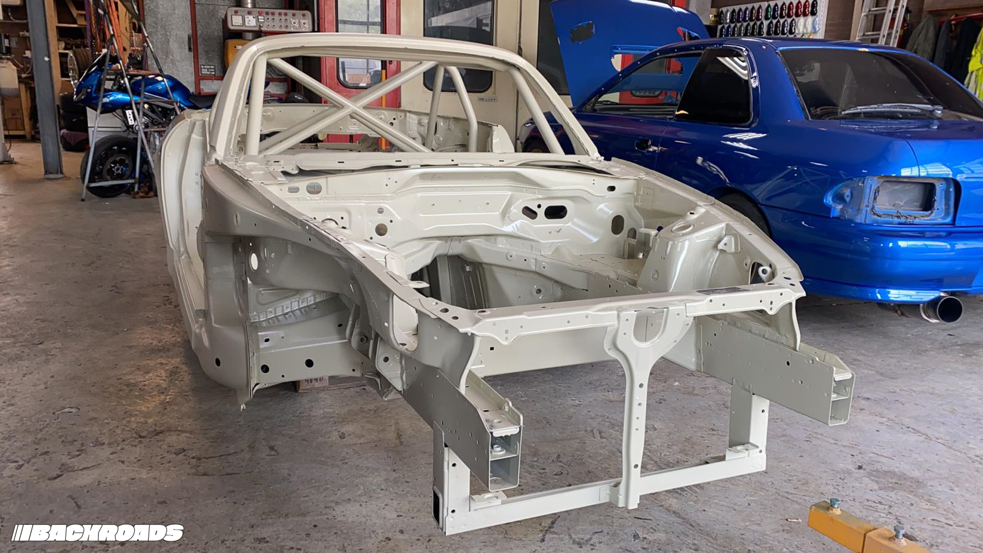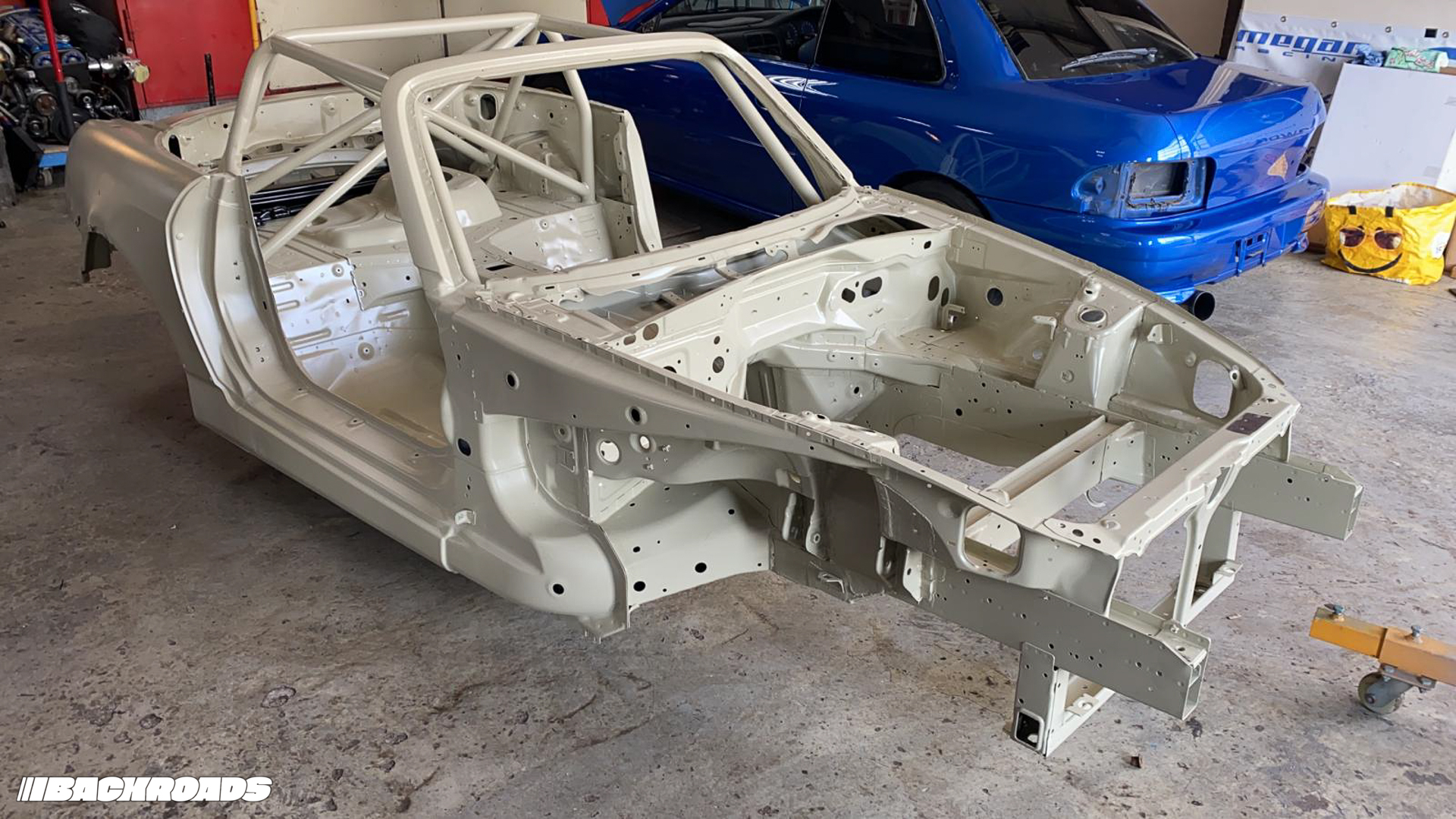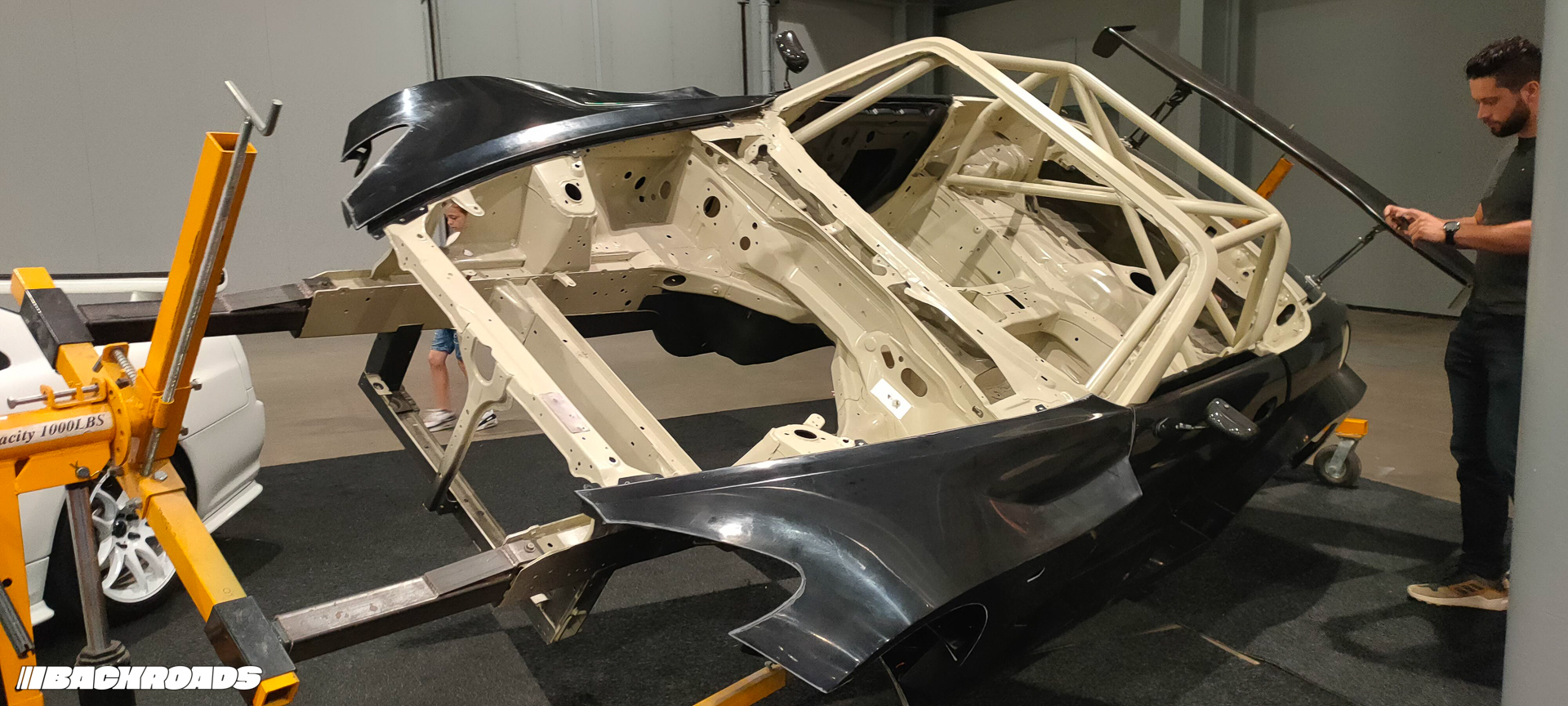 Then it was back to NLA for paint and body work. I had the body panels sourced by ShowoffImports from J’s Racing in Japan; a GT bodykit, a Mooncraft Hardtop from Spoon Sports, a 1800mm GT spoiler from Seibon, GT wing mirrors from APR, lightweight doors from Aeroworks and from Aerodynamics, Mugen Hood – all in carbon fibre – and many other parts including full Hard Race adjustable camber control arms, toe arm, links, bump steer kit, extended ball joints and struts, engine, differential and gearbox mounts.