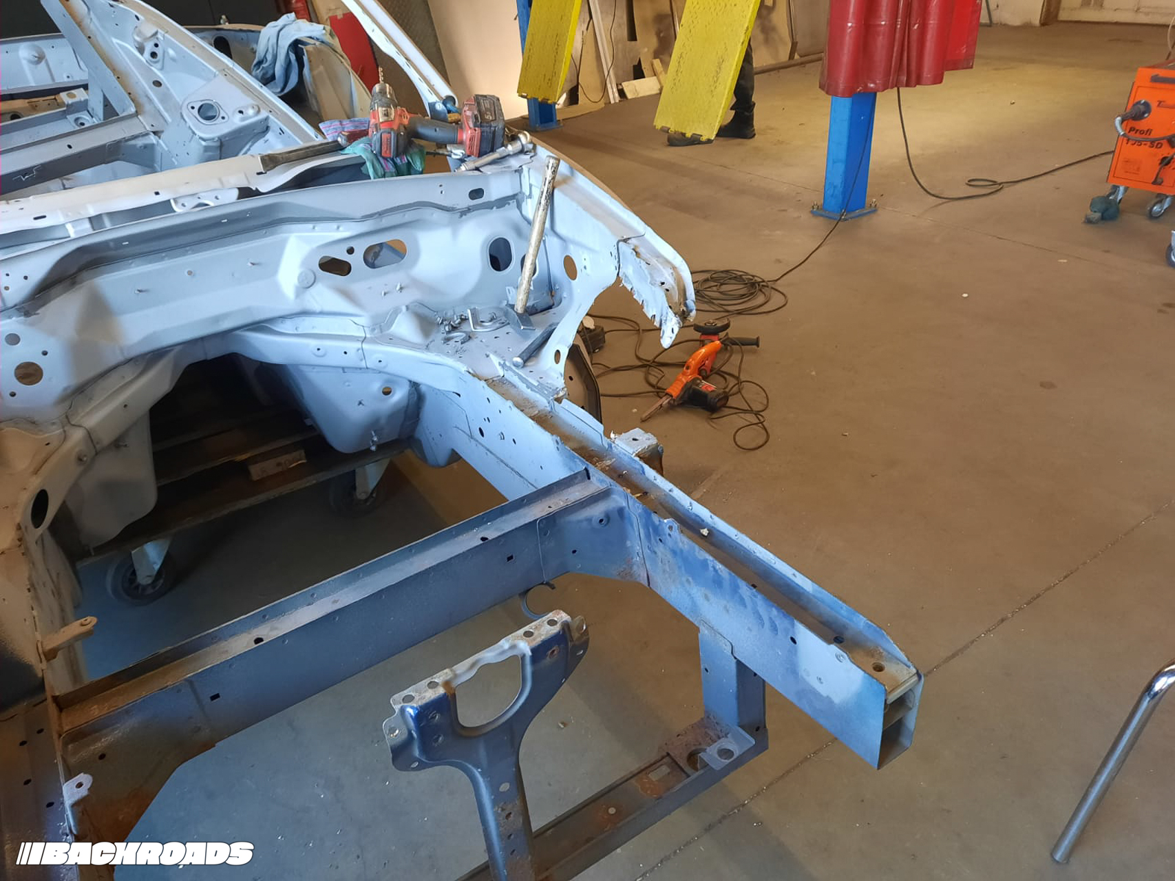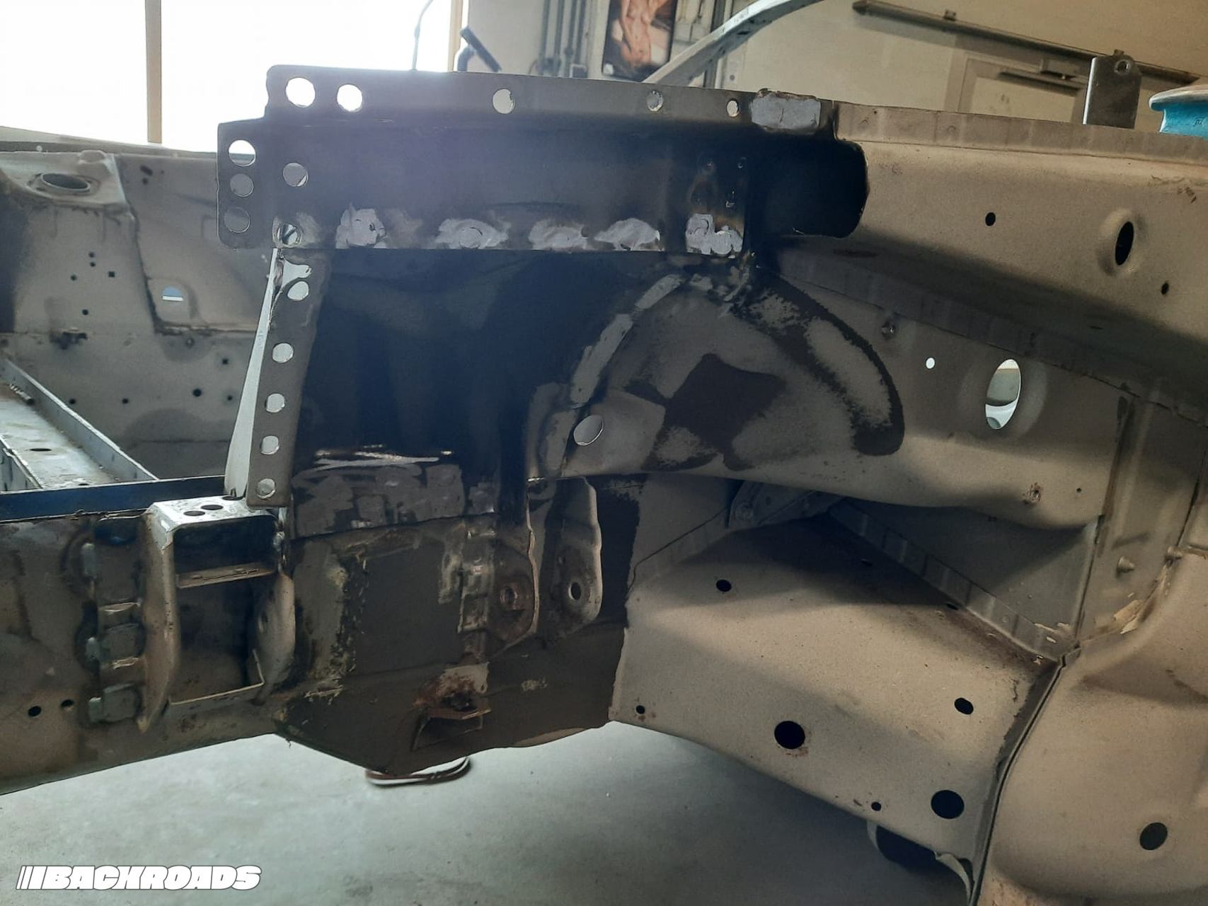 They helped to completely strip down the car to bare chassis, sending it off to have the front end damage repaired by Luc at Custom Car Welding, who rebuilt the entire left front end from a donor shell, cutting, drilling out and welding each piece in one at a time until it looked OEM.