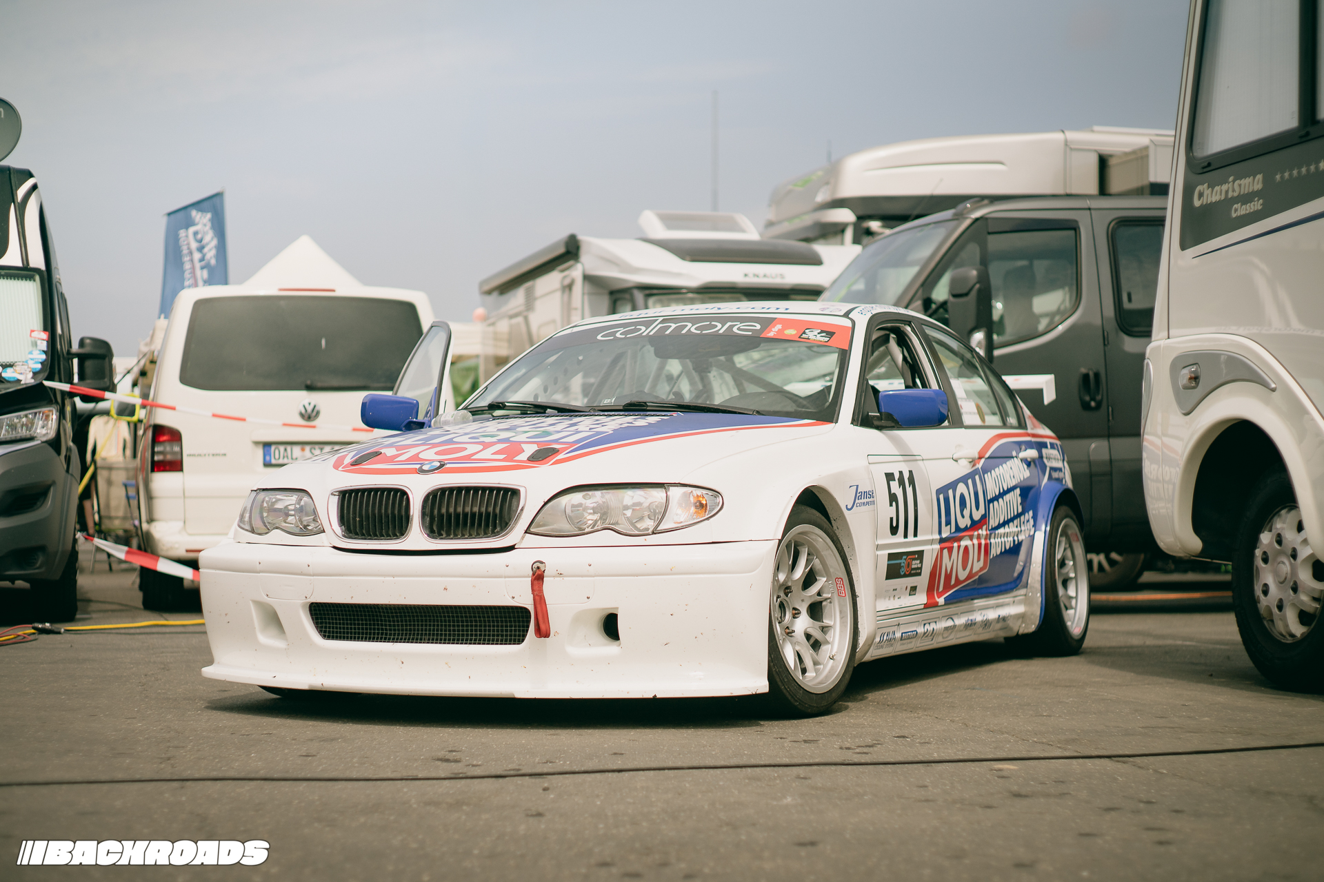On Friday the 12th, most of the teams and privateers turned up at the track and set up their pit areas. Some teams had paddock tents, some had buses and some showed up in enormous motorhomes. A couple of the privateers even drove their own race cars to the event with nothing but a tent in the boot. Luckily, the Nürburgring provides plenty of camping area on its surrounding green hills.