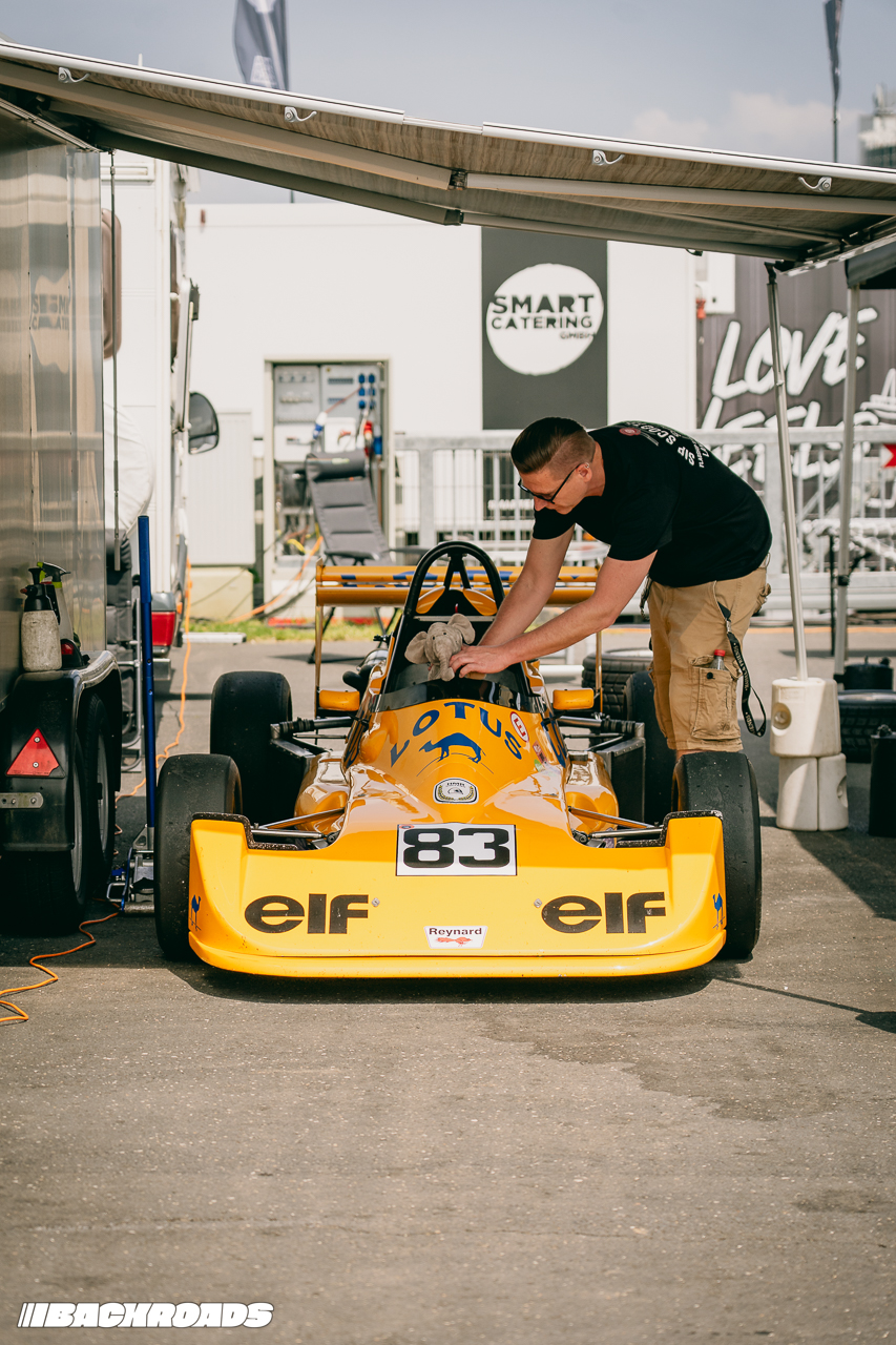 Saturday was by far the busiest day. The skies were overcast yet the temperatures were high, with very low winds. This stagnant heat created long queues at the beer stands and while the lively spectators were settling in the old seating areas of the racetrack, the pit crews were hustling to get the cars ready.