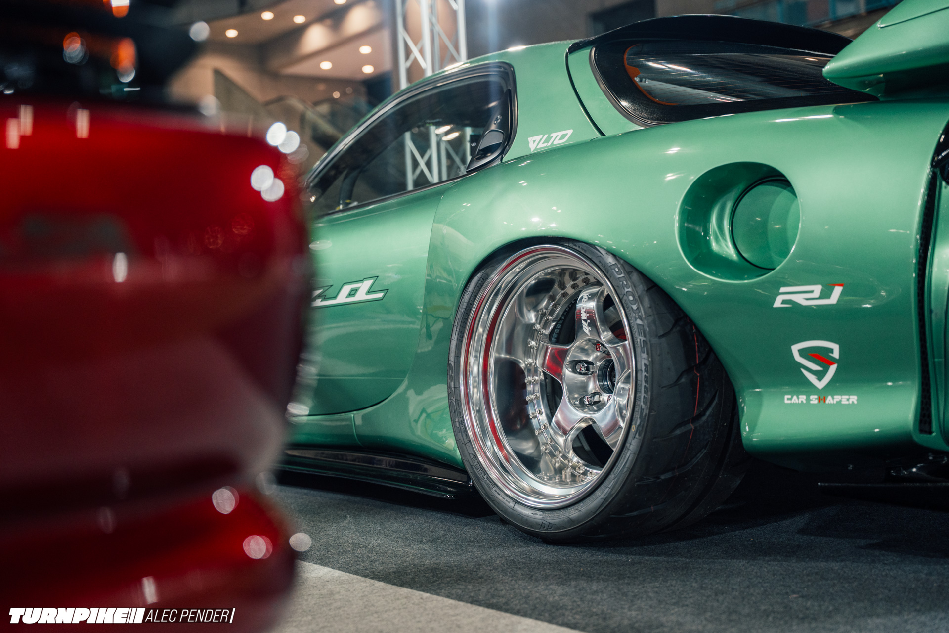 A couple of meters away from the FC was this this FDRX-7. I remember last year when Khyzyl Saleem (also known as The Kyza) was over at TAS, discussing with the guys from Racing Paddock Miyoshi about doing a collaboration for next year. Well what do you know, they made it happen! I was able to see the car arrive on setup day and, I had the chance to see it on the first day of TAS. It’s unmistakably a Kyza creation.