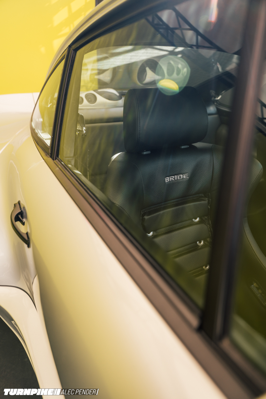 The car sits on mis-matched and staggered Work Meisters shod in Yokohama Advan rubber, just to add to the JDM feel.