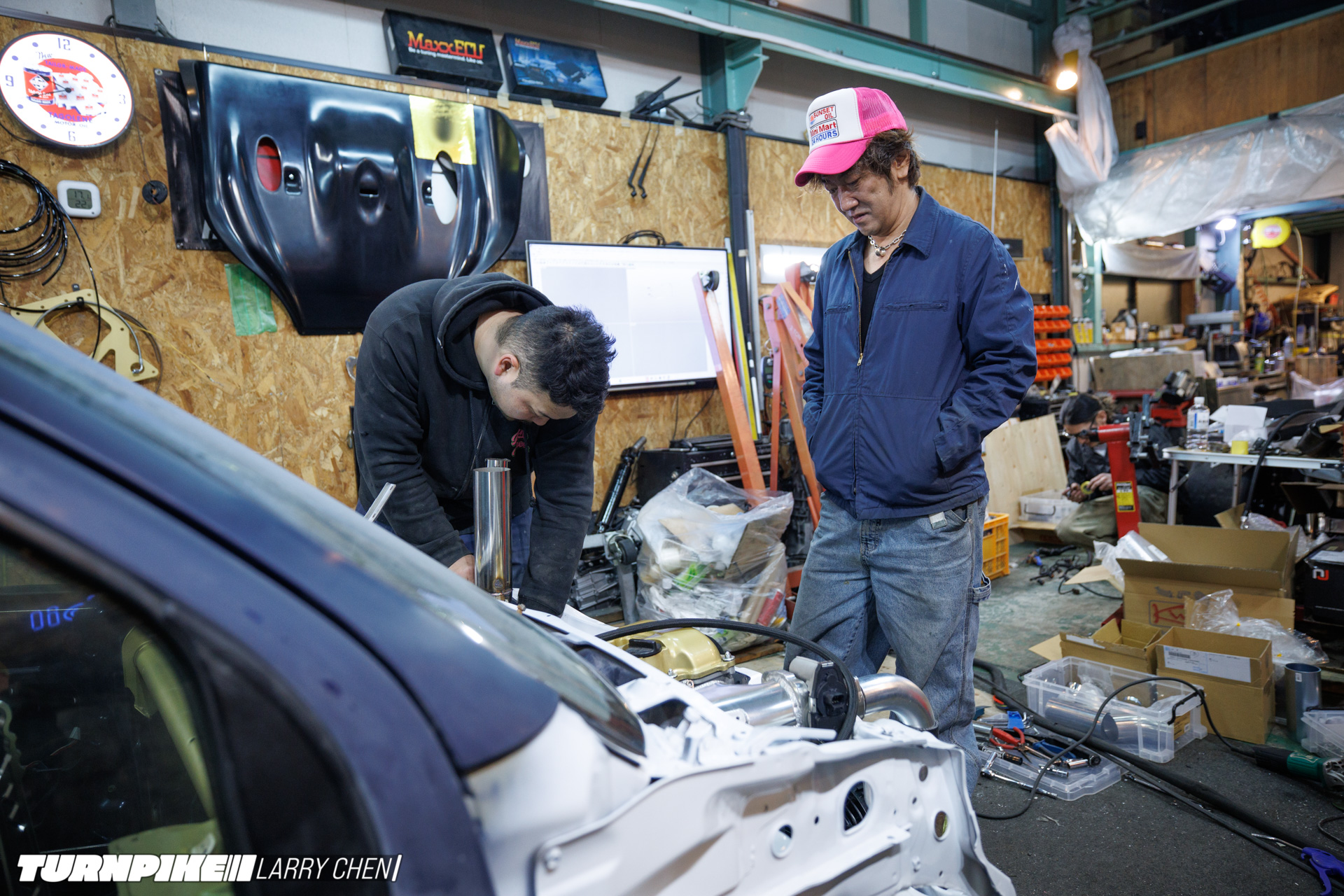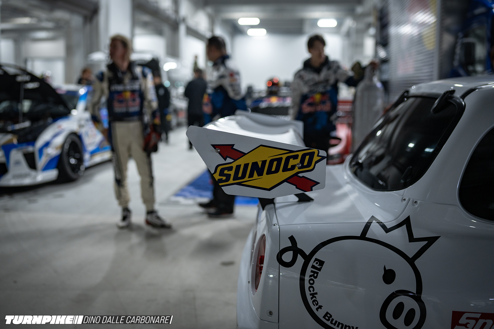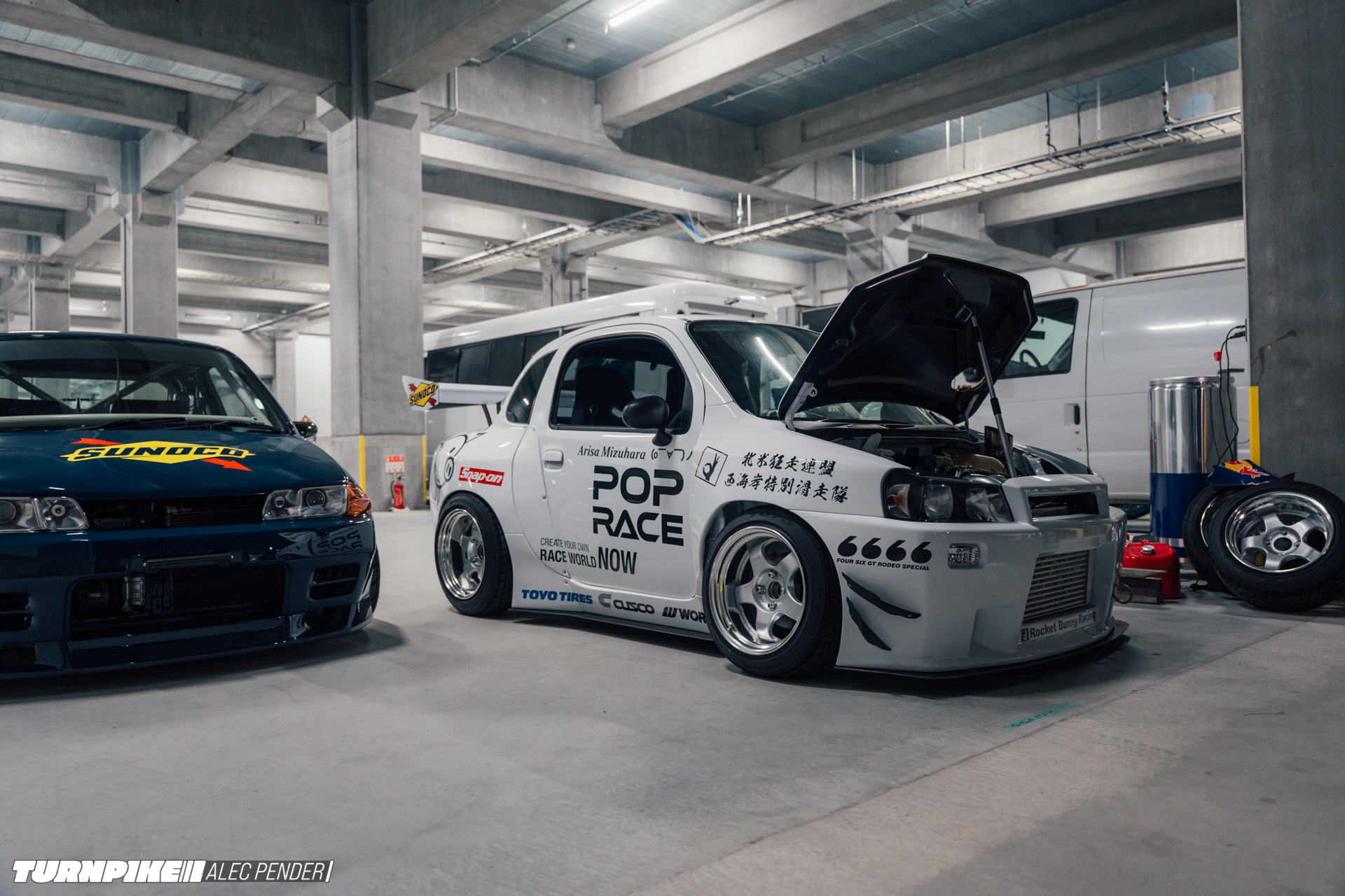 I laid eyes on the completed car at Tokyo Drift’s set-up day, where Miura and his team were shaking down the car with driver Arisa Mizuhara on the indoor track that Red Bull created inside a massive logistics facility.