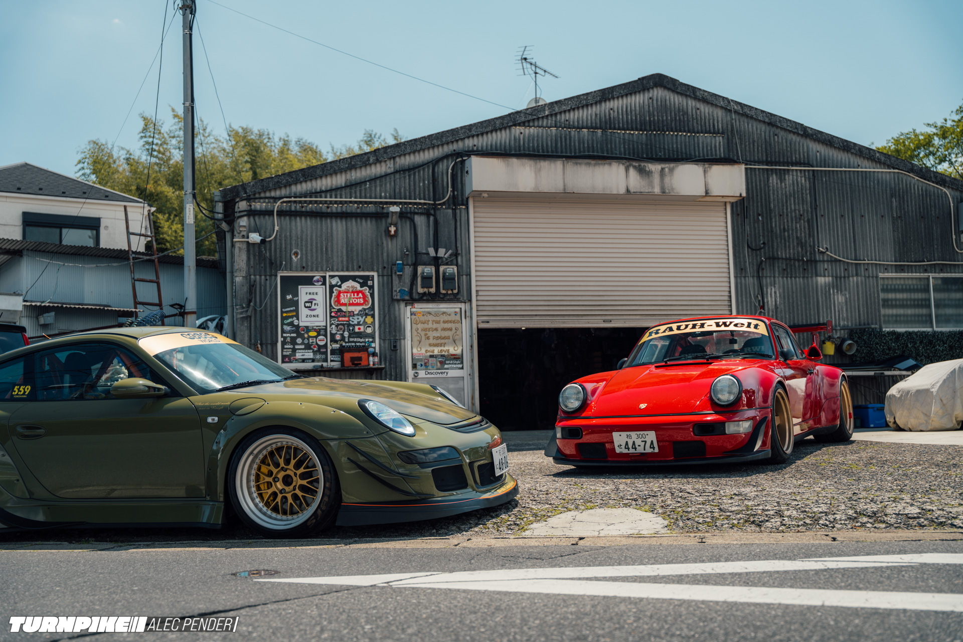 Sitting as a centrepiece is Shinji’s 964 RWB. Built by Nakai-san in 2007 and purchased by Shinji in 2009, this is not just any RWB. This is the only 964 Carrera RS ever built by RWB. This isn’t Shinji’s first RWB either, starting off with a white 964 Carrera 2.