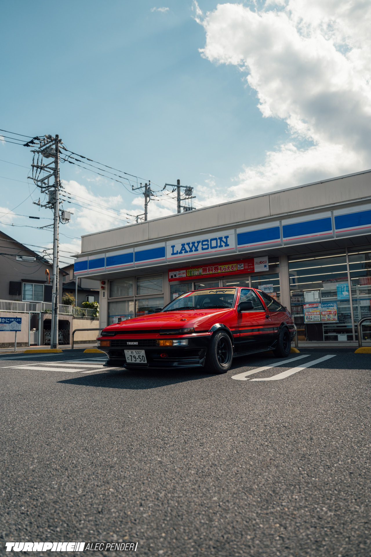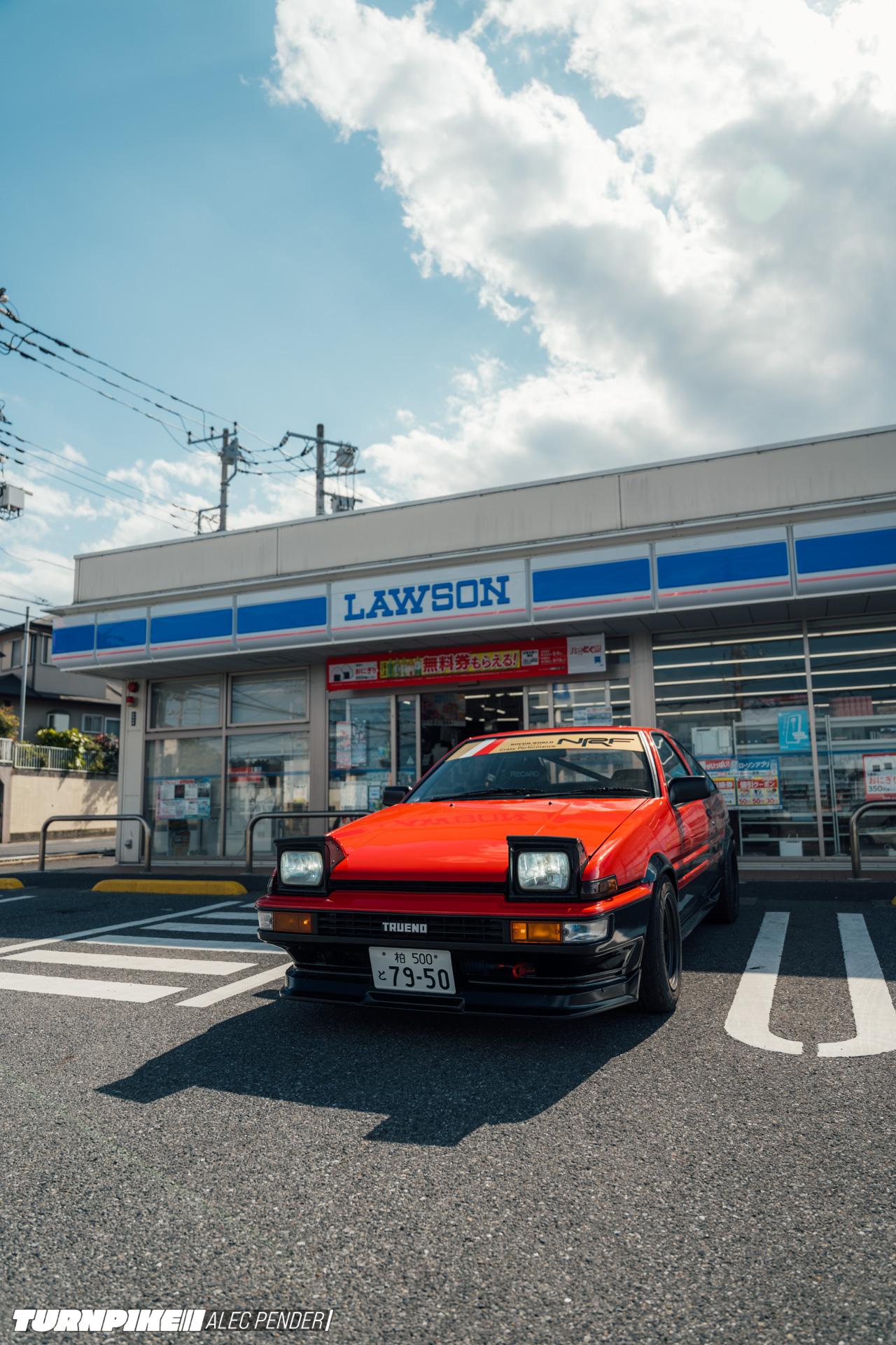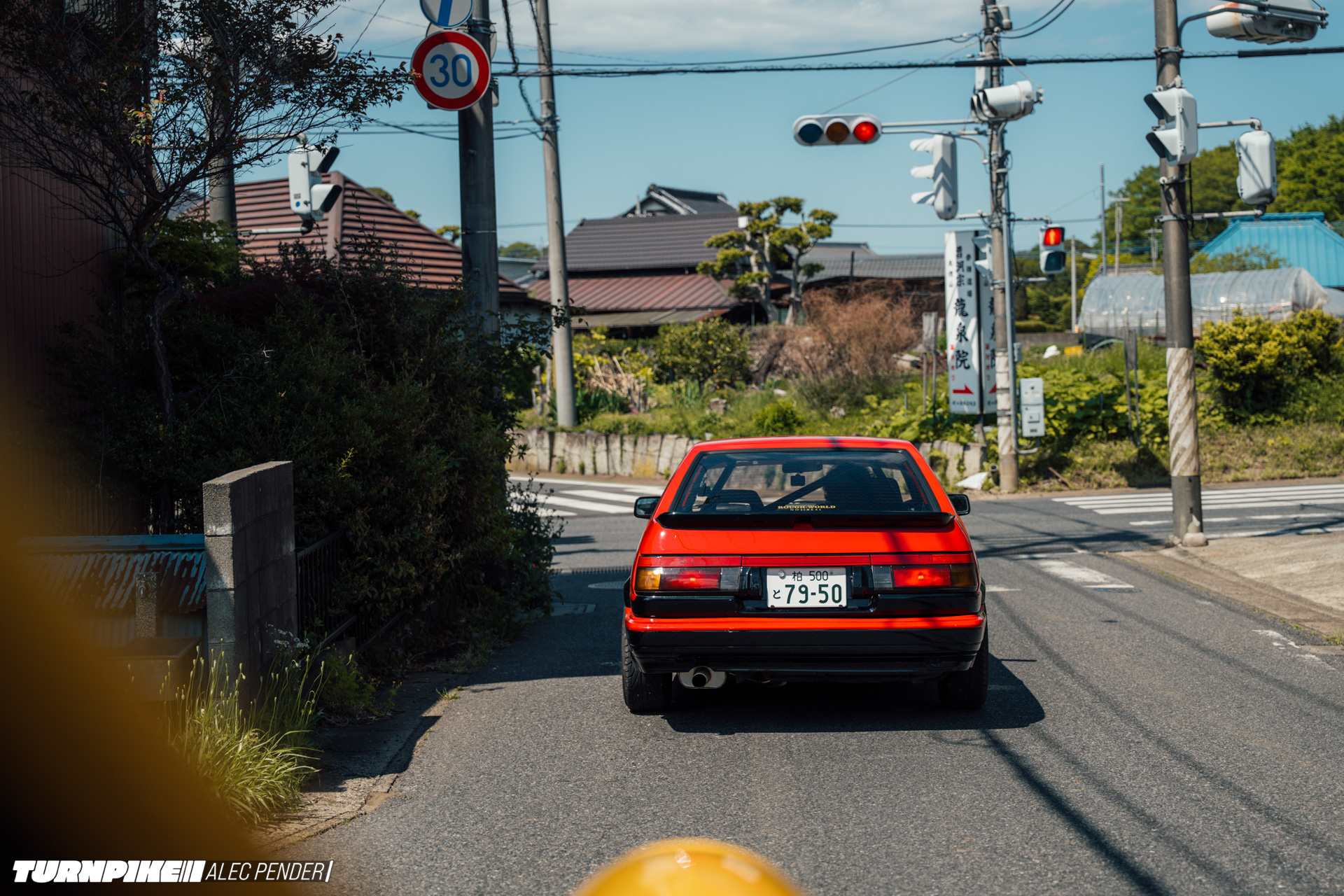 Beside the RS sits Shinji’s red-over-black ‘blood panda’ Toyota AE86 Trueno. Housing a 20-valve Blacktop, the car was painted to match his original AE86. It may be sedate compared to Shinji’s RS, and it’s a much more usable weekend car, but still with all the bits necessary for the occasional circuit drift day.
