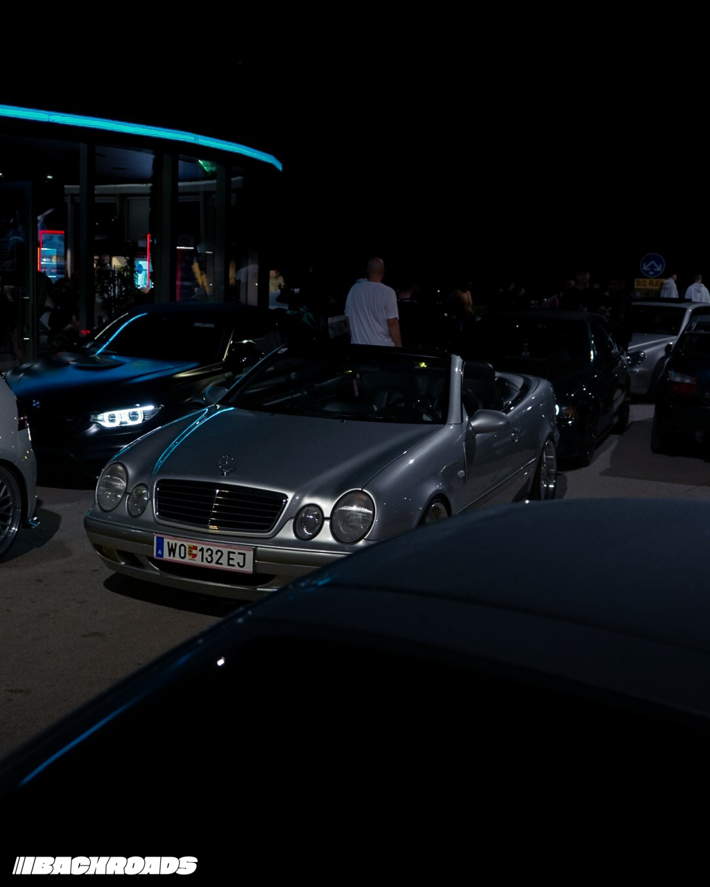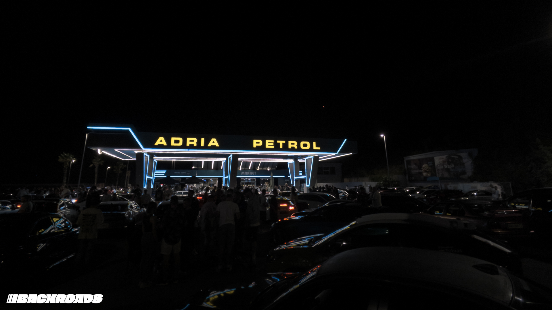 But as the sun begins to set, the vibe changes completely. The meet relocates to a gas station about half an hour away, creating a 2Fast 2Furious-like scene. The neon glow of the gas station reflects off hundreds of cars; thousands of people fill the area, and everyone – not only the officially selected cars – gets a chance to display their pride and joy, sharing their story.