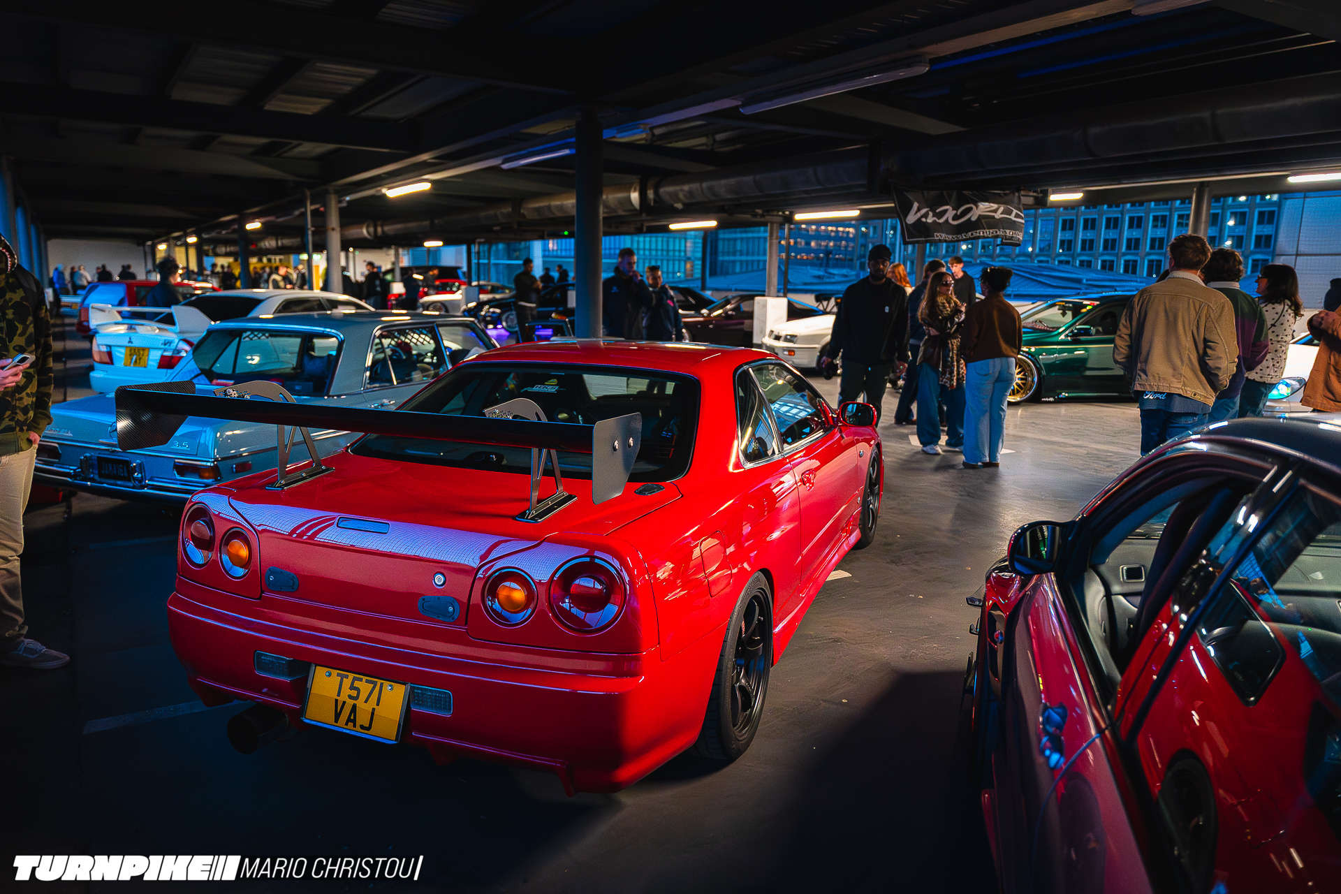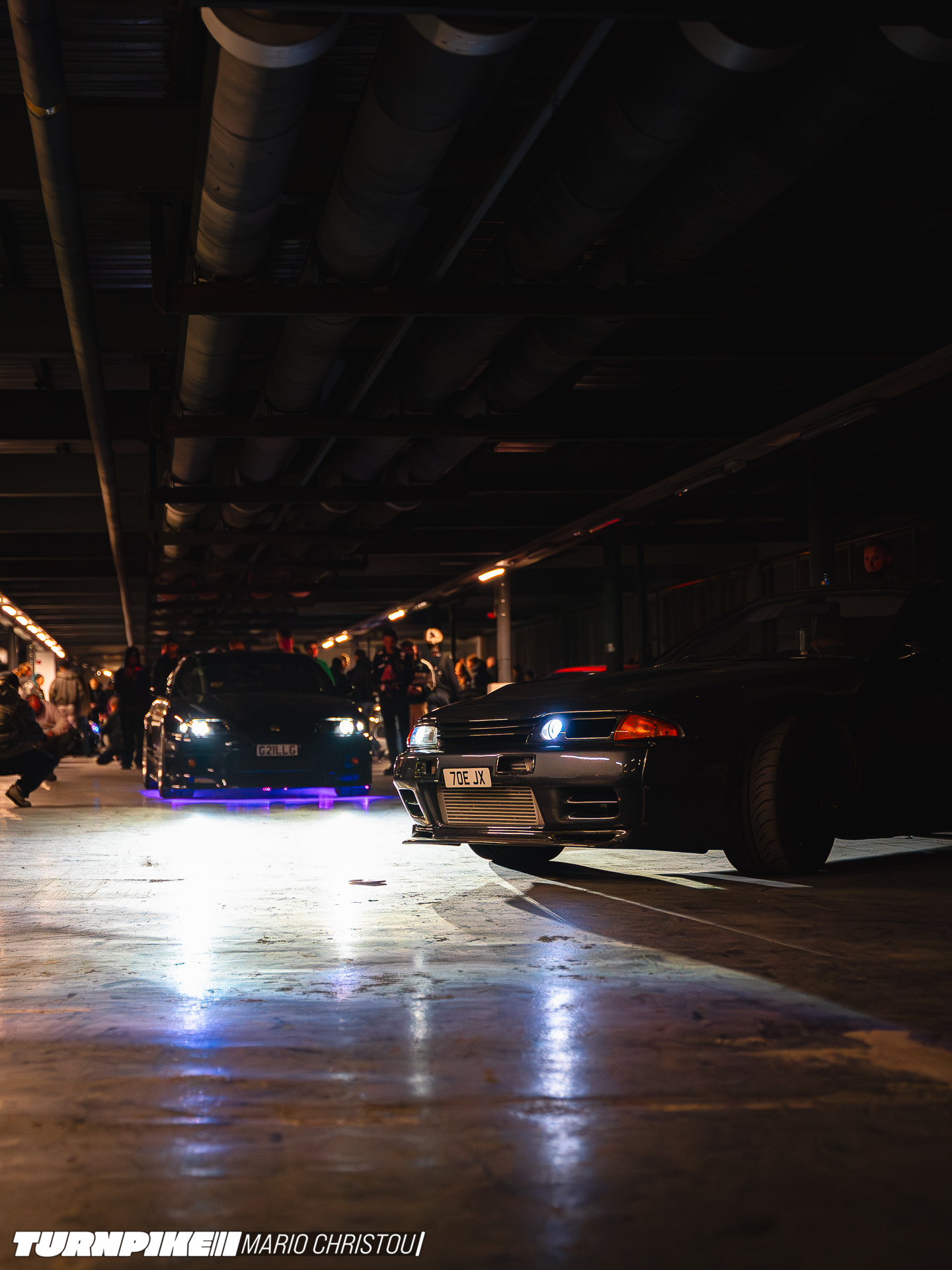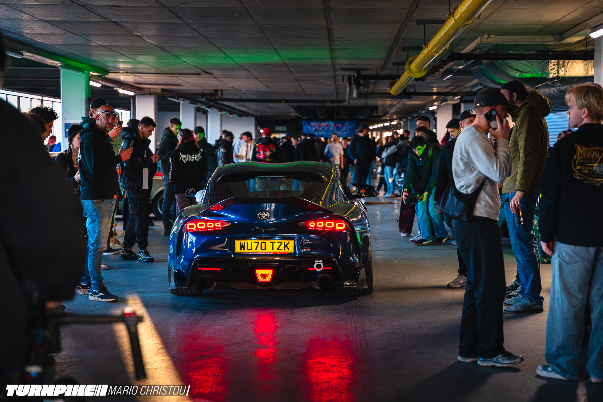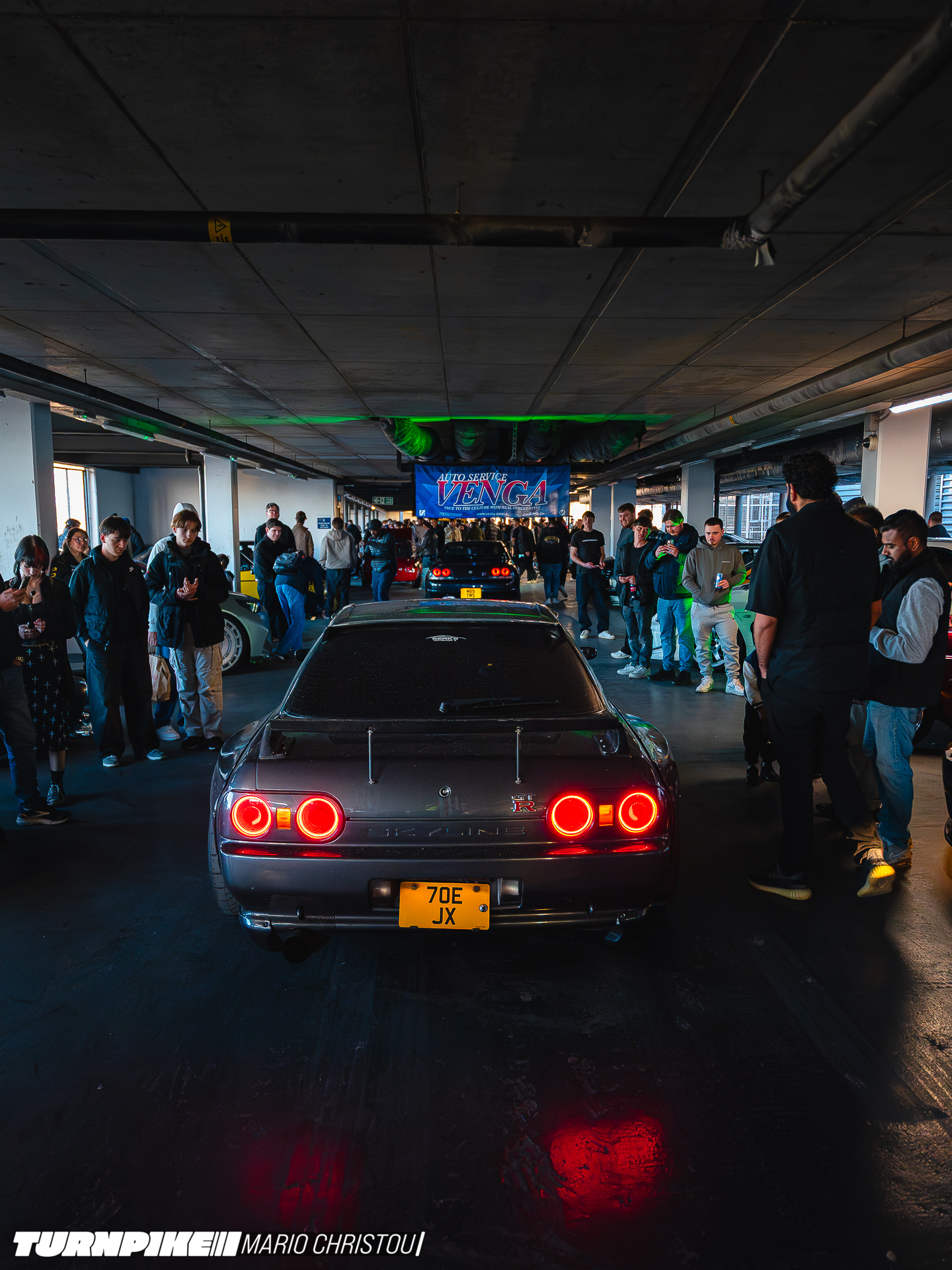 As the sun fell and the crowds grew both inside and outside the venue, the atmosphere shifted into something almost… alive. The sound of turbochargers and tuned straight-six engines echoed through the concrete structure, while attendees pulled out camera flashes. It felt like a scene from our favourite childhood movies, especially with the DJ spinning tracks on the corner of the sixth floor.