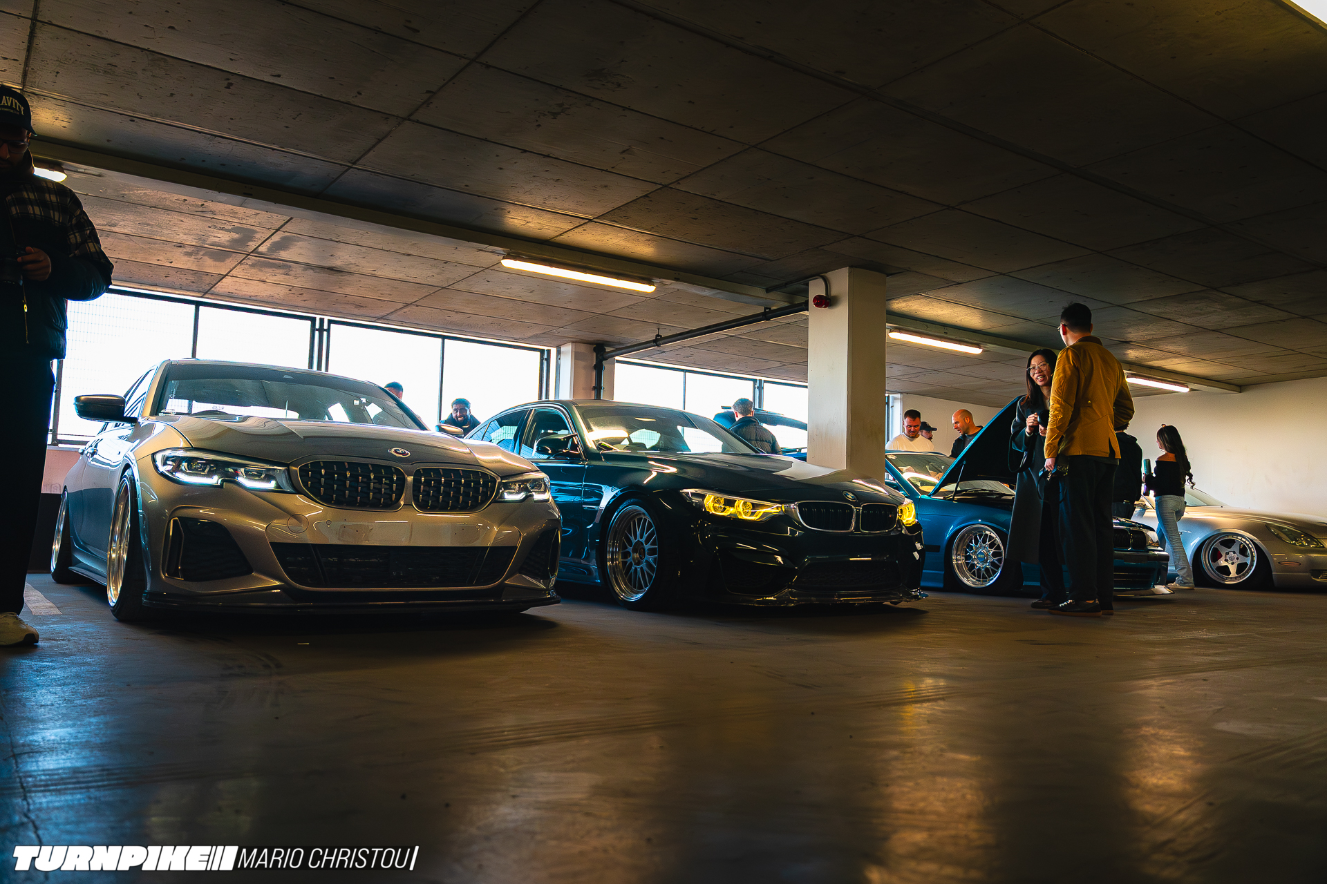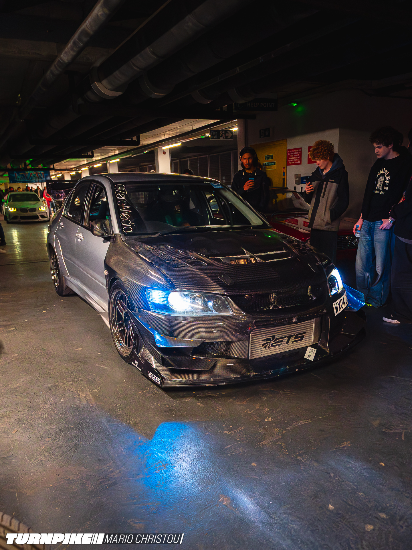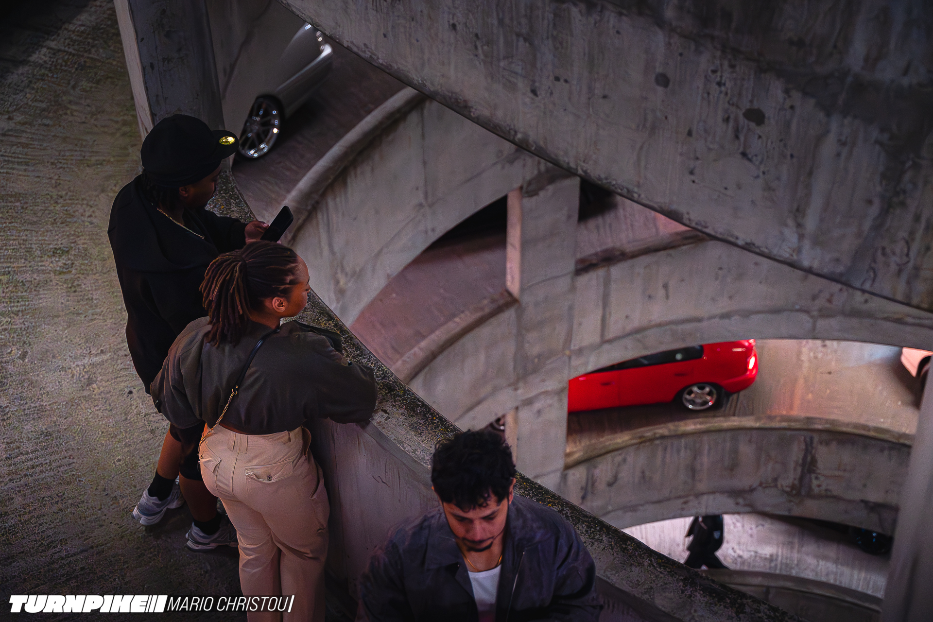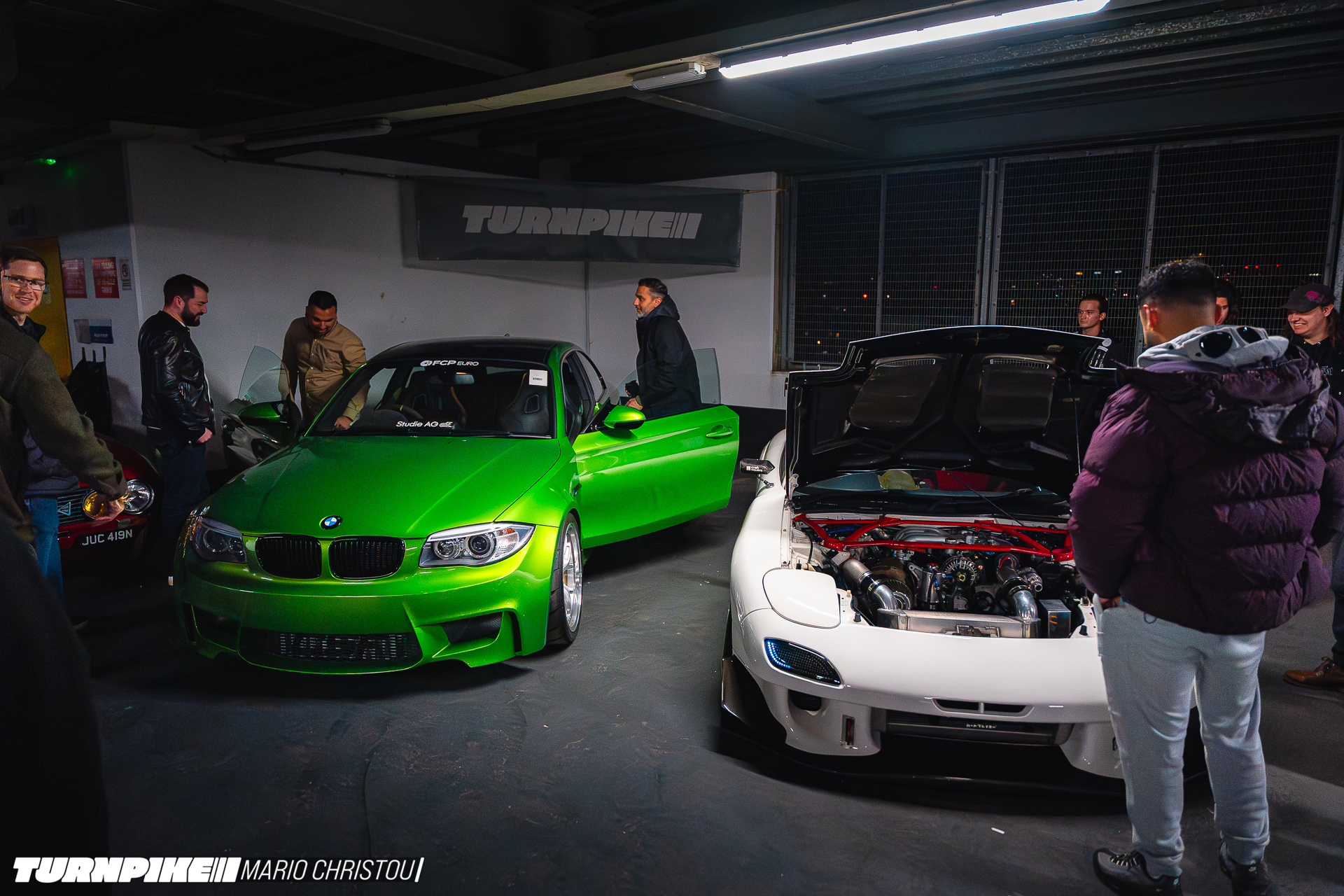 As the sun fell and the crowds grew both inside and outside the venue, the atmosphere shifted into something almost… alive. The sound of turbochargers and tuned straight-six engines echoed through the concrete structure, while attendees pulled out camera flashes. It felt like a scene from our favourite childhood movies, especially with the DJ spinning tracks on the corner of the sixth floor.