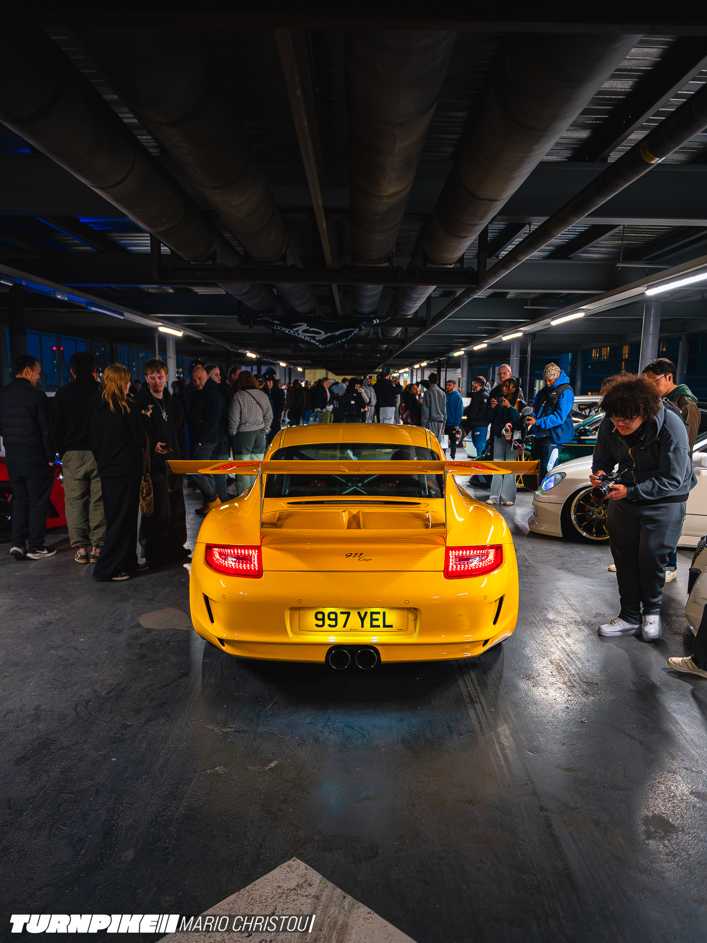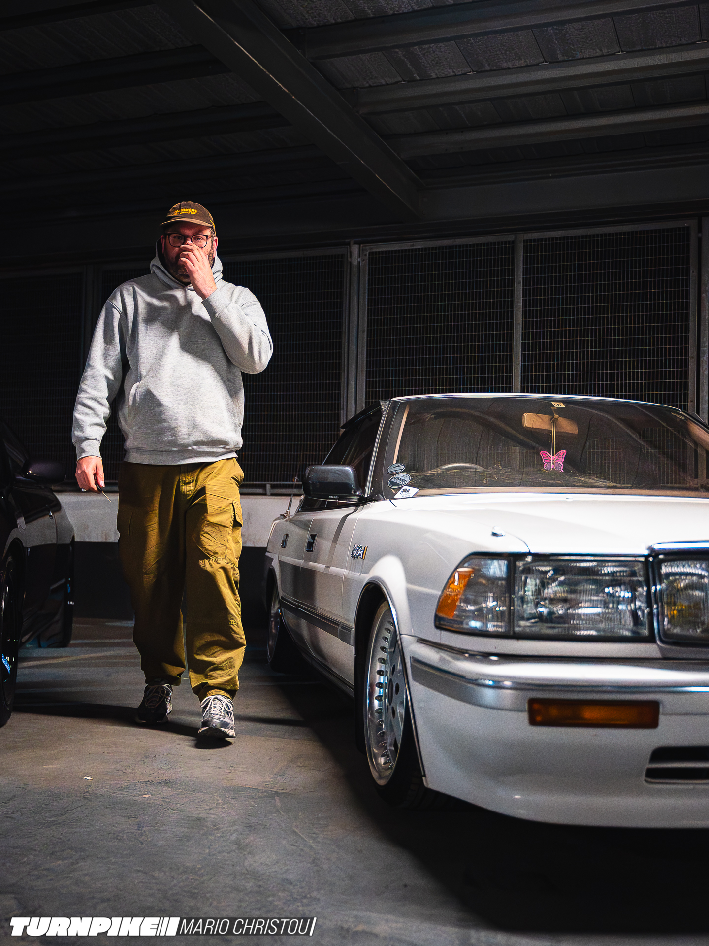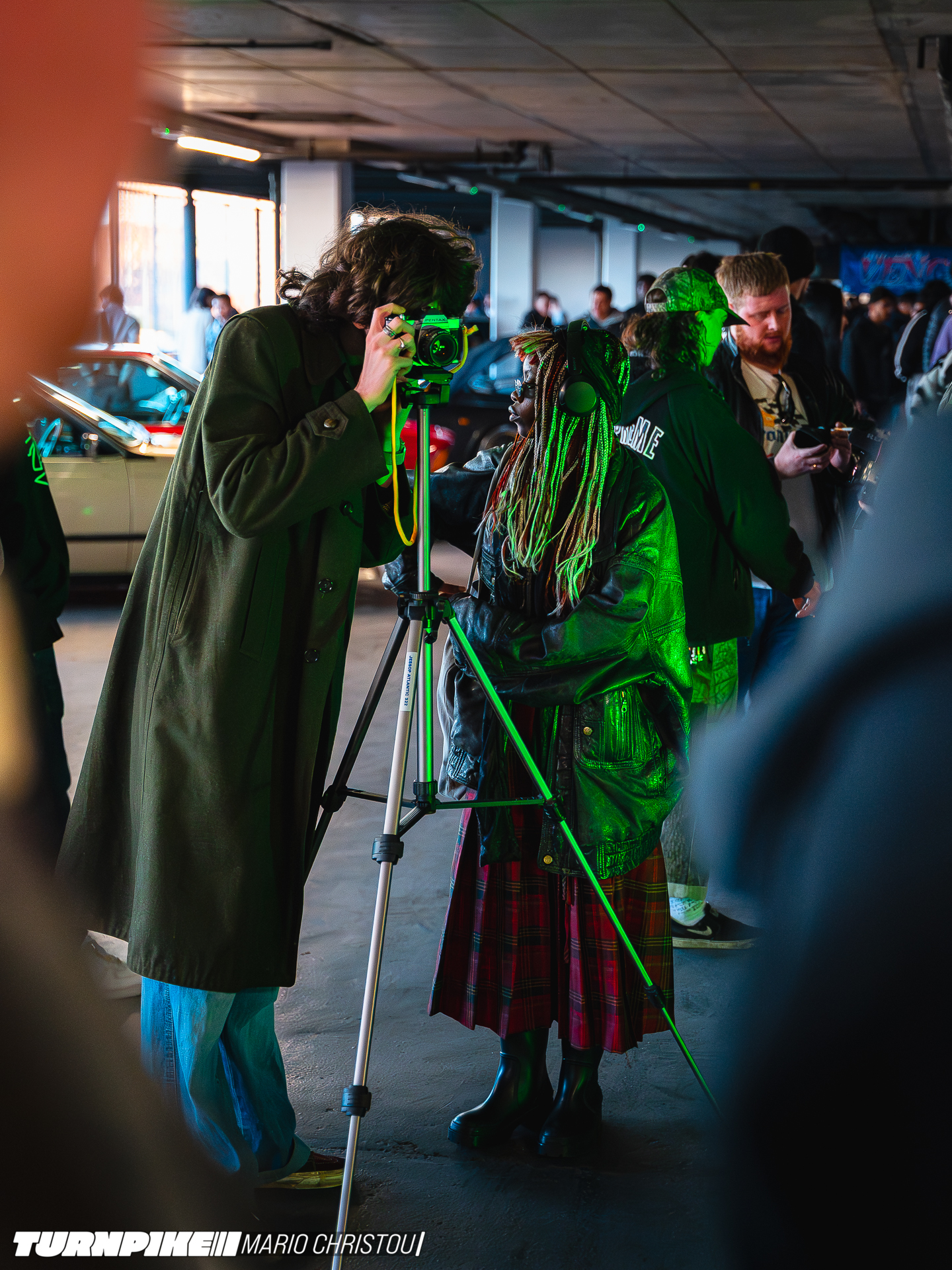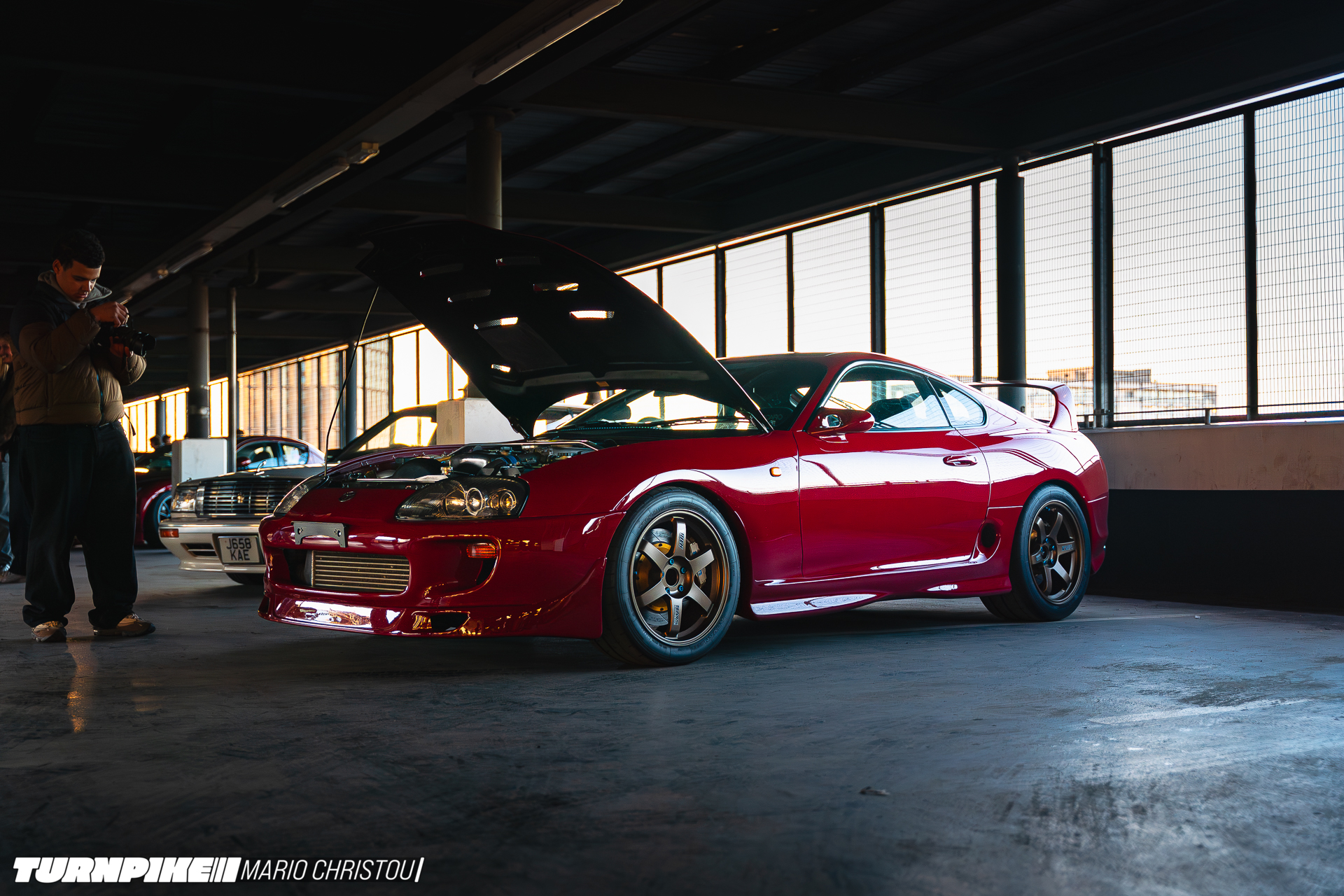 As the sun fell and the crowds grew both inside and outside the venue, the atmosphere shifted into something almost… alive. The sound of turbochargers and tuned straight-six engines echoed through the concrete structure, while attendees pulled out camera flashes. It felt like a scene from our favourite childhood movies, especially with the DJ spinning tracks on the corner of the sixth floor.