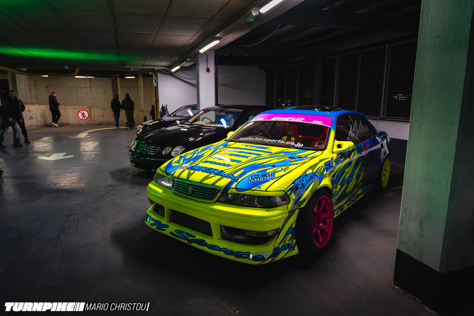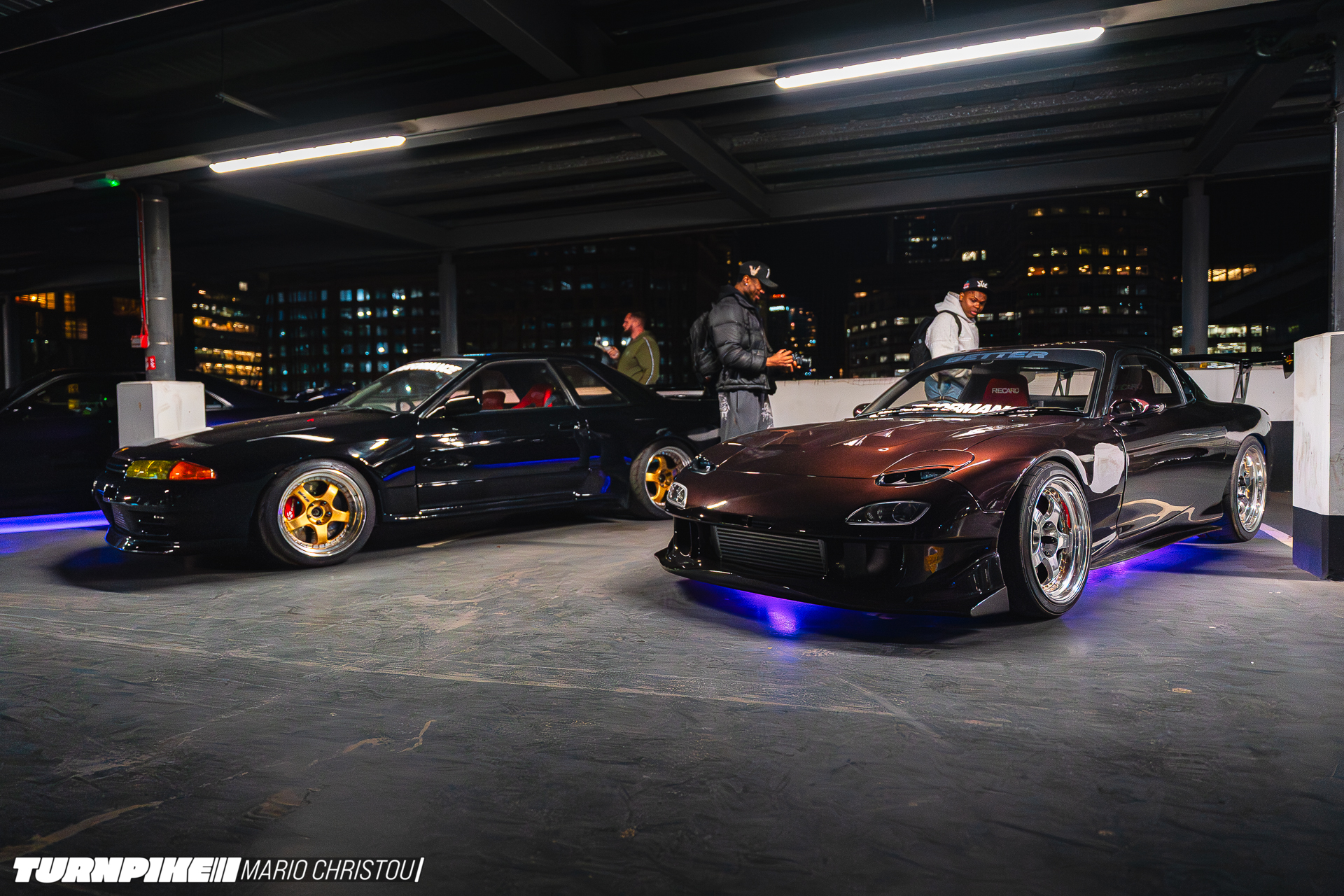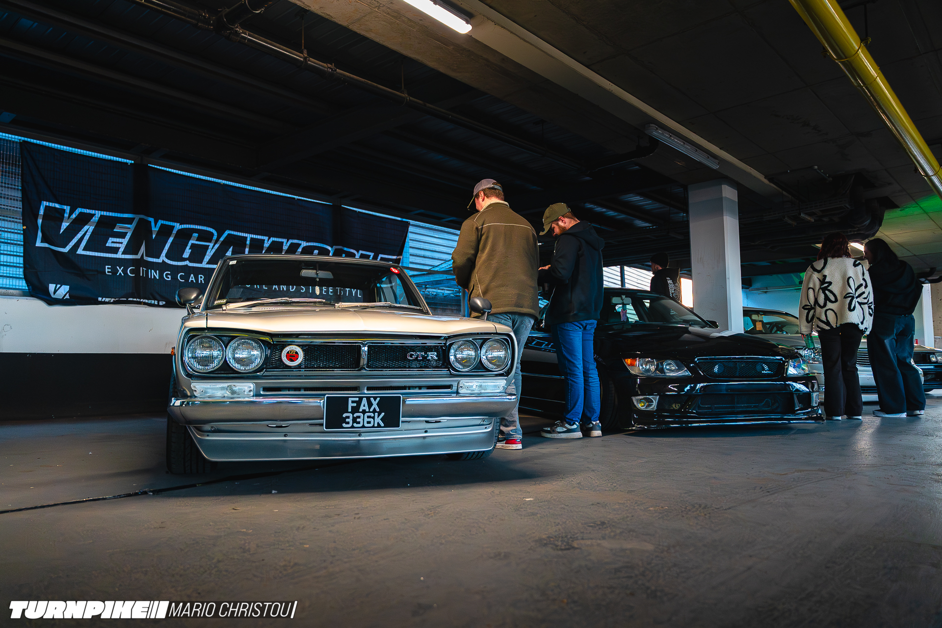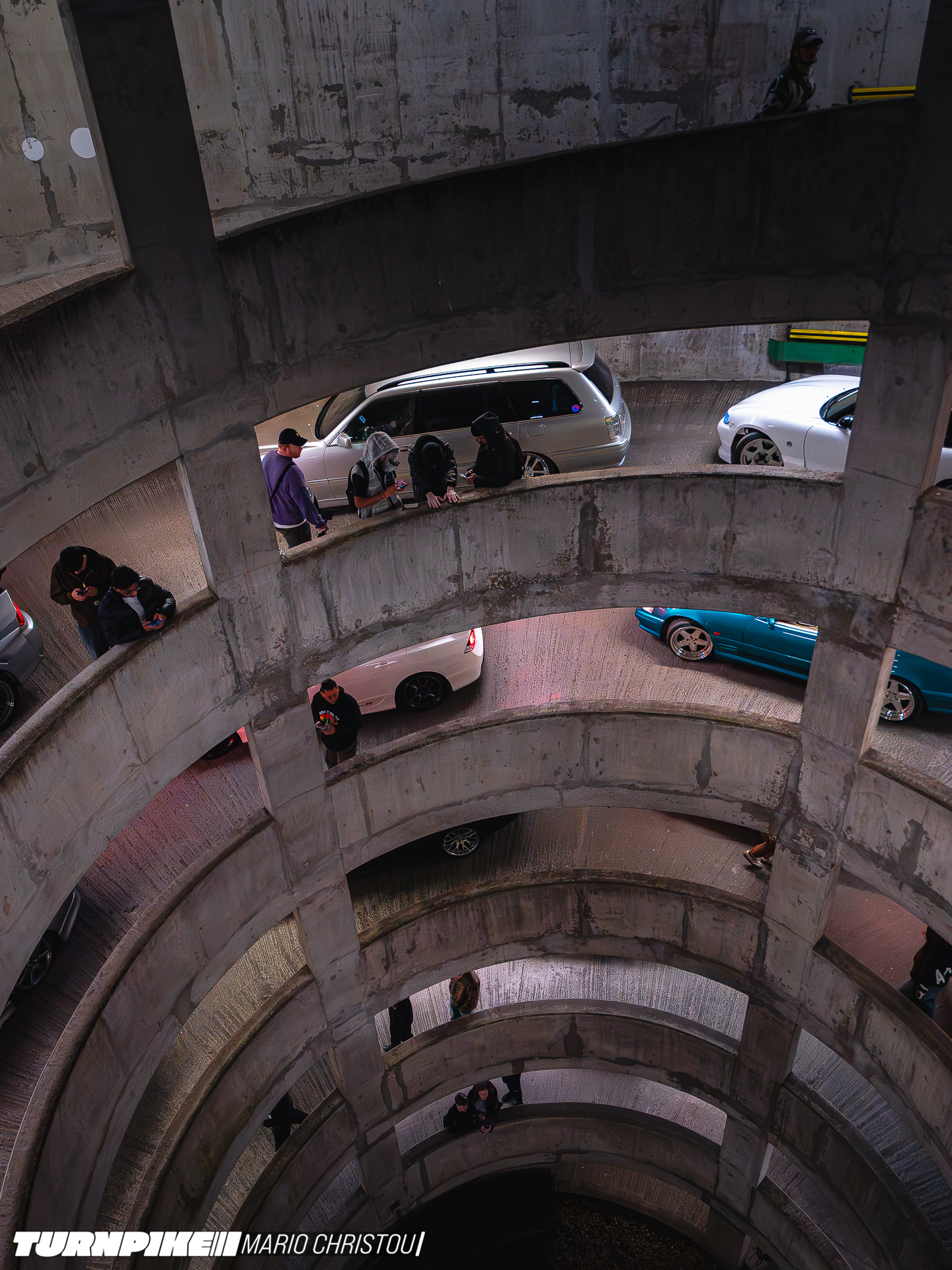 As is the way, roll-out time under the cover of darkness was the prime opportunity for the rowdiest cars – and owners – to let their right feet loose and shake the building with exhaust notes. Jake’s fire-spitting RX-7 drew in one last crowd before joining the queue spiralling down the exit ramp.