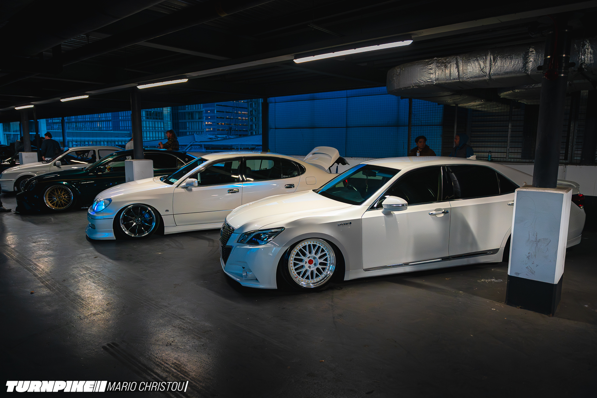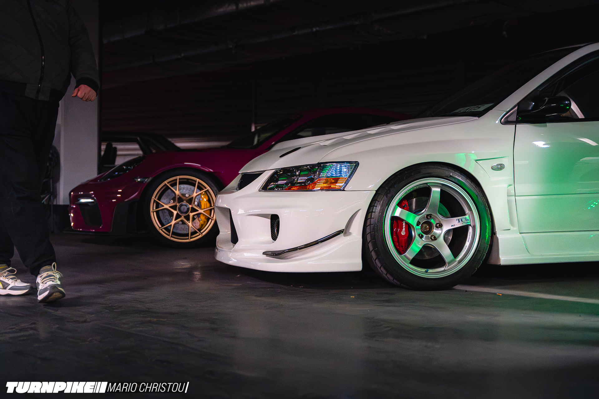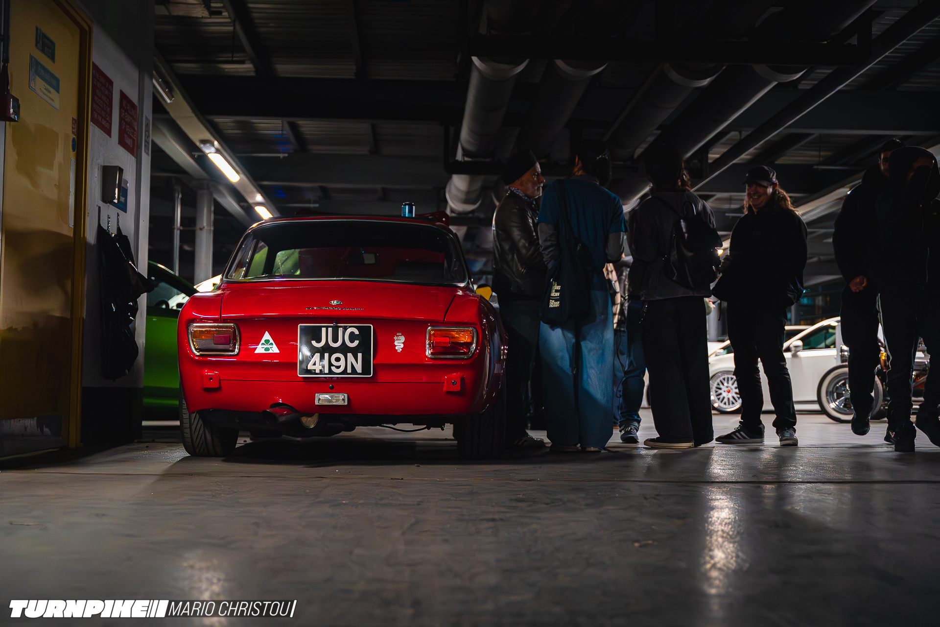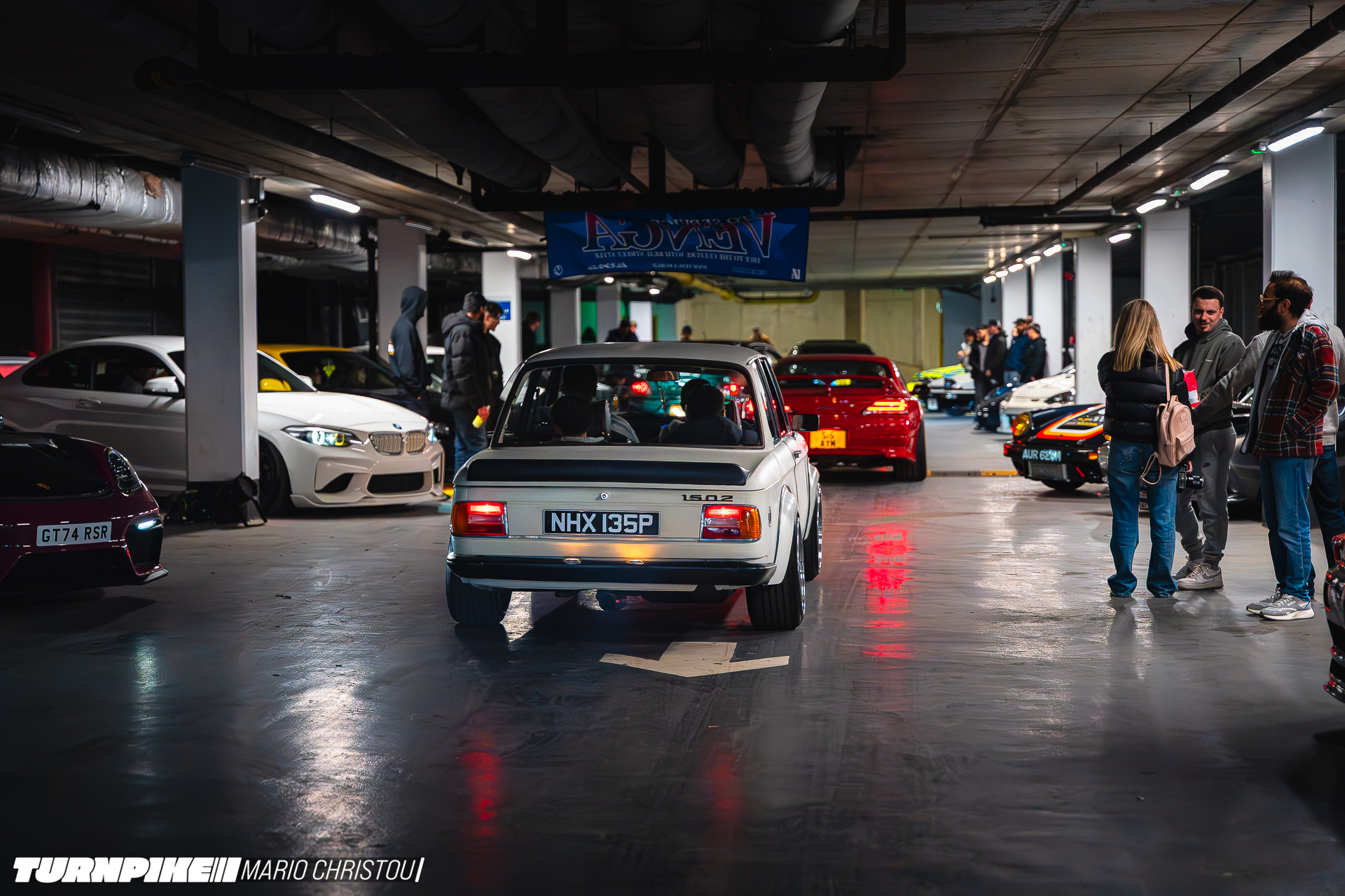 As is the way, roll-out time under the cover of darkness was the prime opportunity for the rowdiest cars – and owners – to let their right feet loose and shake the building with exhaust notes. Jake’s fire-spitting RX-7 drew in one last crowd before joining the queue spiralling down the exit ramp.