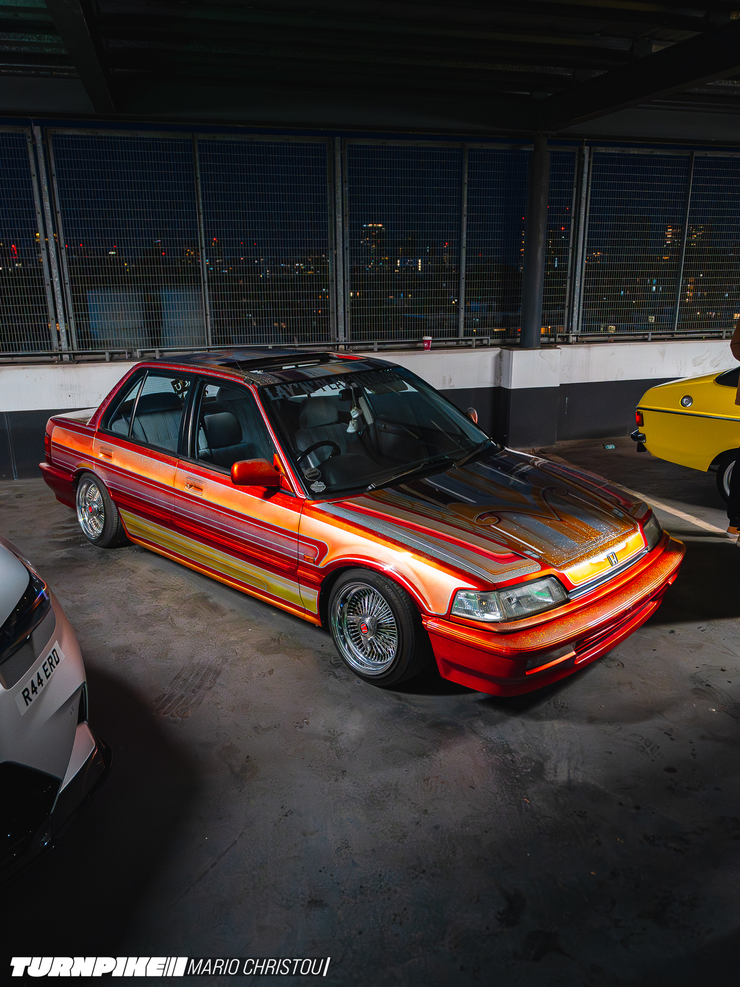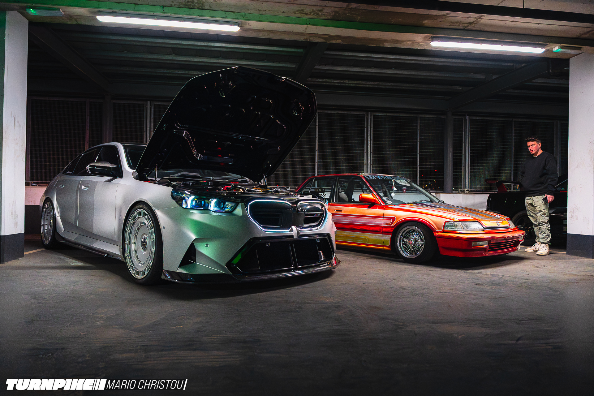 The same can be said of R44 Performance’s G90 BMW M5 super-saloon, parked next to an EF Honda Civic lowrider running hydraulic suspension, hunnid-spoke wheels, and candy paint.