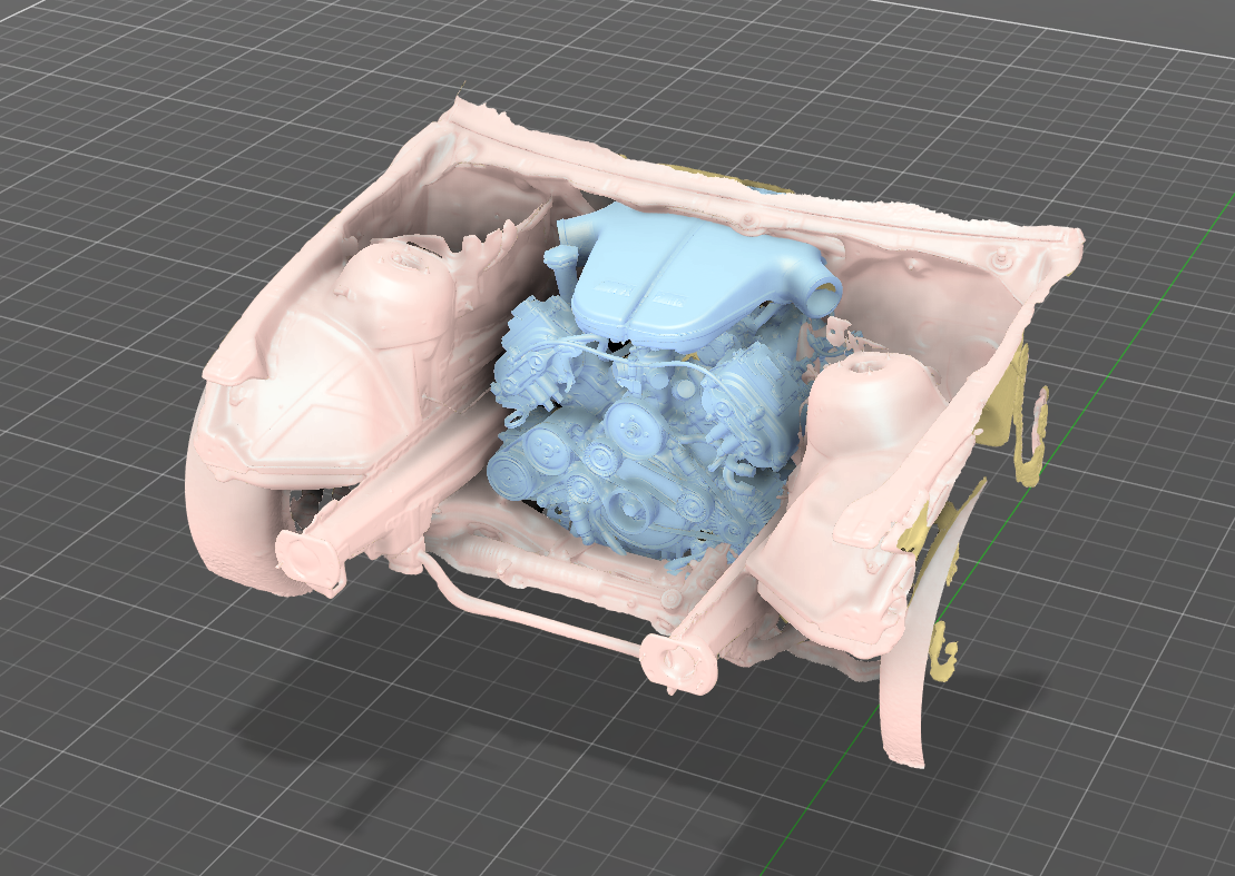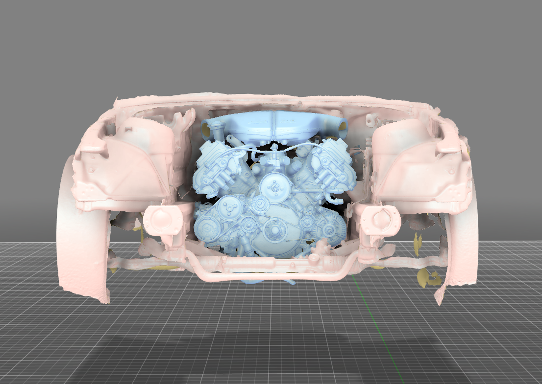 The disassembly process has already begun, getting the old engine out and preparing the chassis for the much larger V10 unit. I 3D scanned the engine and engine bay so I could put the two in the computer and get measurements, and for a visual idea on how the new engine will fit.