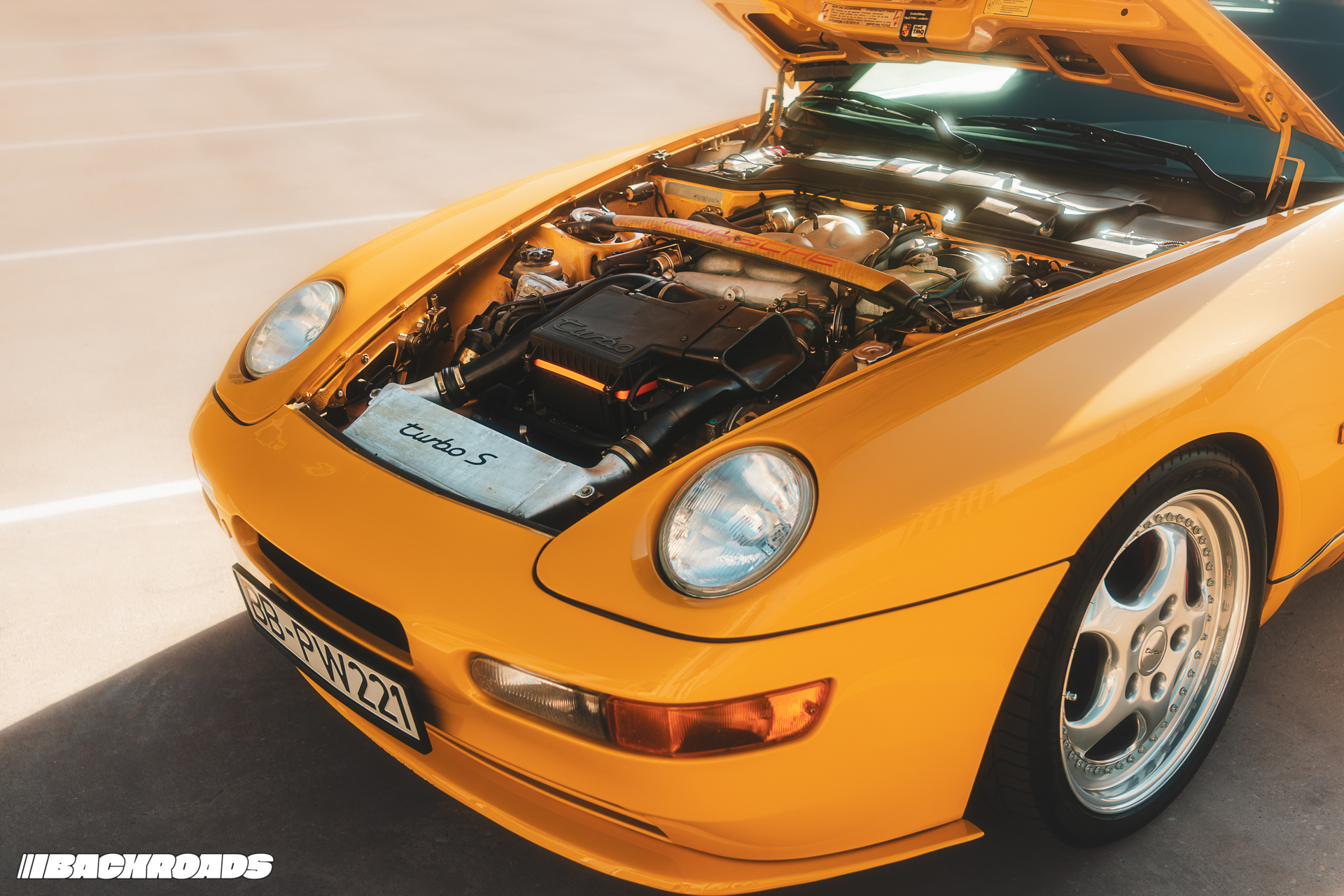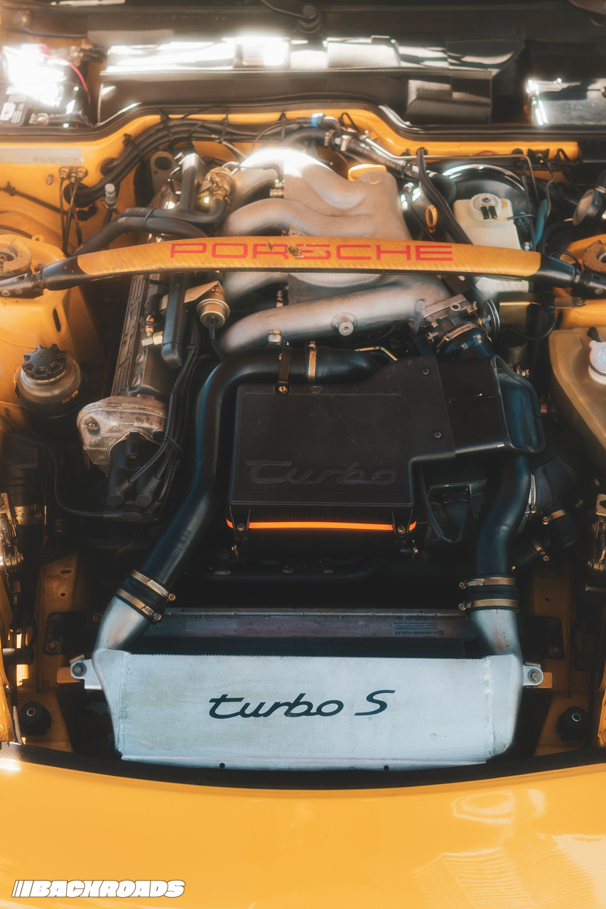 Mechanically, it’s a radical departure from the rest of the line. Brakes, suspension, and a set of 18” Speedline wheels came straight from the 964 Turbo. The 3.0-litre inline-four engine was rebuilt with an intake and top end from the previous 944 Turbo, connected to a turbocharger lifted from the 993 GT2. Its 305 horsepower and 368 lb-ft of torque made it faster than all but one of the contemporary 911s. In case you forget it was a special model, there are not one, but two turbo scripts within inches of each other under the hood.