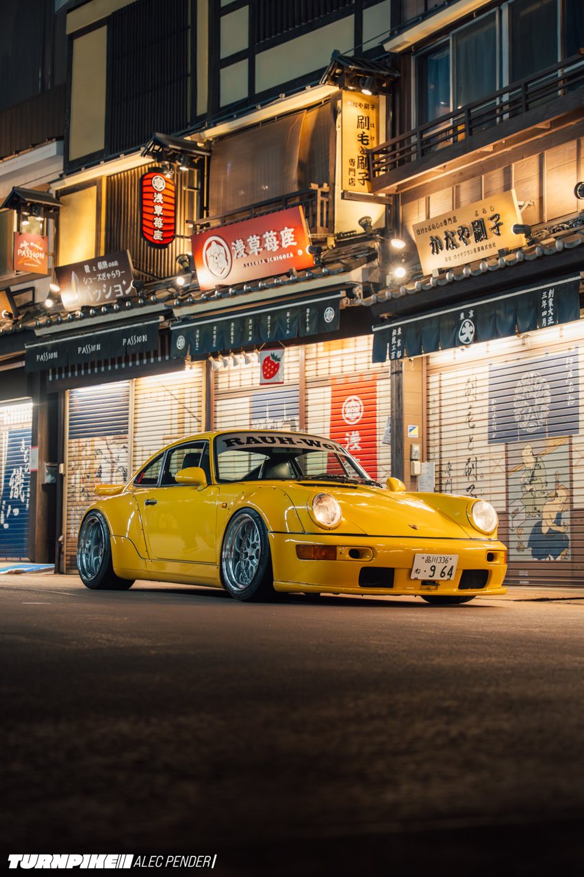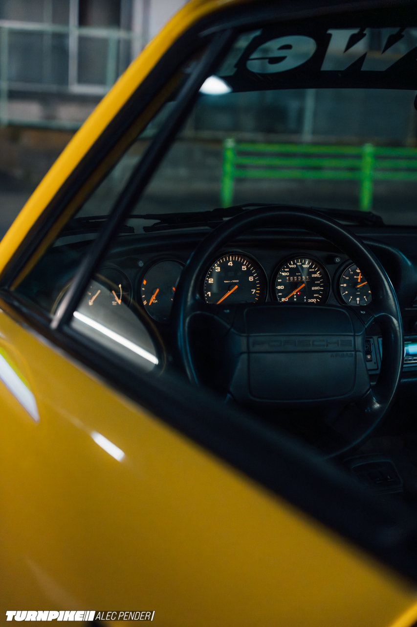 The 964’s hips and Turbo-inspired whale tail mean the rear quarter angle of the car satisfies me the most. The balance of it all is so visually pleasing, the way the Work Meister M1Rs shine against the faded Speed Yellow of the car just brings it all together so well. I can just sit and look at it for hours.