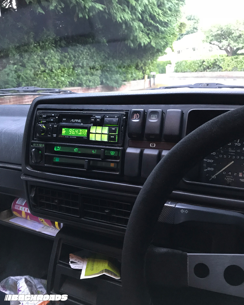 I’d never seen Calypso Green paint on a Mk2 before, apparently being quite rare on anything other than a GTI, and I instantly fell for the Golf’s shade of teal-with-commitment-issues. I knew it had to be decked on some sub-par coilovers and cheap wheels in order to look the part, as well as some kind of radio because while we don’t need practicality, we need audio.