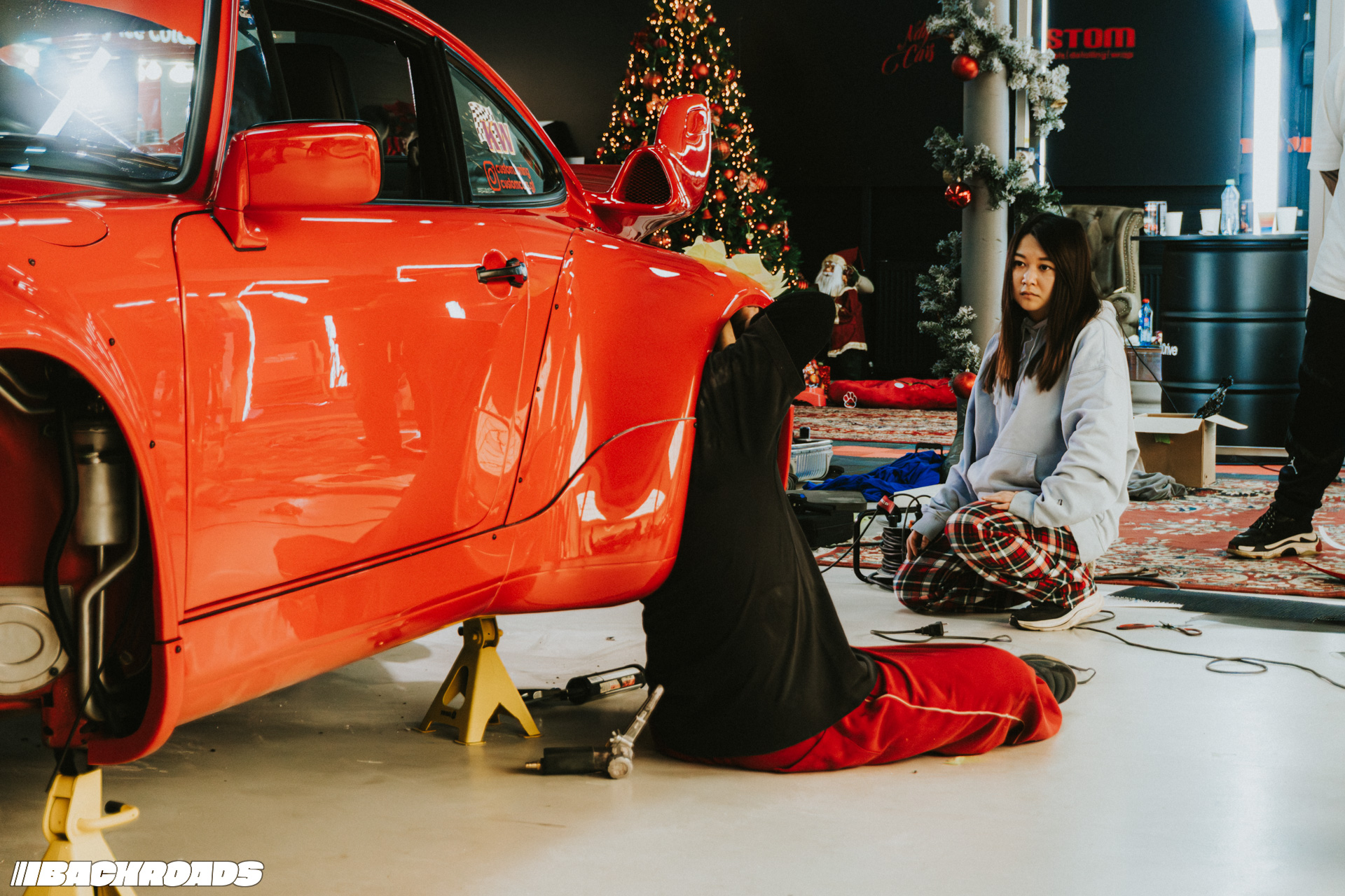 To say Nakai-san is ‘locked in’ while he’s working would be an understatement. He knows exactly when to take a break and does not joke around until then. However, in the last few hours of the second build, he worked while wearing a Santa hat, which was a bit of fun. He finished the car by applying the iconic ‘RAUH-Welt’ windshield banner and signing the dashboard of the red 964, quoting “the second in Romania, first on Christmas,” which was an emotional moment for many and widely appreciated.