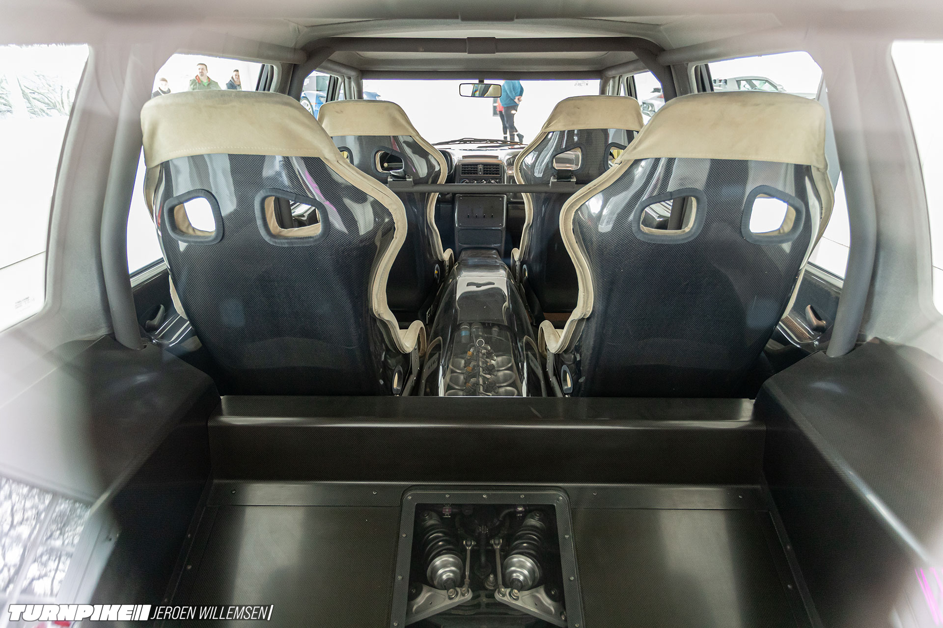 Before heading home, I stopped at Big Boost Burger, another one of JP’s projects. It’s near his workshop and not far from PACE, and it’s just as much part of the JP universe as the museum itself. Inside, you find even more of JP’s personal cars, including the ‘Thunderbunny Golf’, the ‘Volto’ 850 with a Tesla motor between the rear wheels, and his Porsche GT2. There’s even a Porsche 917 hanging from the ceiling, because why not?